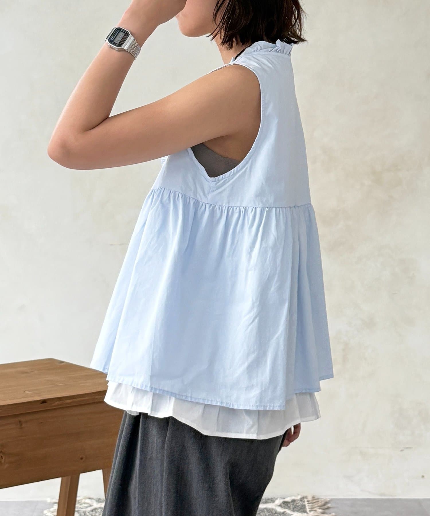 ・これ一枚で重ね着風のコーディネートが完成する手軽さ