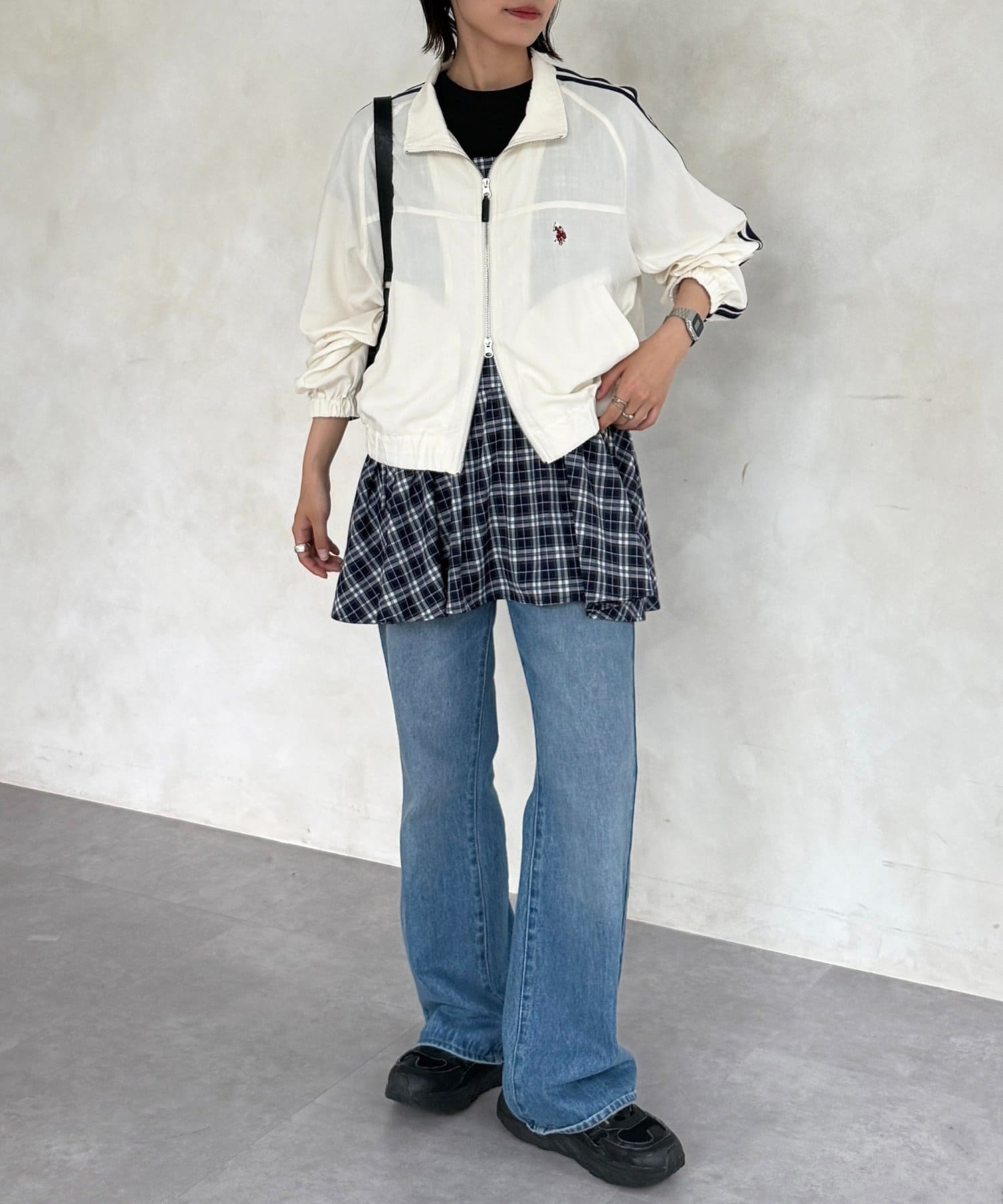 ・ロゴTシャツとデニムパンツに合わせるだけで、こなれ感のあるスポーティーMIXスタイルが完成します。