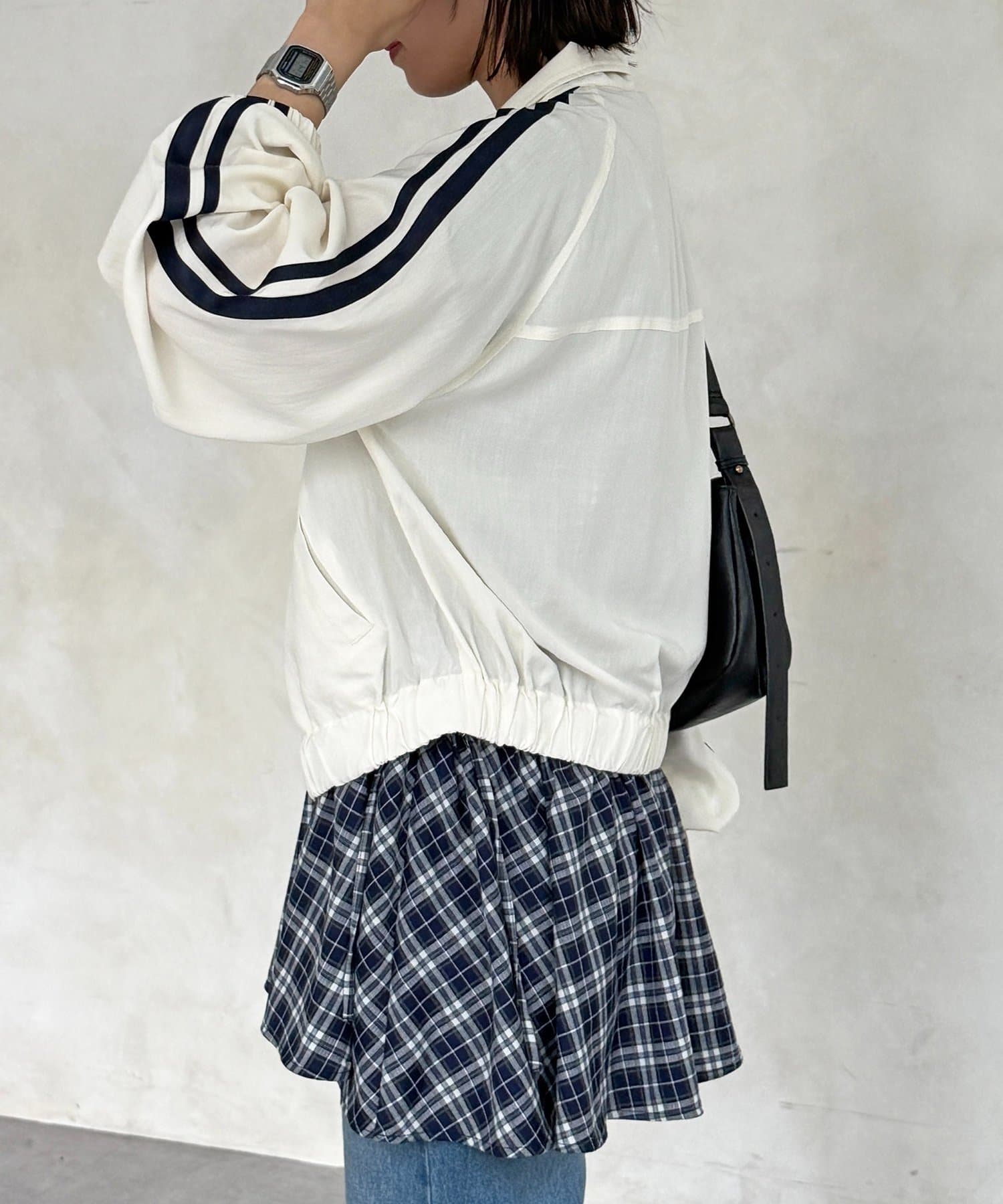 程よいショート丈で、どんなボトムスともバランス良く決まりスタイルアップを叶えます。