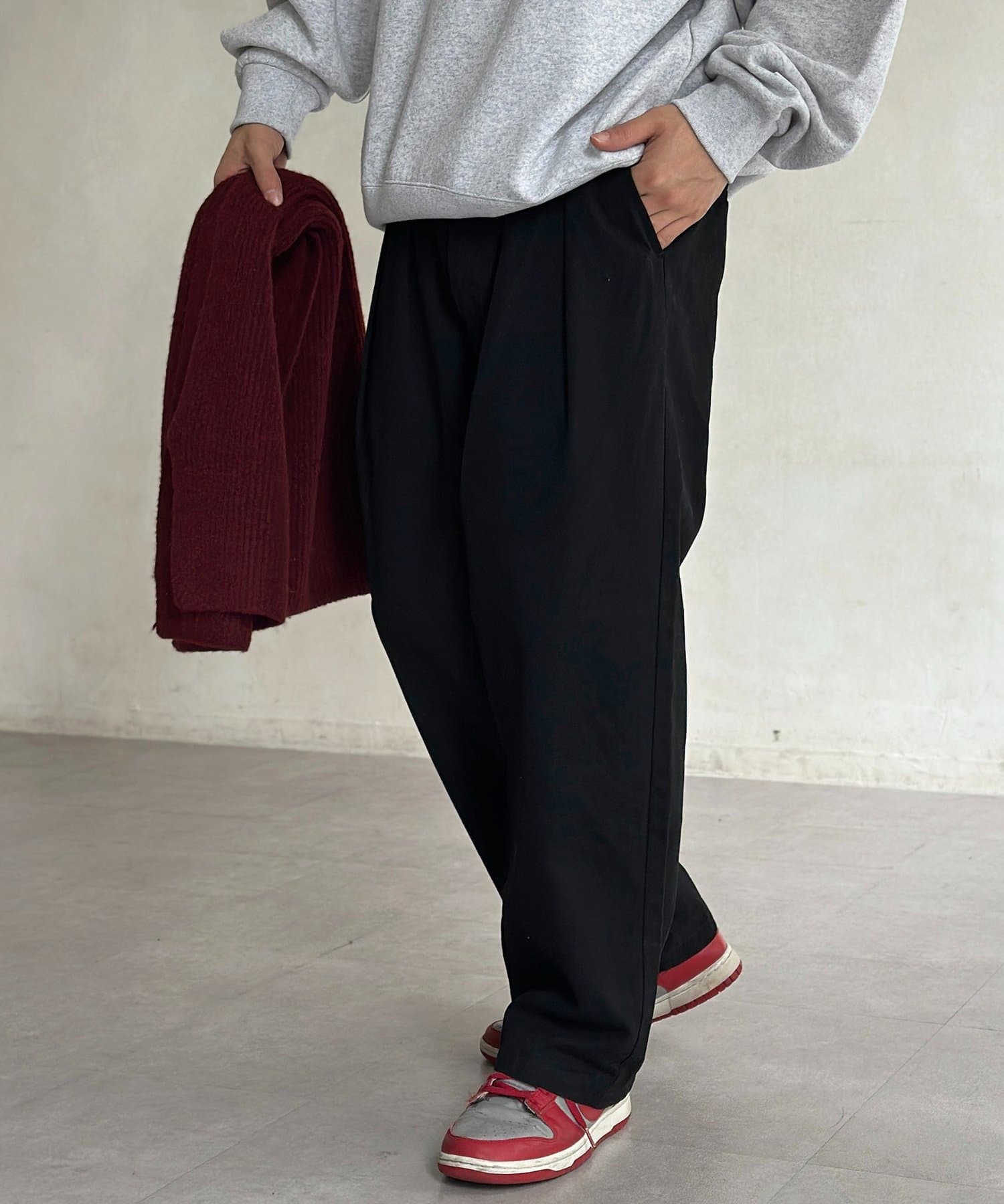 CPCM(シーピーシーエム) ピグメントツイルワイドタックパンツ