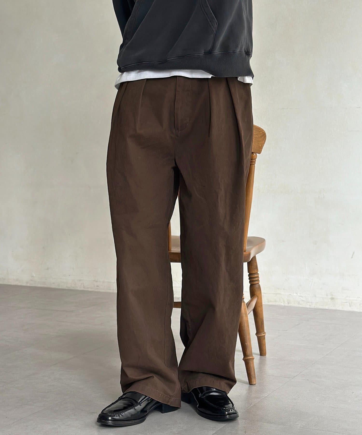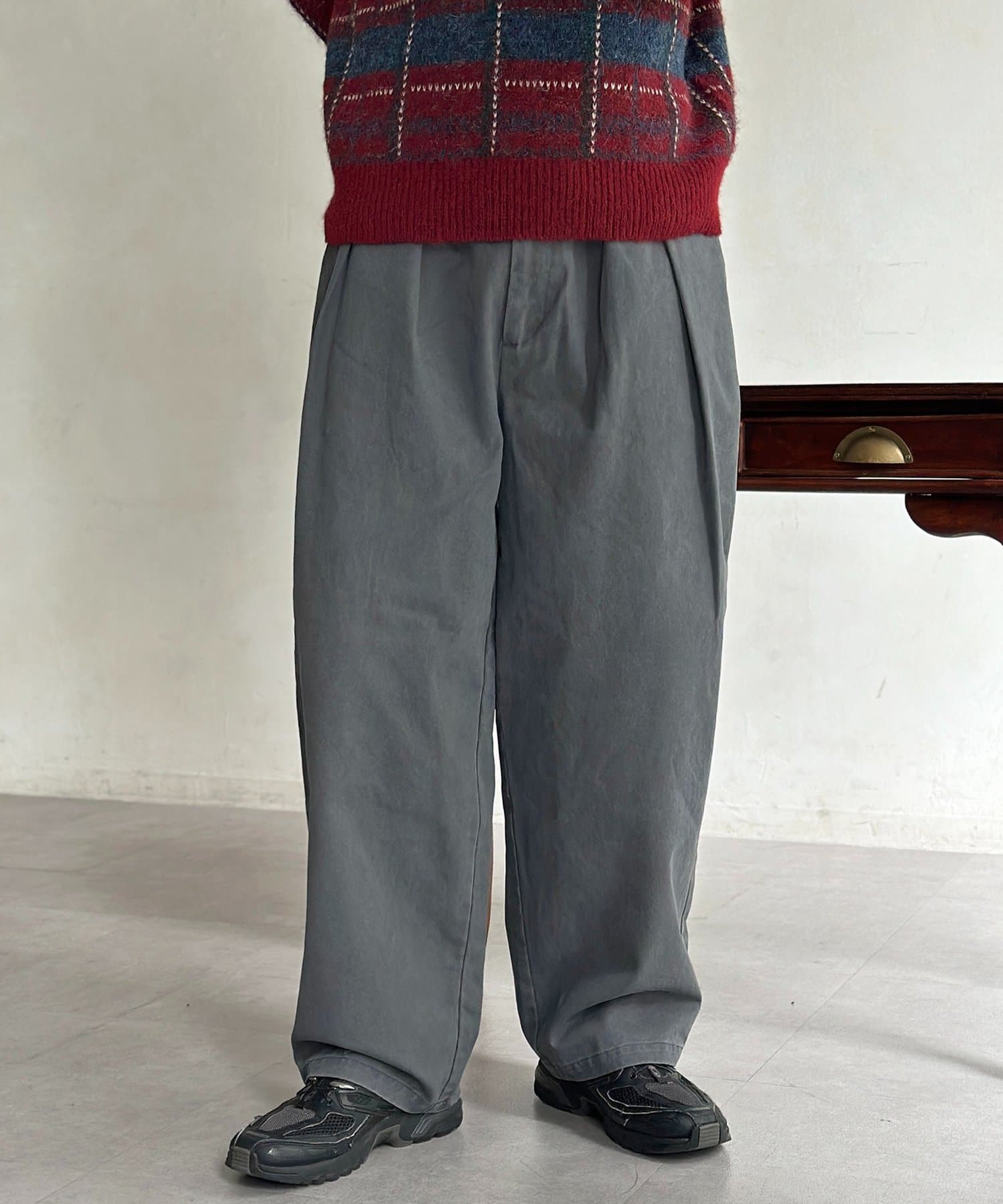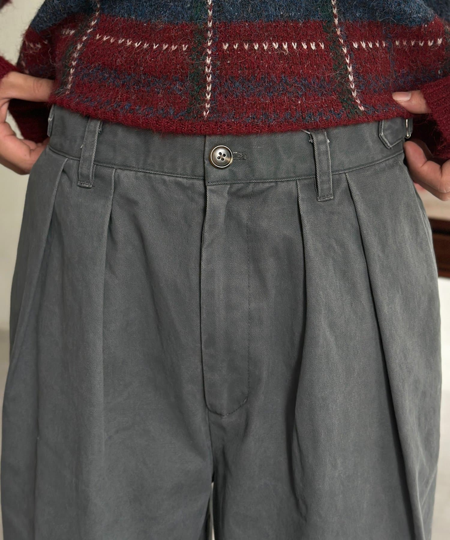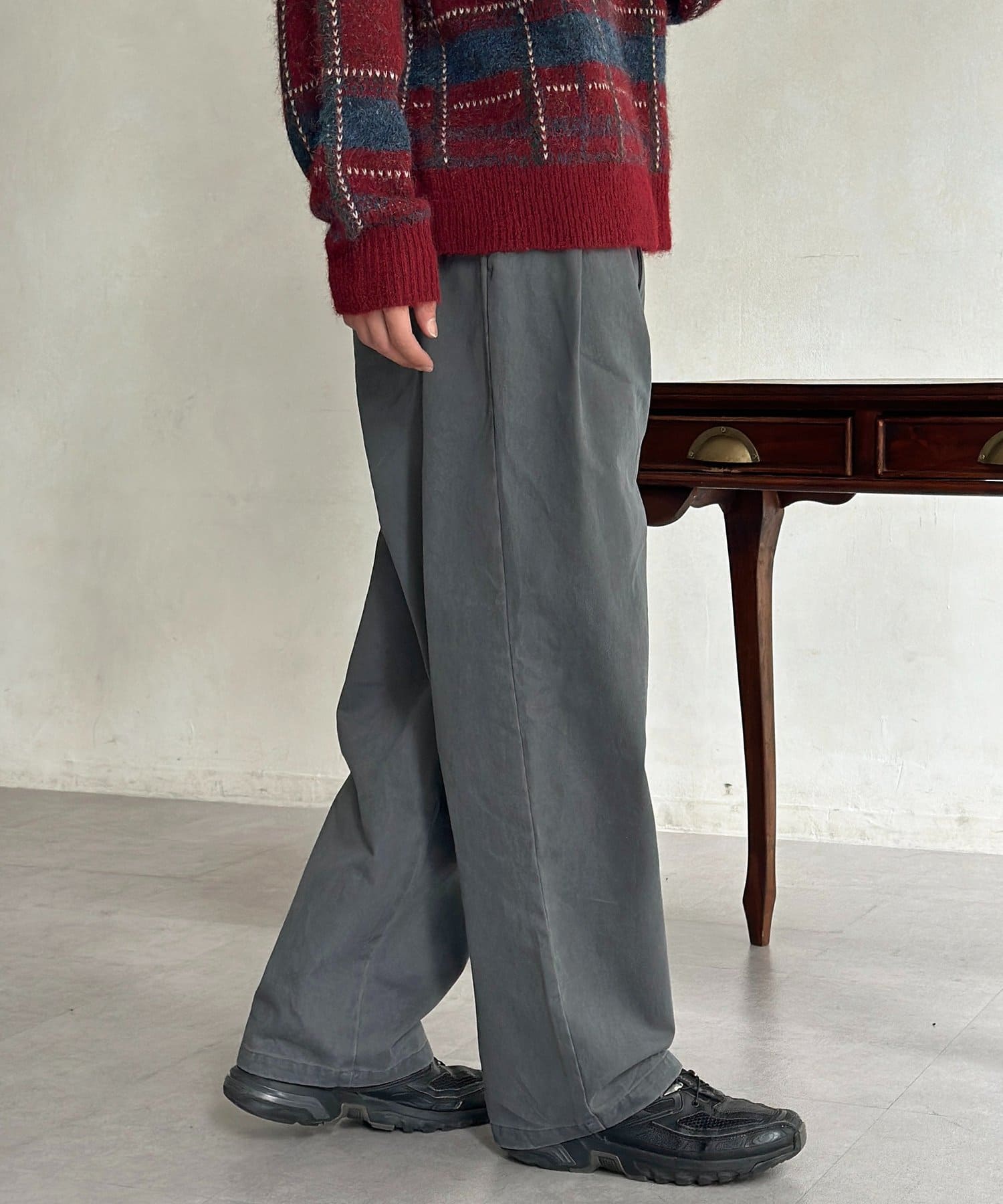 古着感の出るピグメント加工を施した、こなれ感たっぷりのワイドタックパンツです!