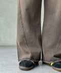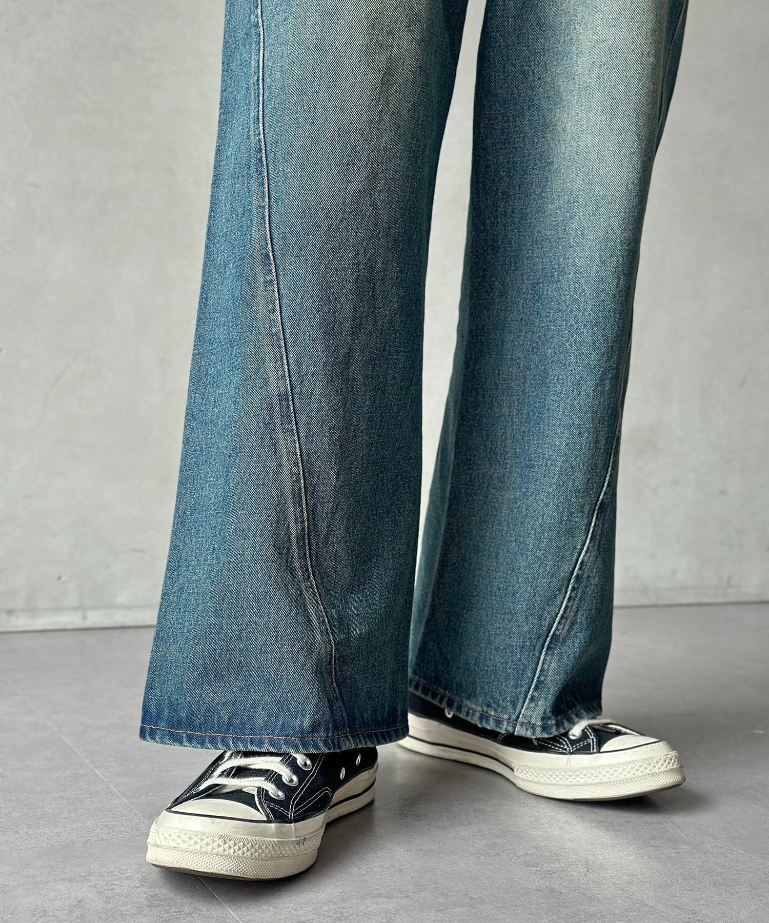 トレンドのシルエットをより履きやすいように、セミフレア仕様にしています。