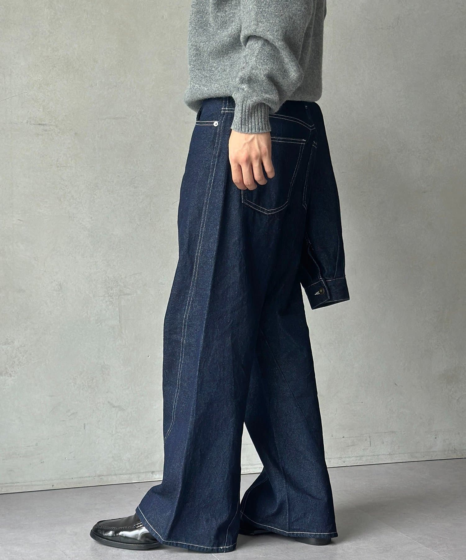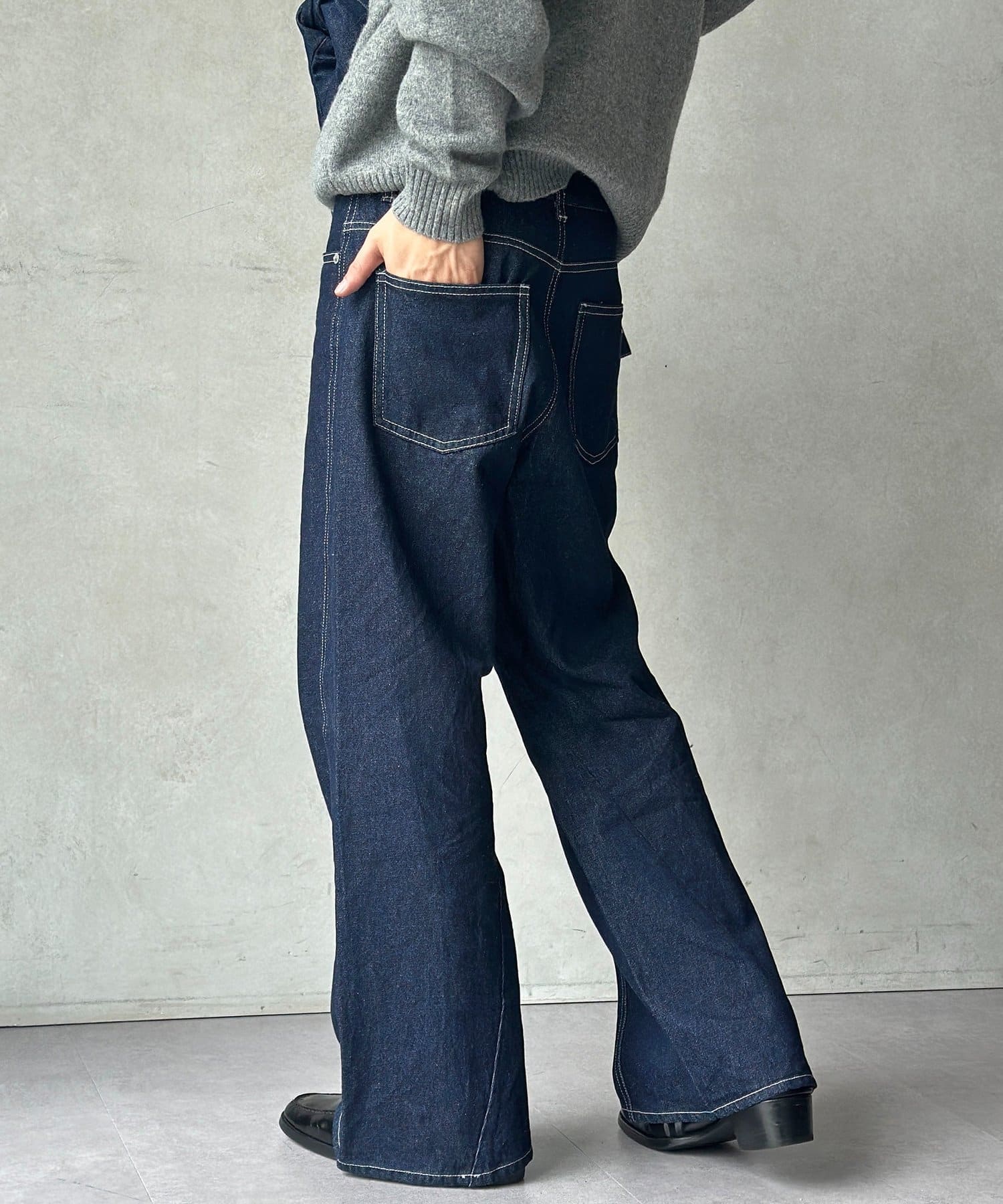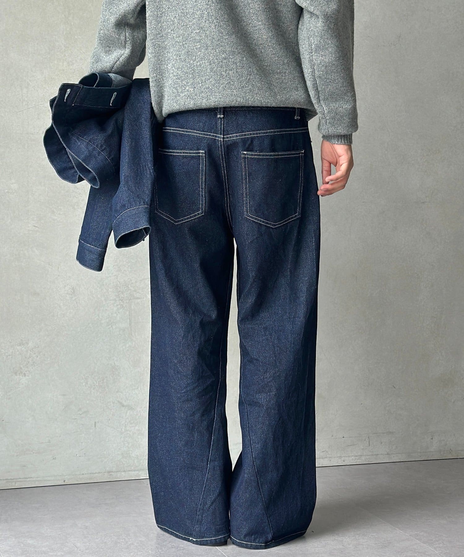 体になじみやすく、動きやすい立体裁断がポイントのデニムです。