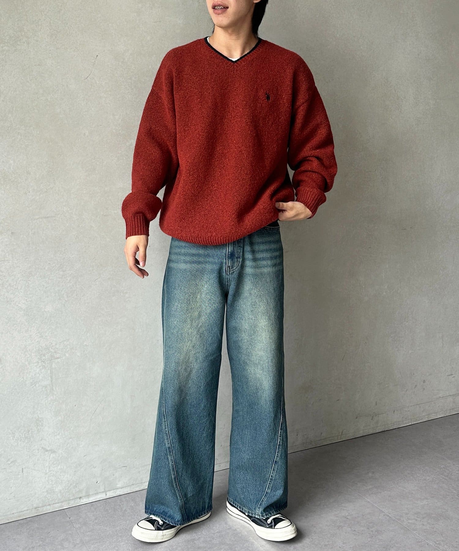 コーデに取り入れやすいセミフレアのデニムパンツ