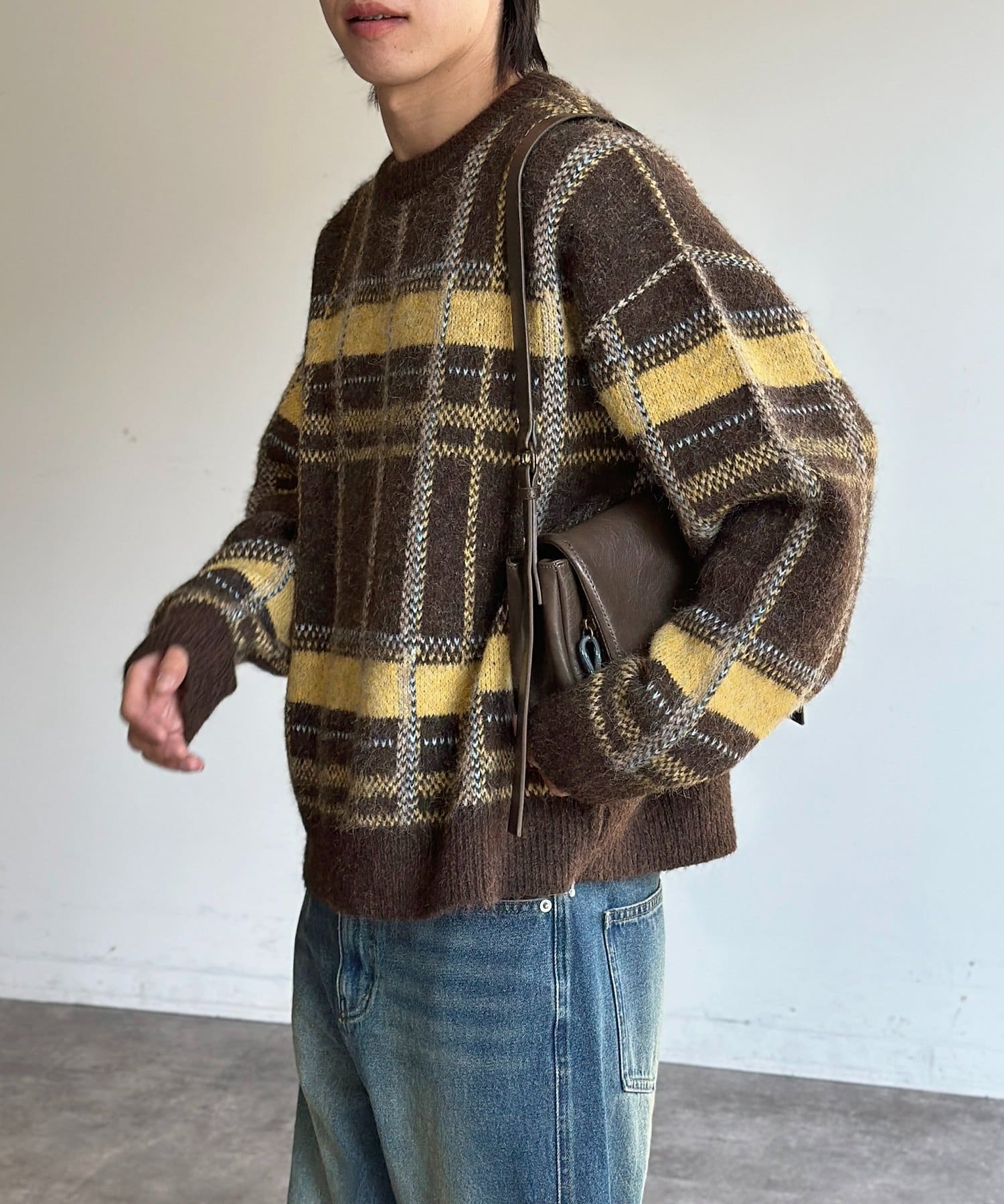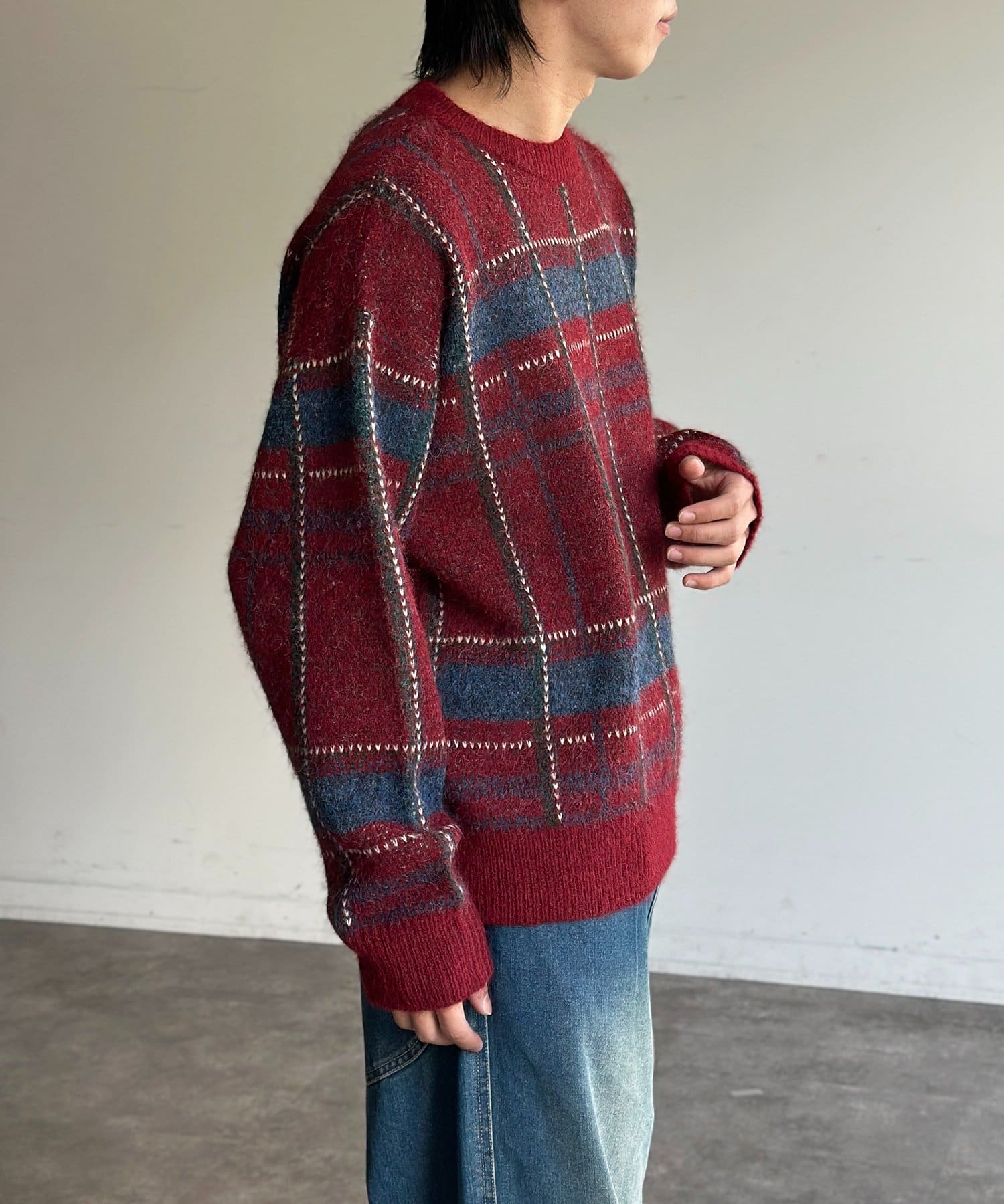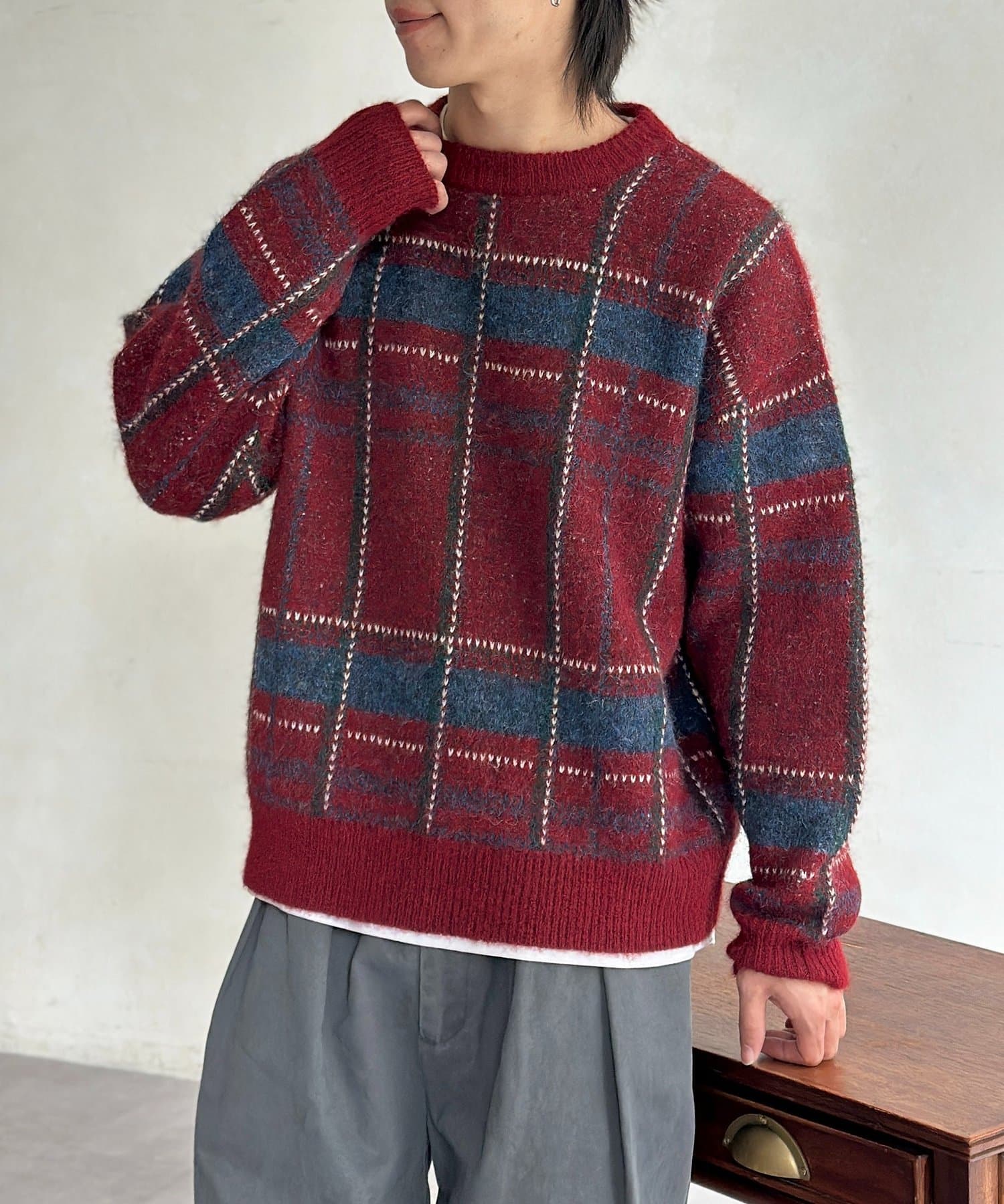 モヘアライクチェックニットプルオーバー