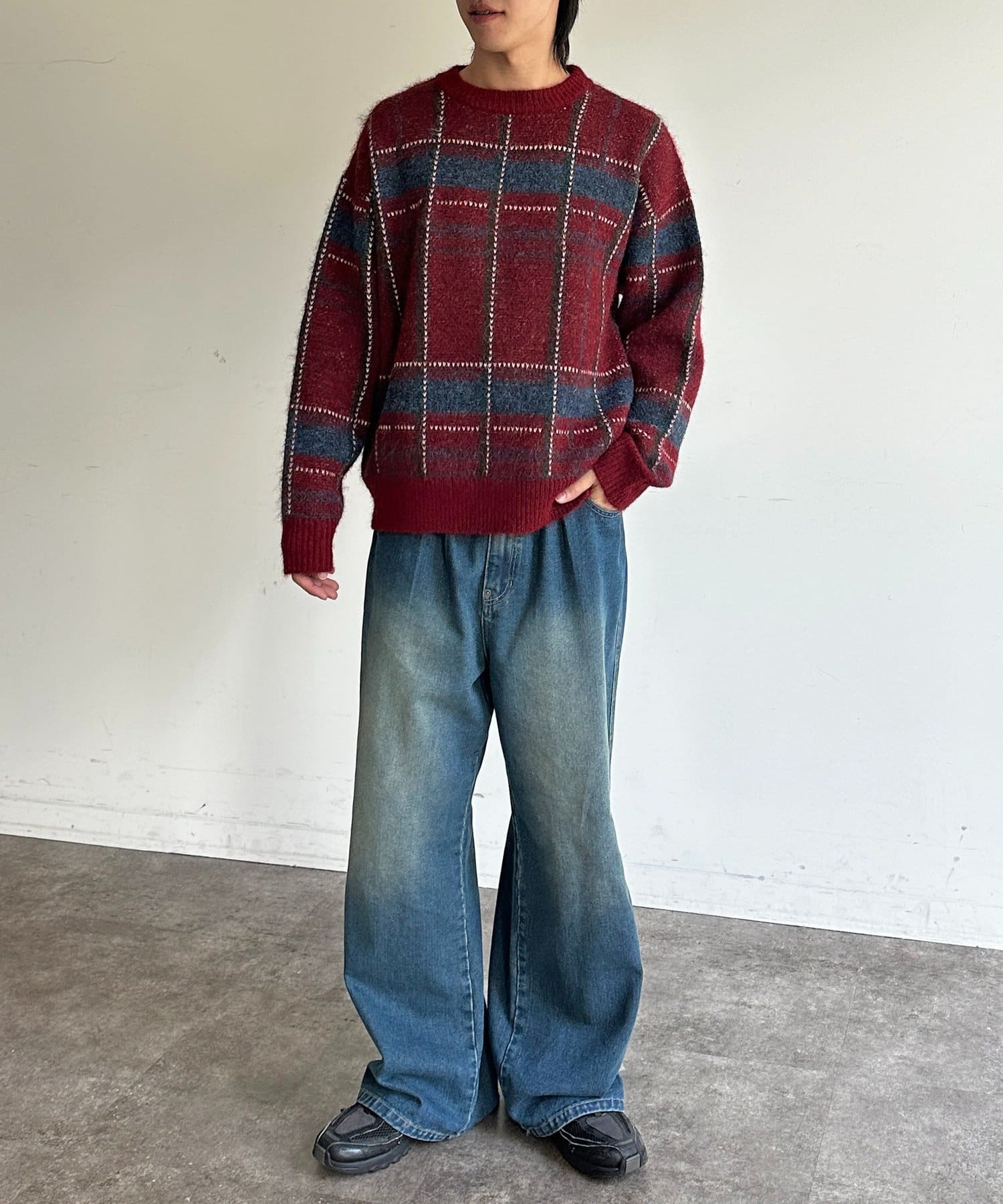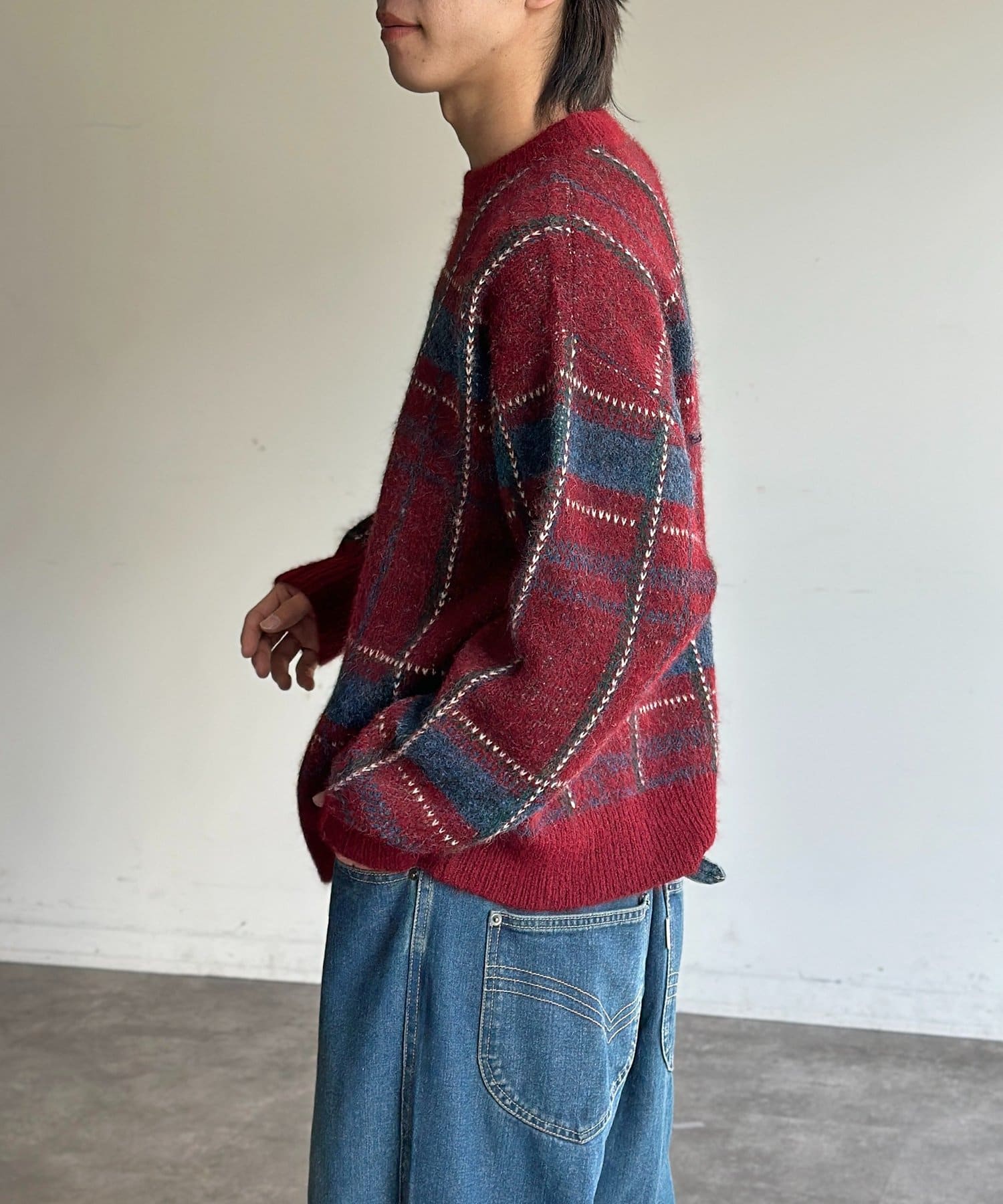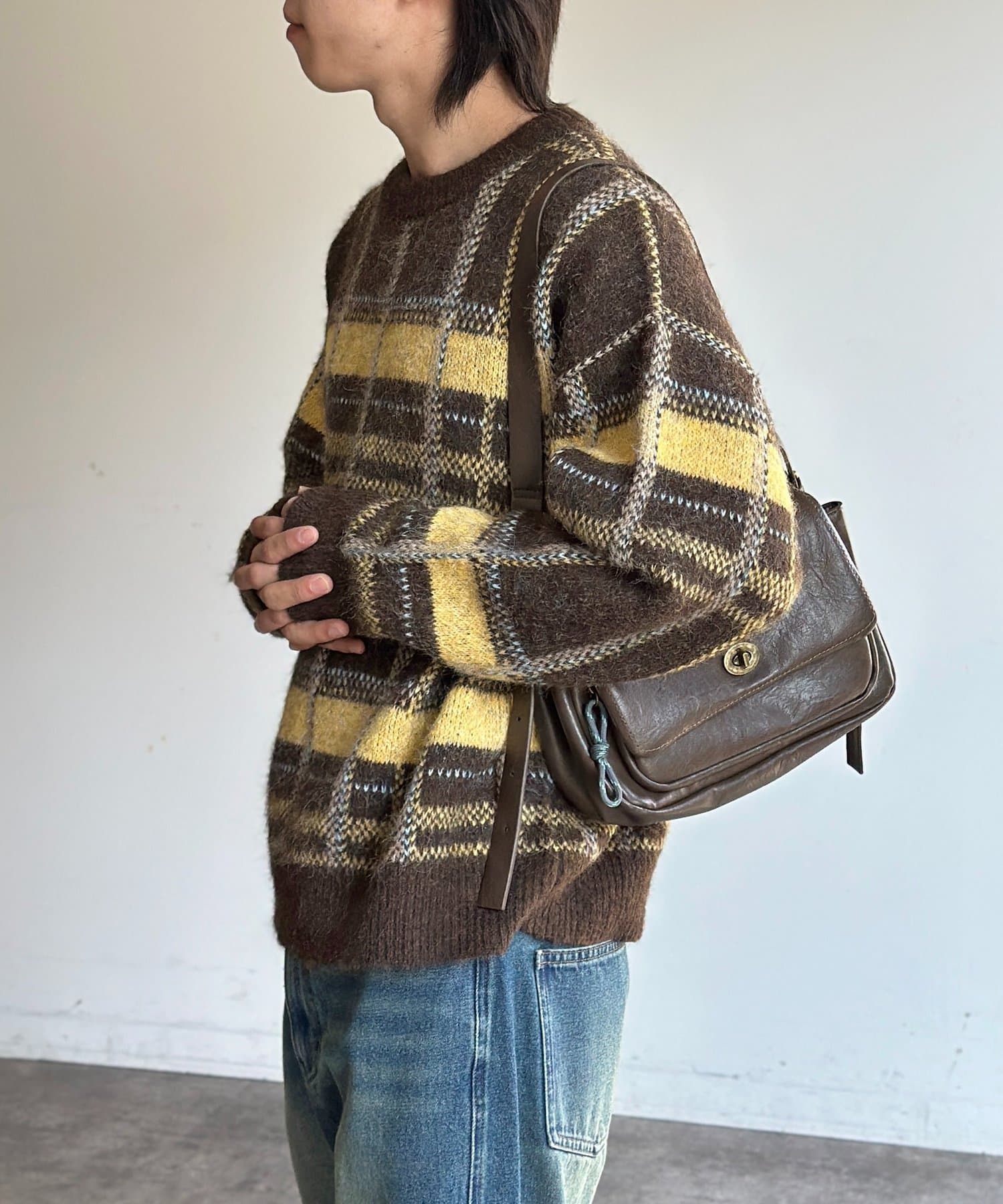 モヘアライクチェックニットプルオーバー