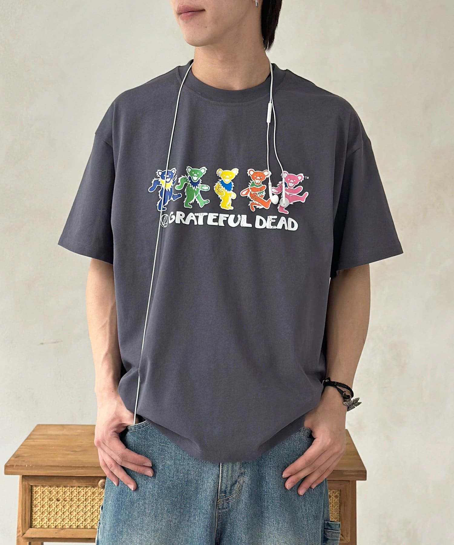 伝説のバンド「Grateful Dead」のアイコニックなダンシング・ベアをプリントした、キャッチーな一枚です!