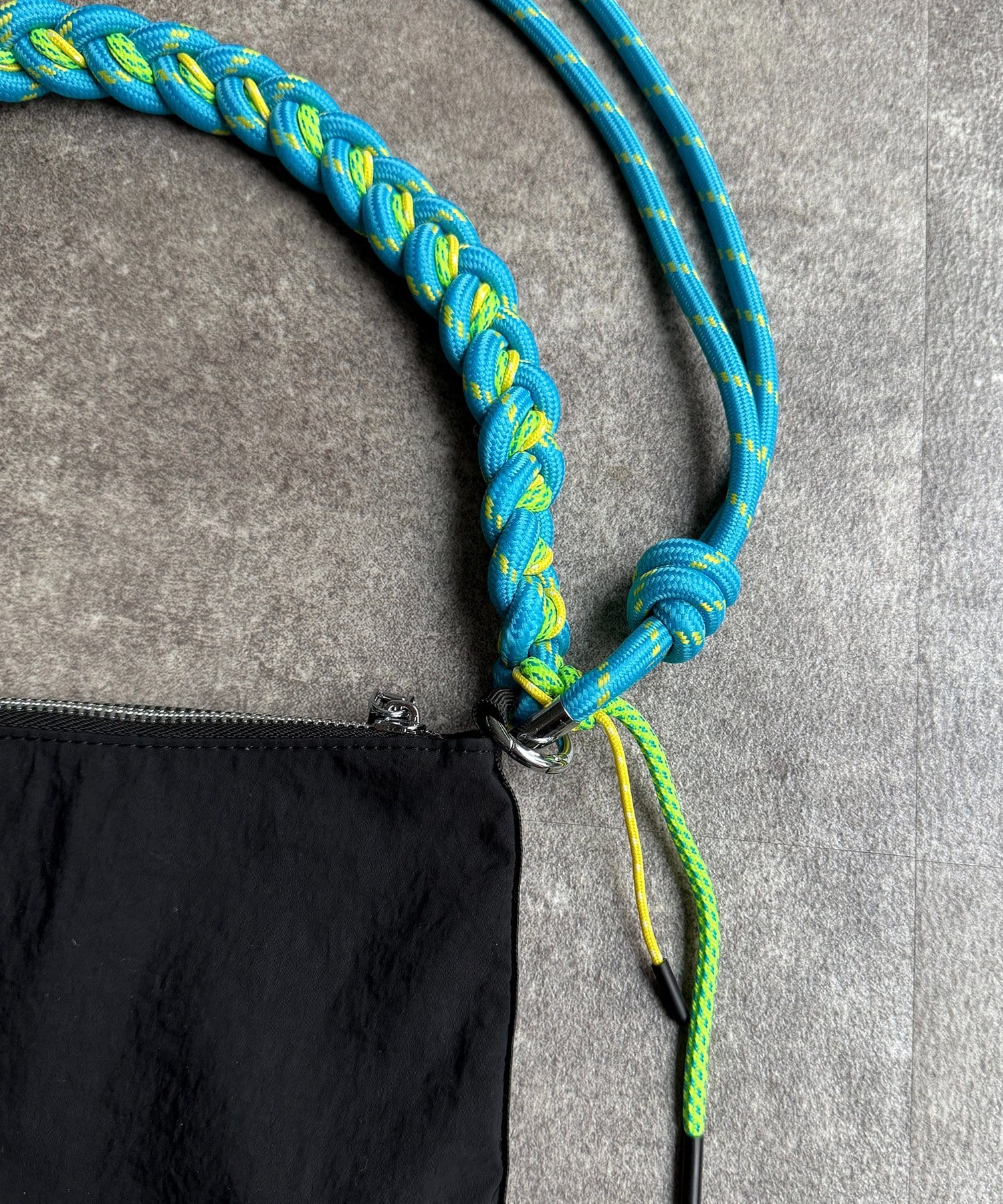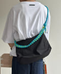 鮮やかなカラーのパラコードを編み込んだストラップが、コーディネートのアクセントになるショルダーバッグです。