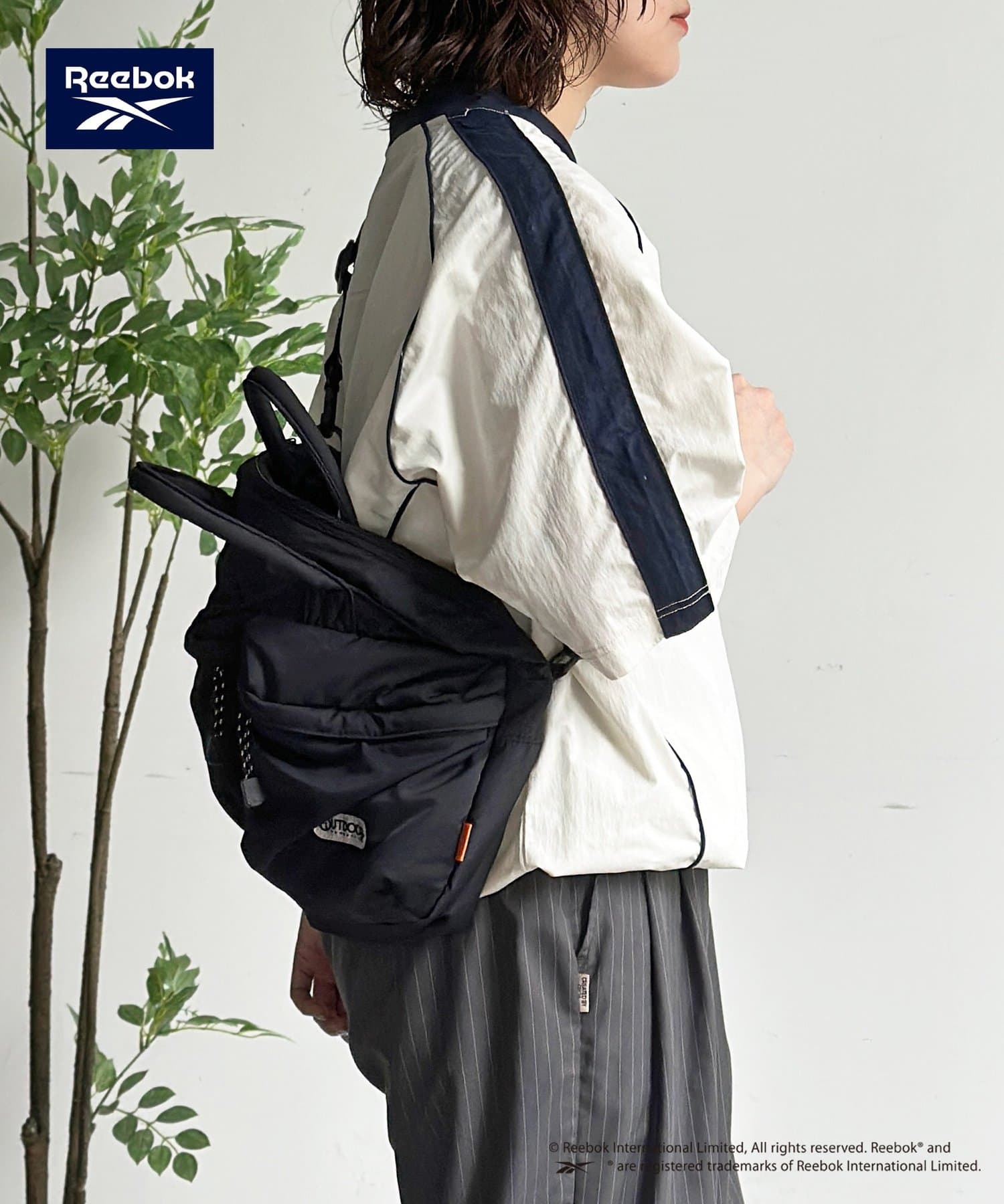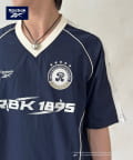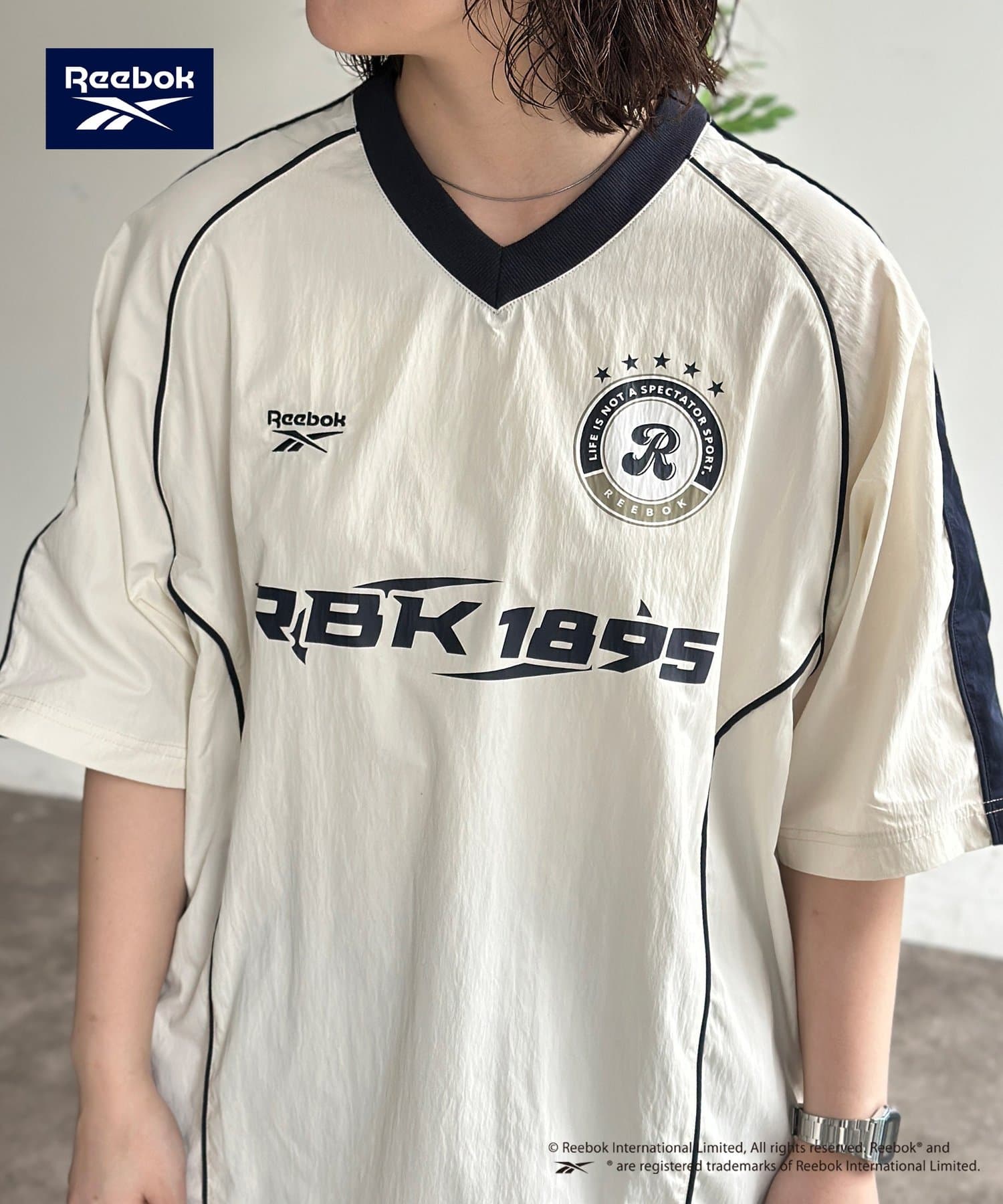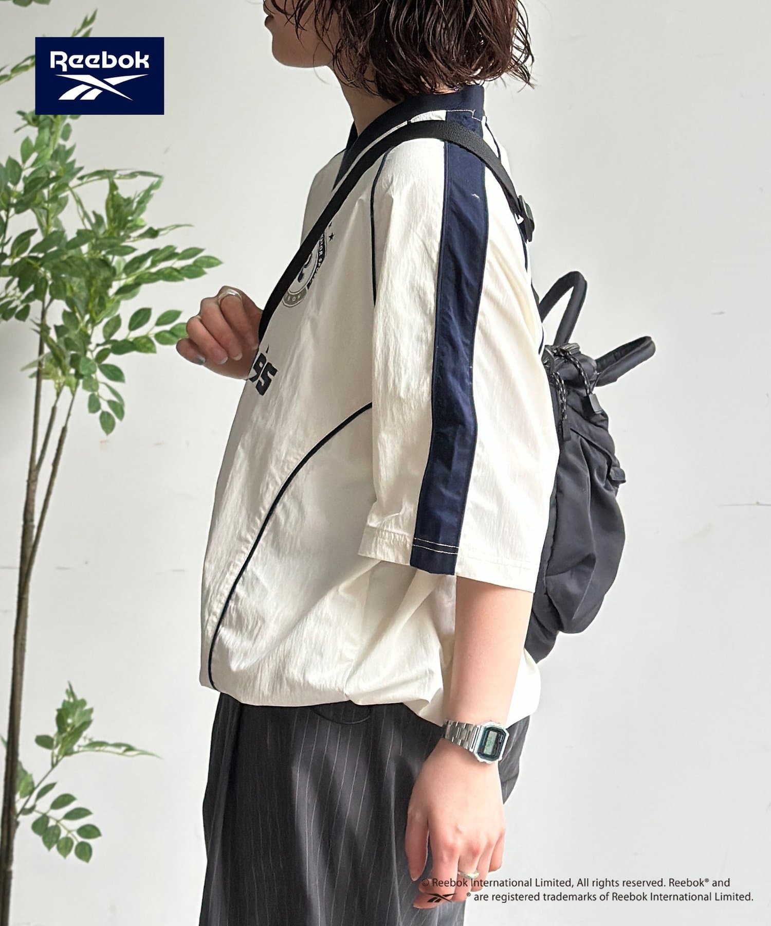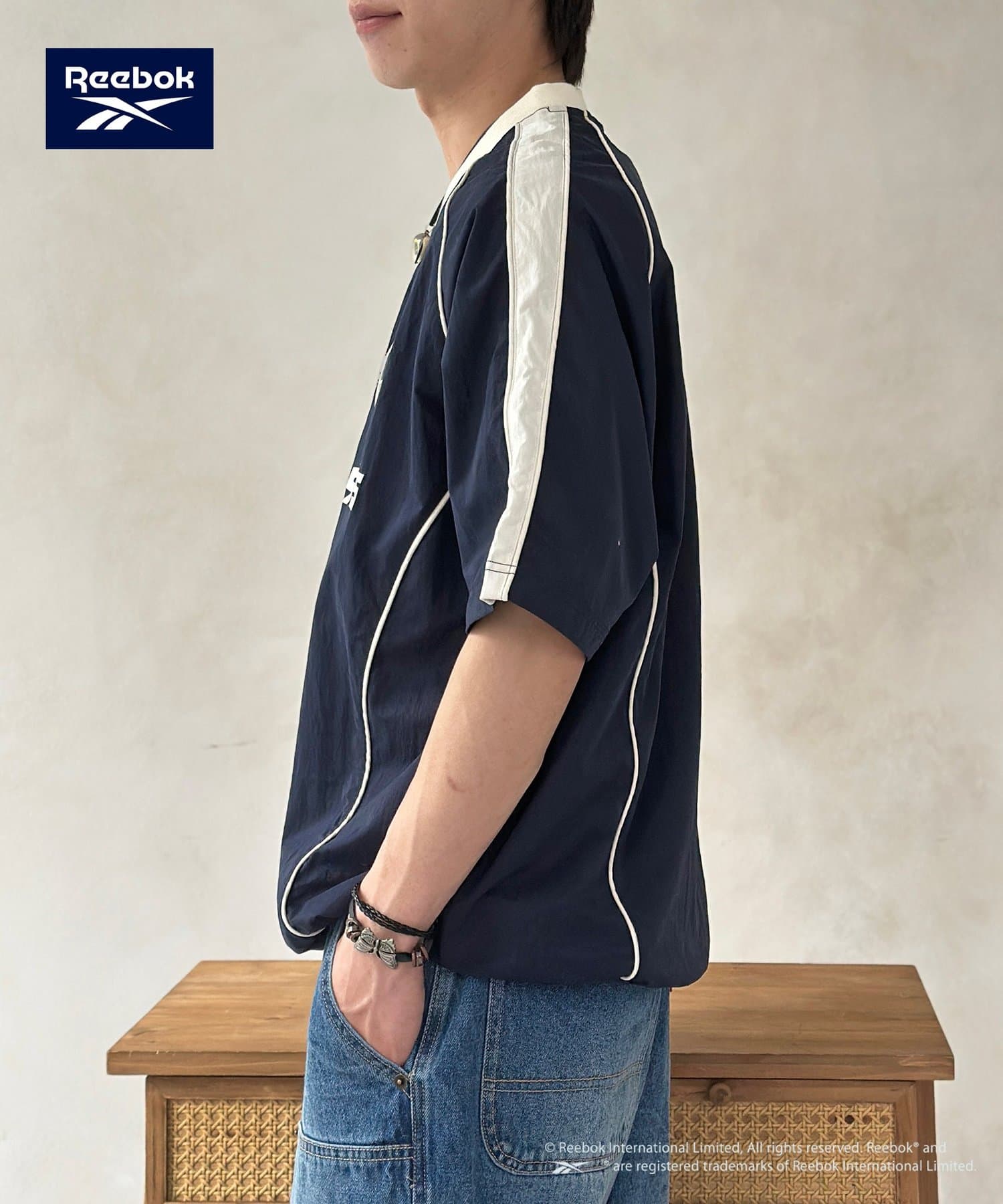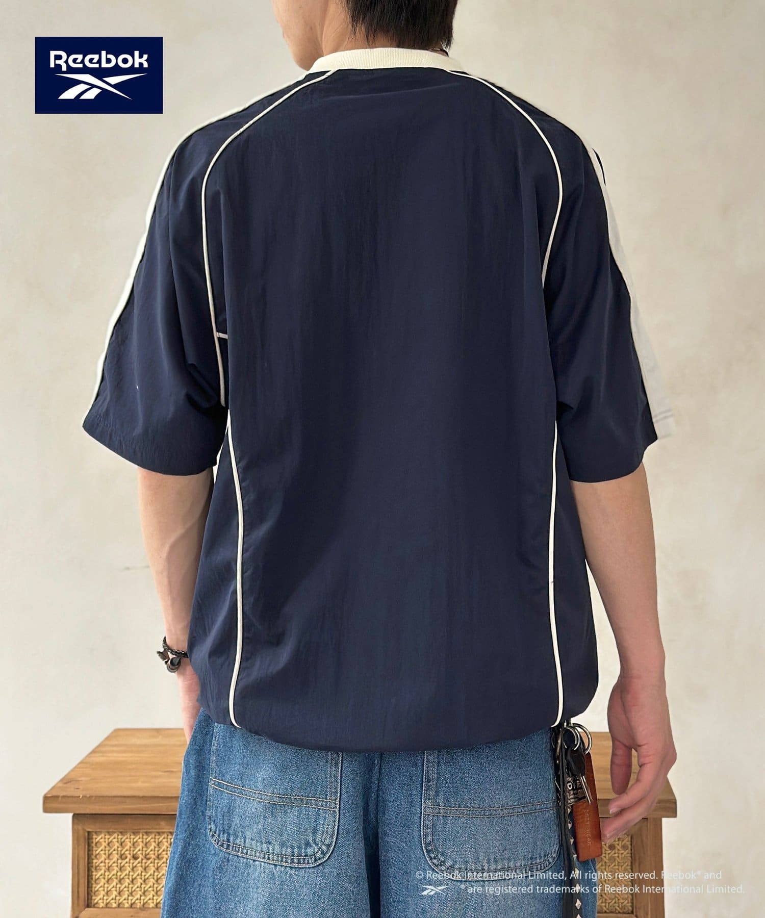 ・胸元にあしらわれたクラシカルなエンブレムとReebokロゴがアクセントに。