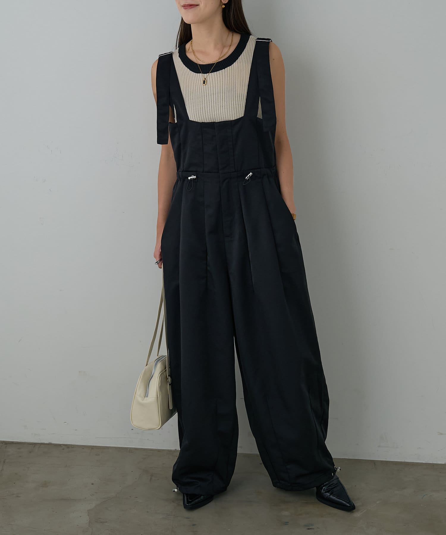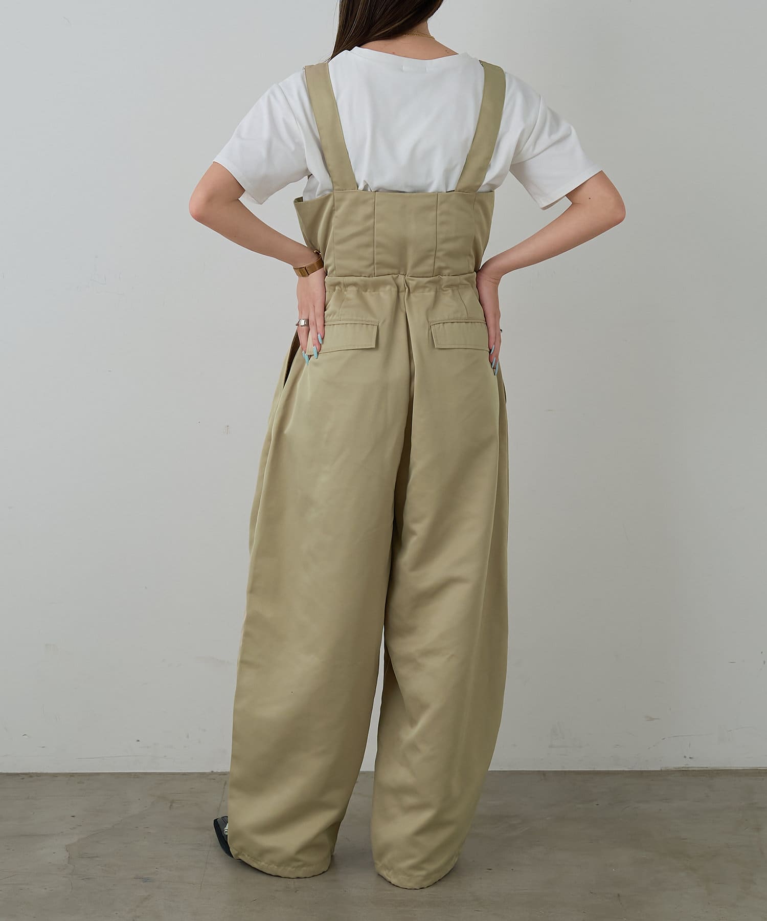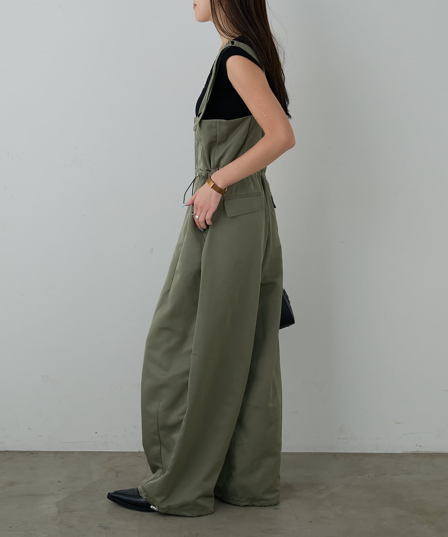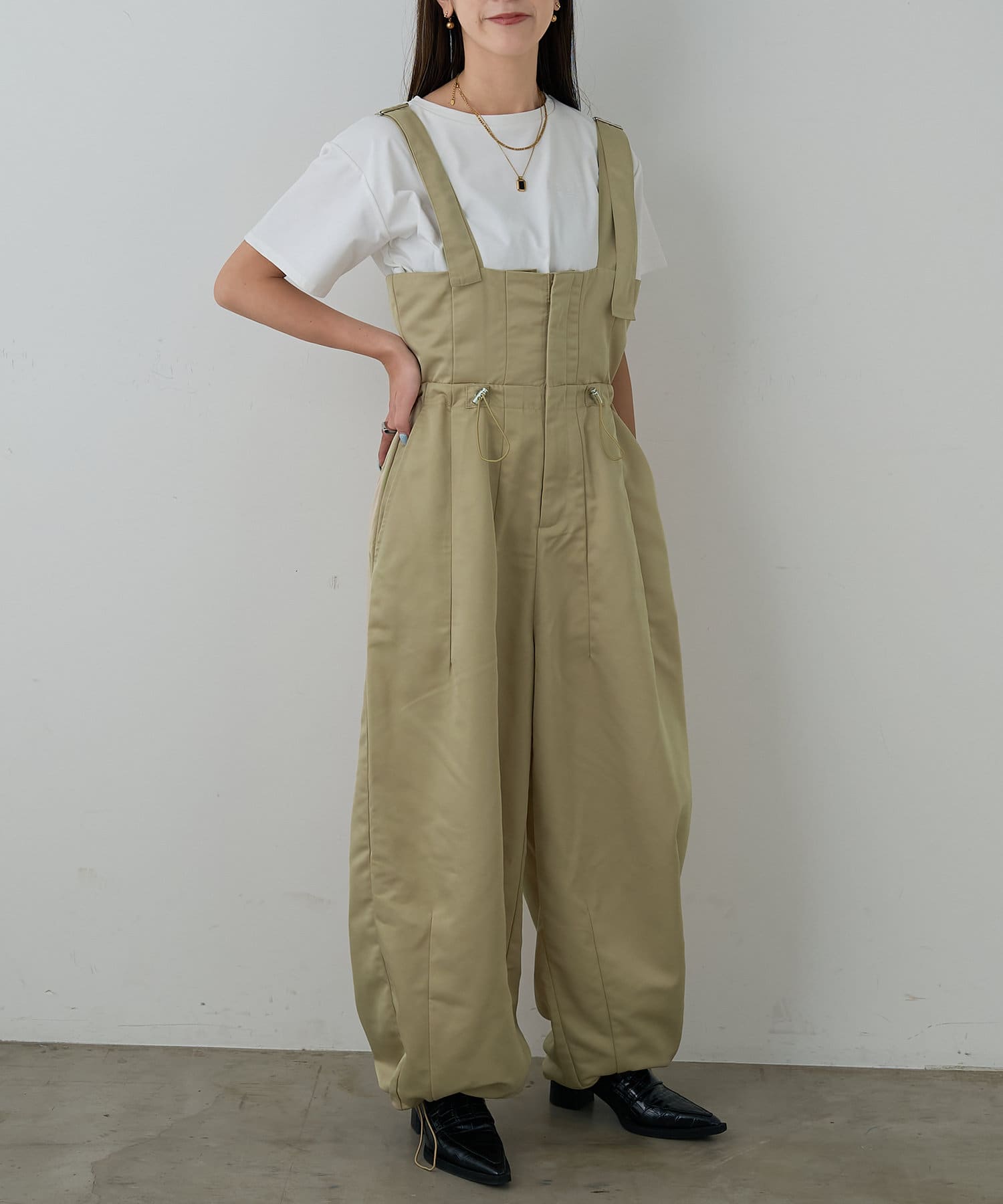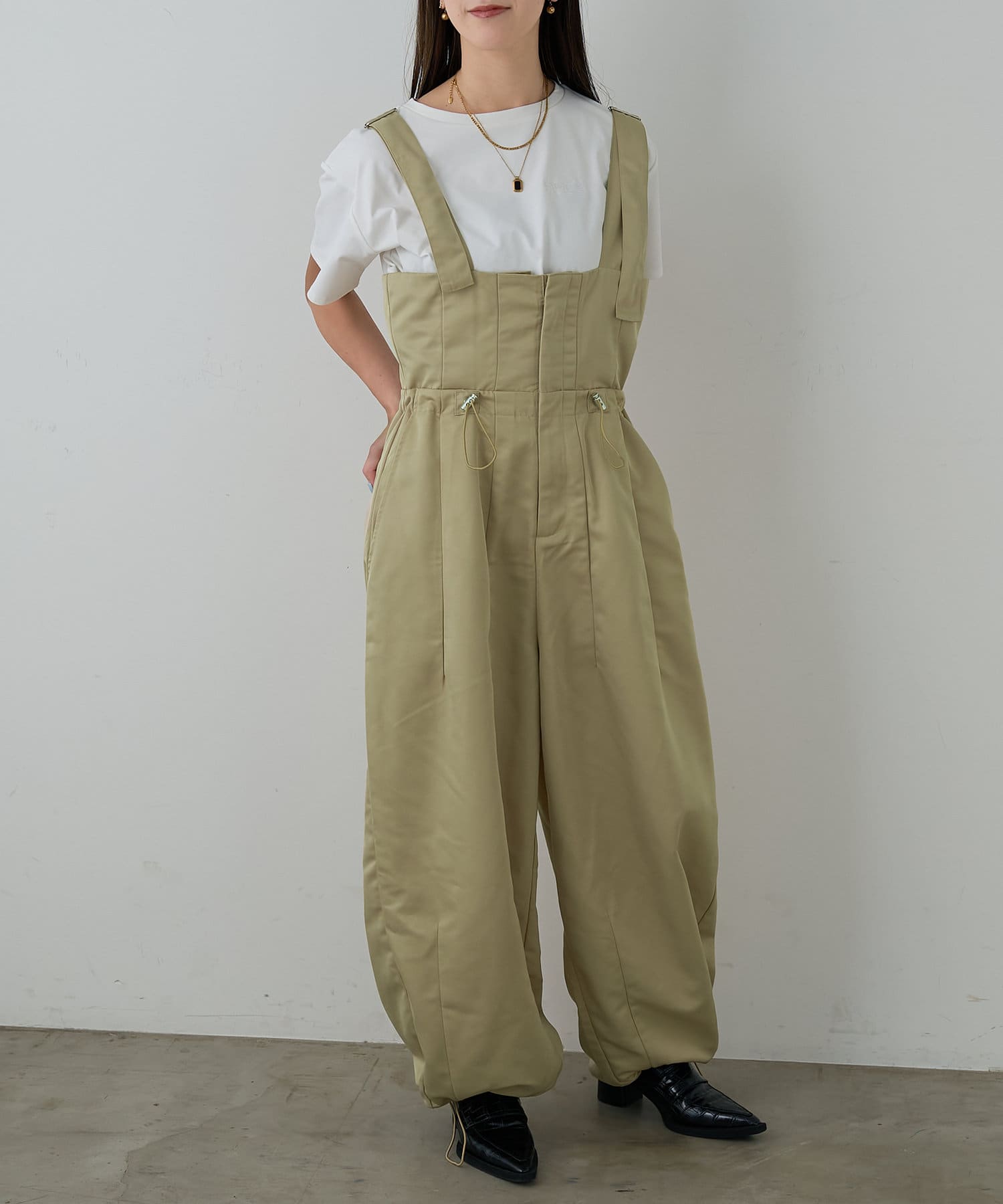 #サロペット #バルーン #大人カジュアル #タックパンツ#ドロストコード付き
