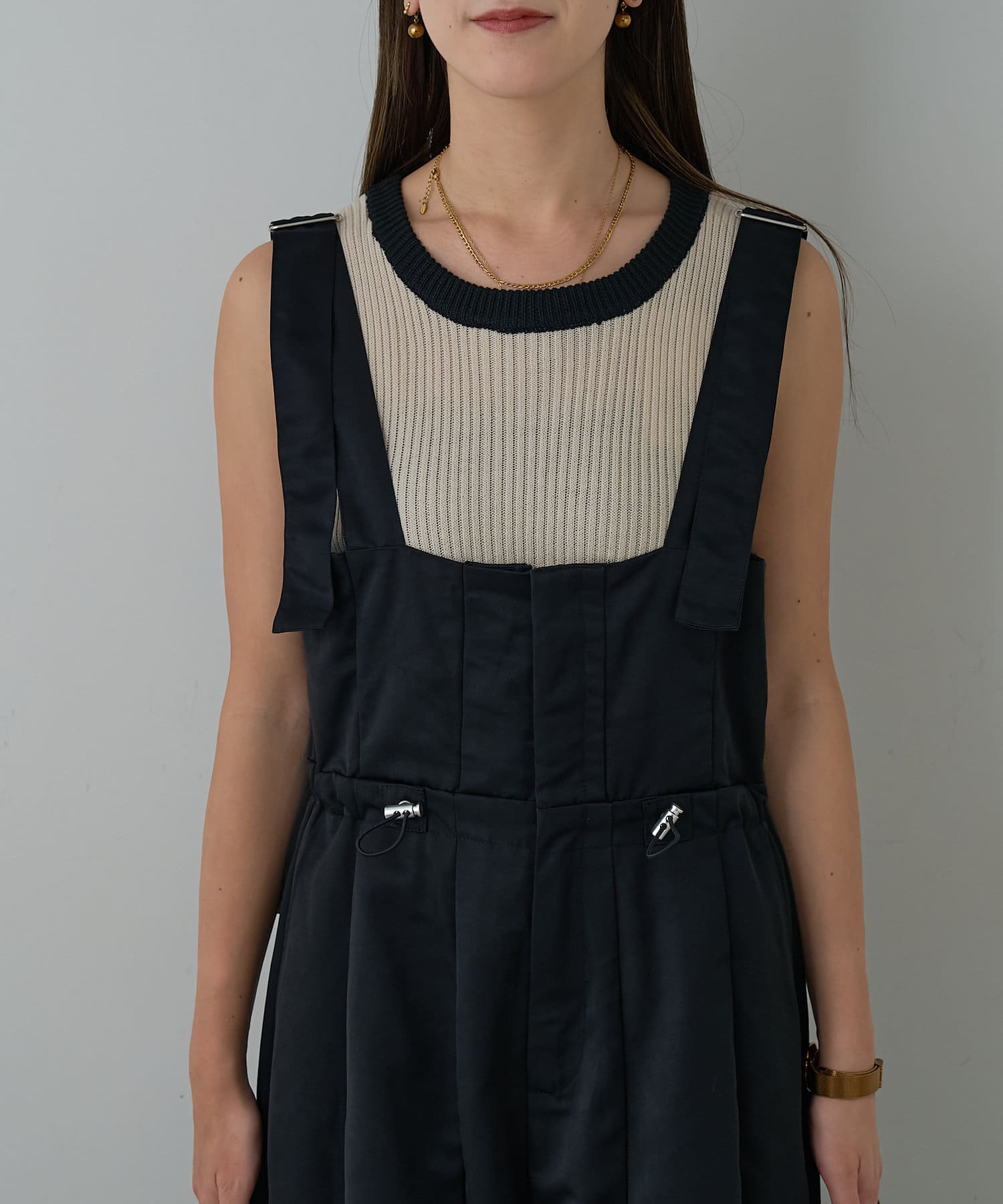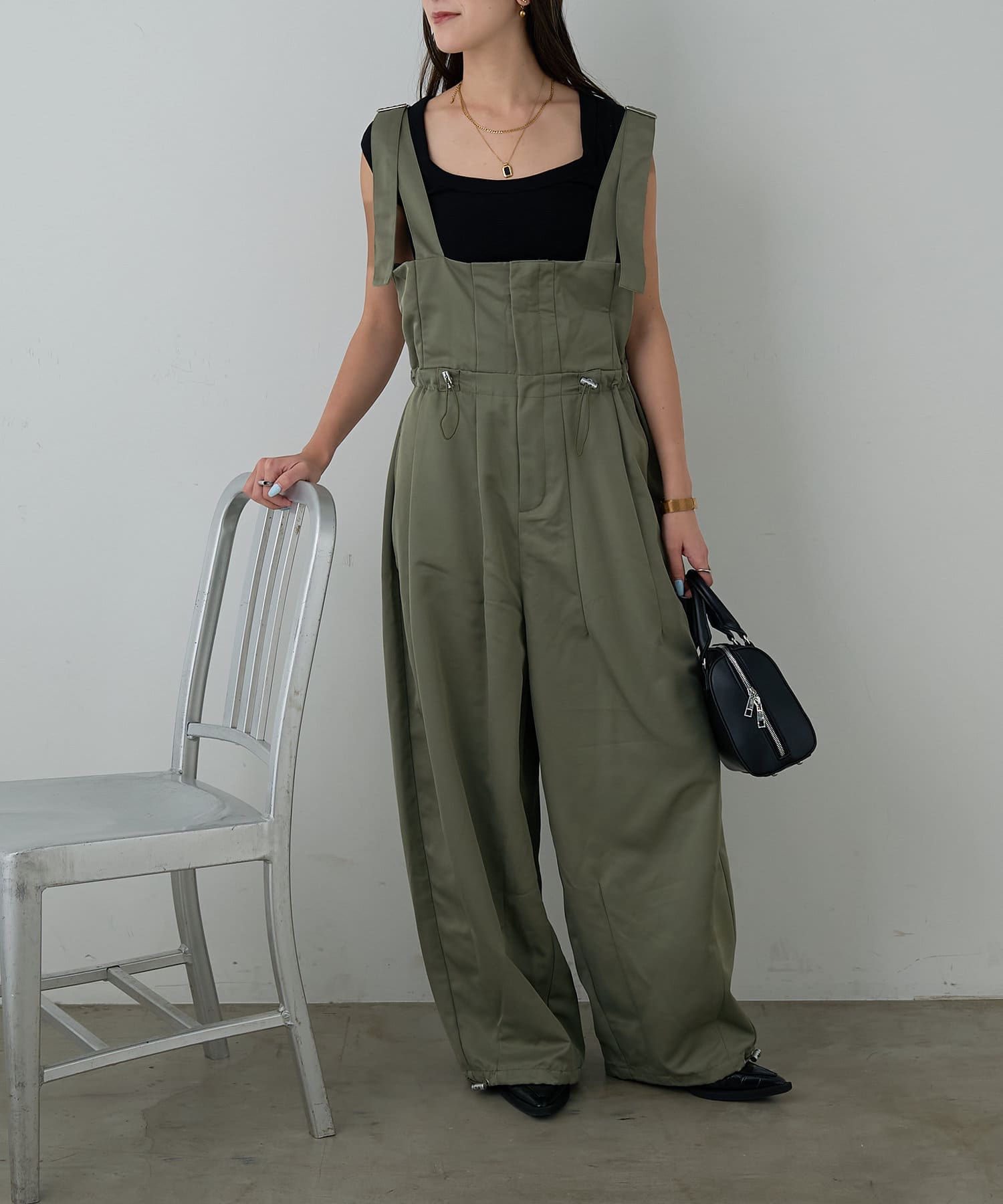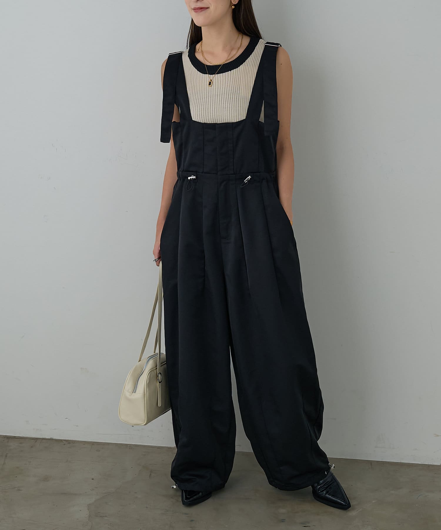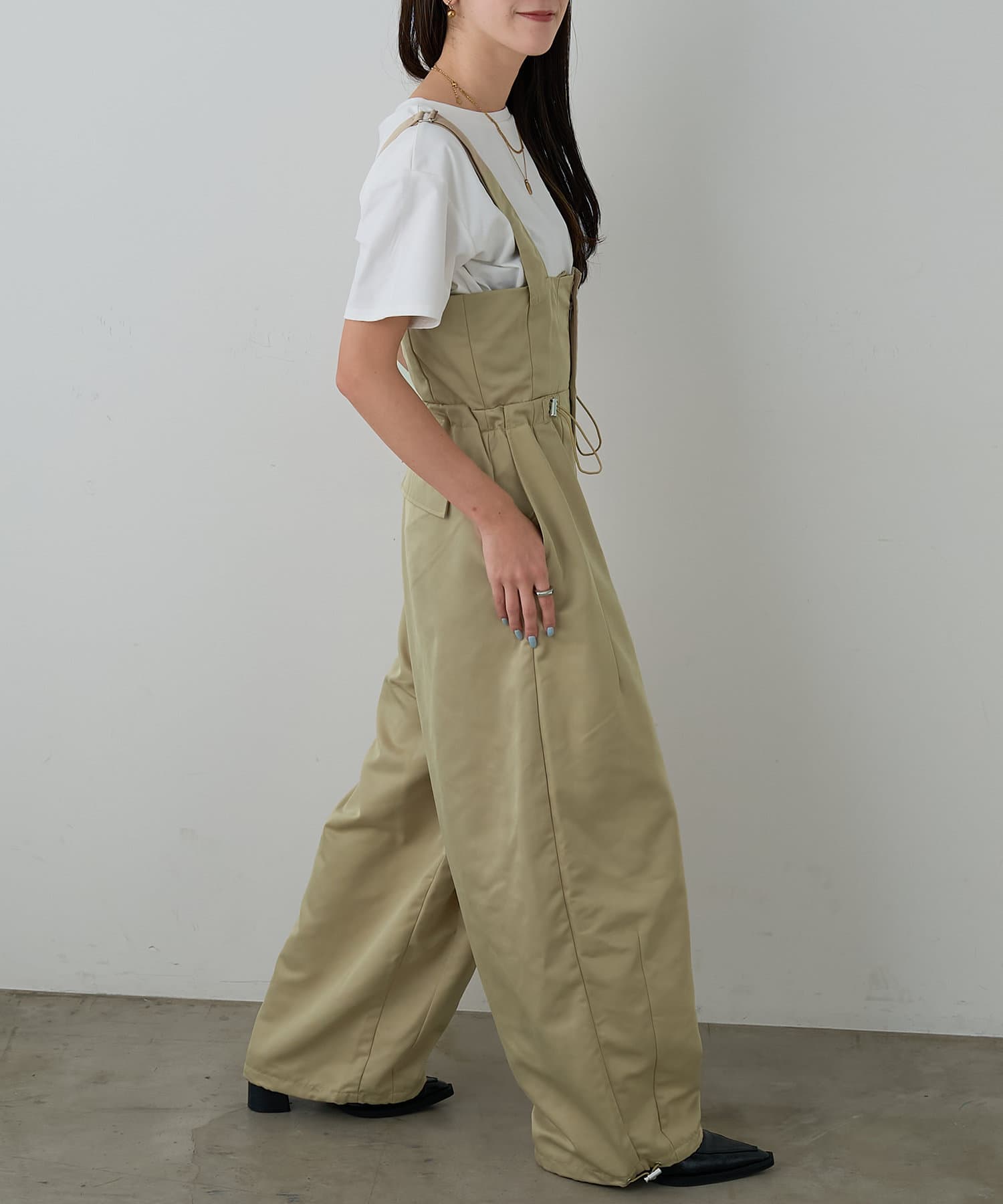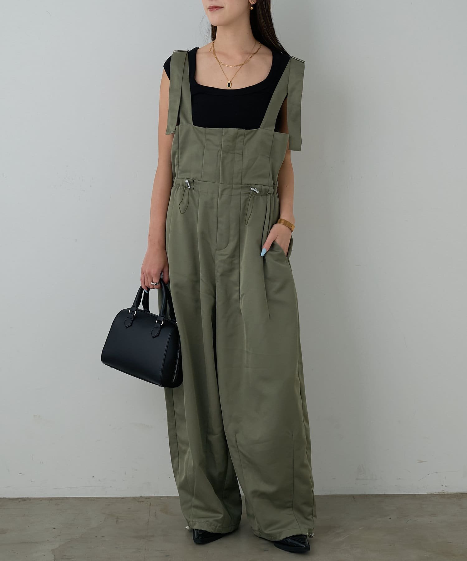 #サロペット #バルーン #大人カジュアル #タックパンツ#ドロストコード付き