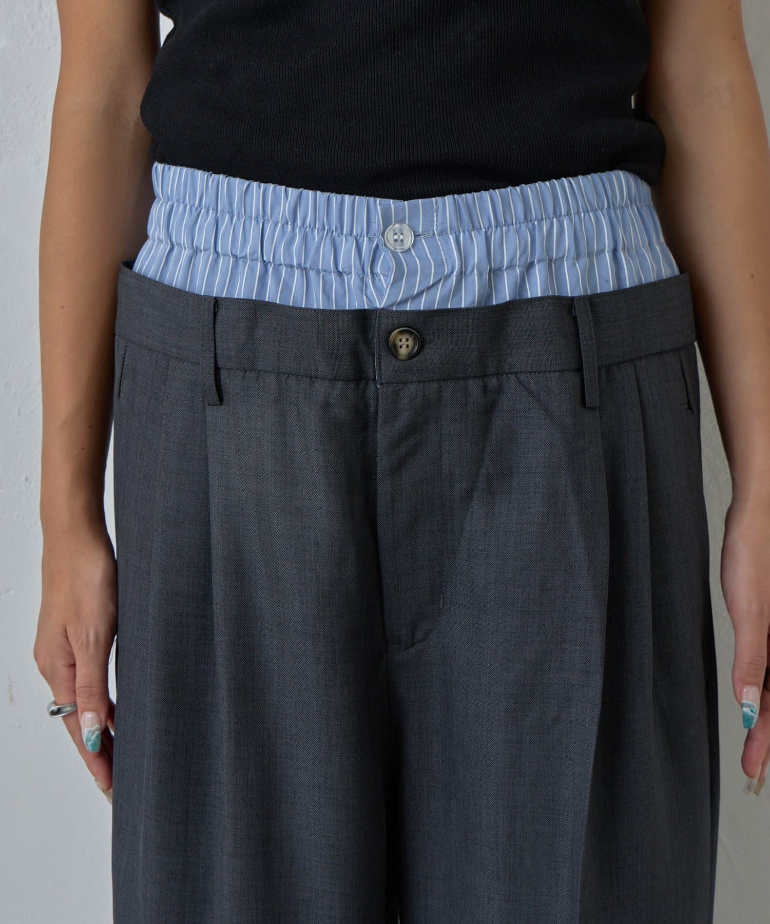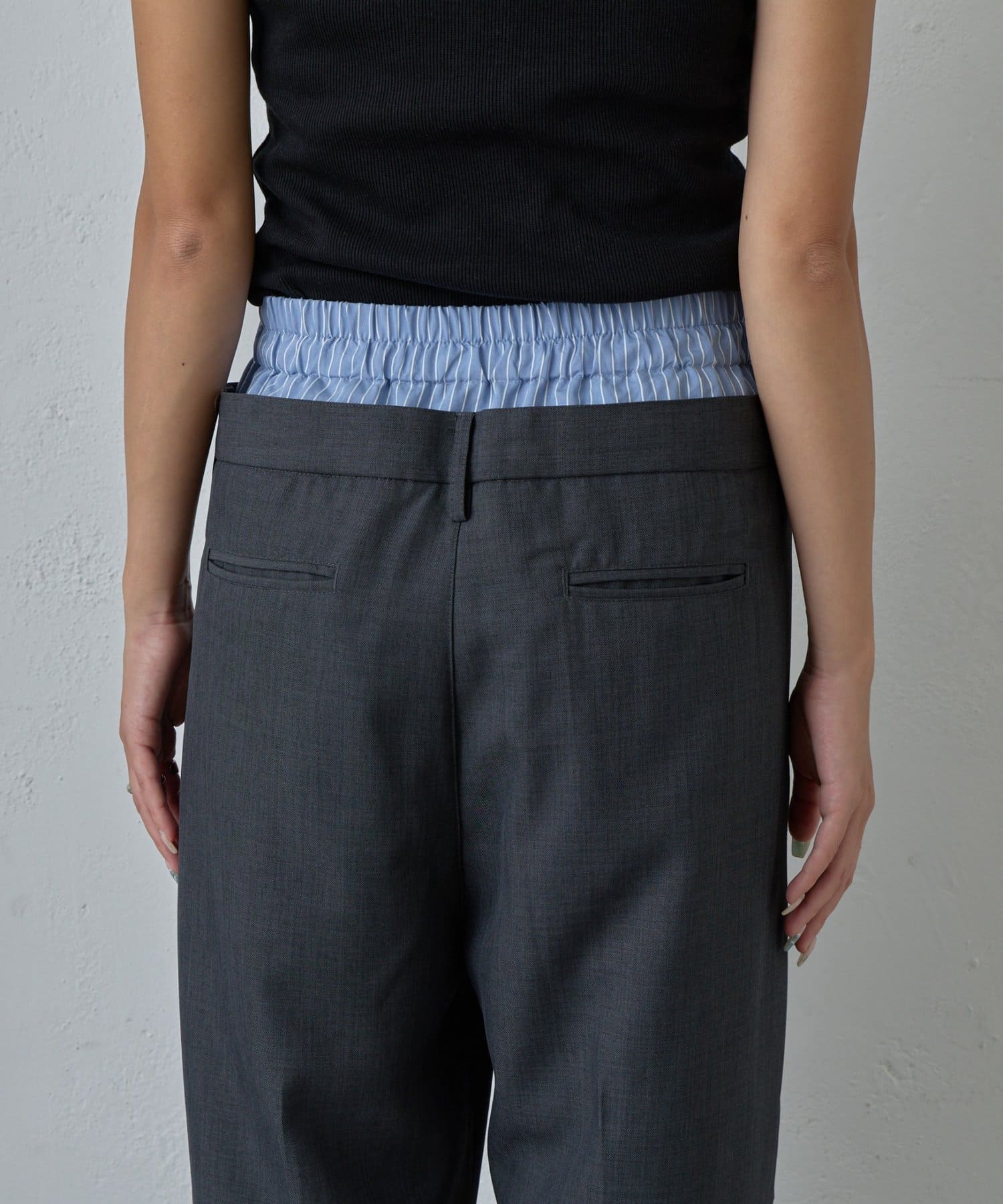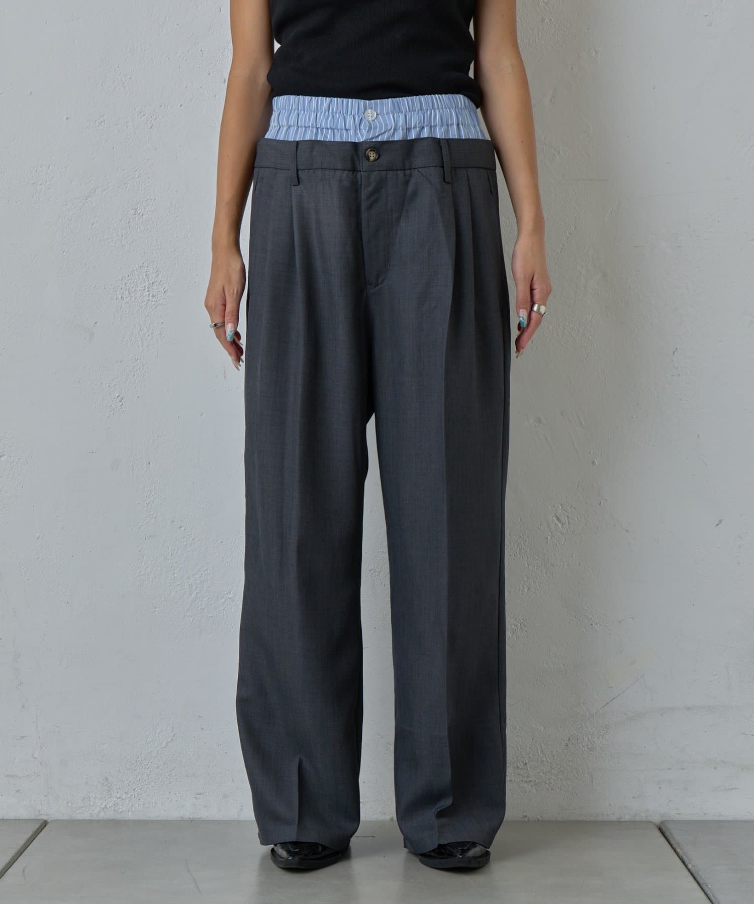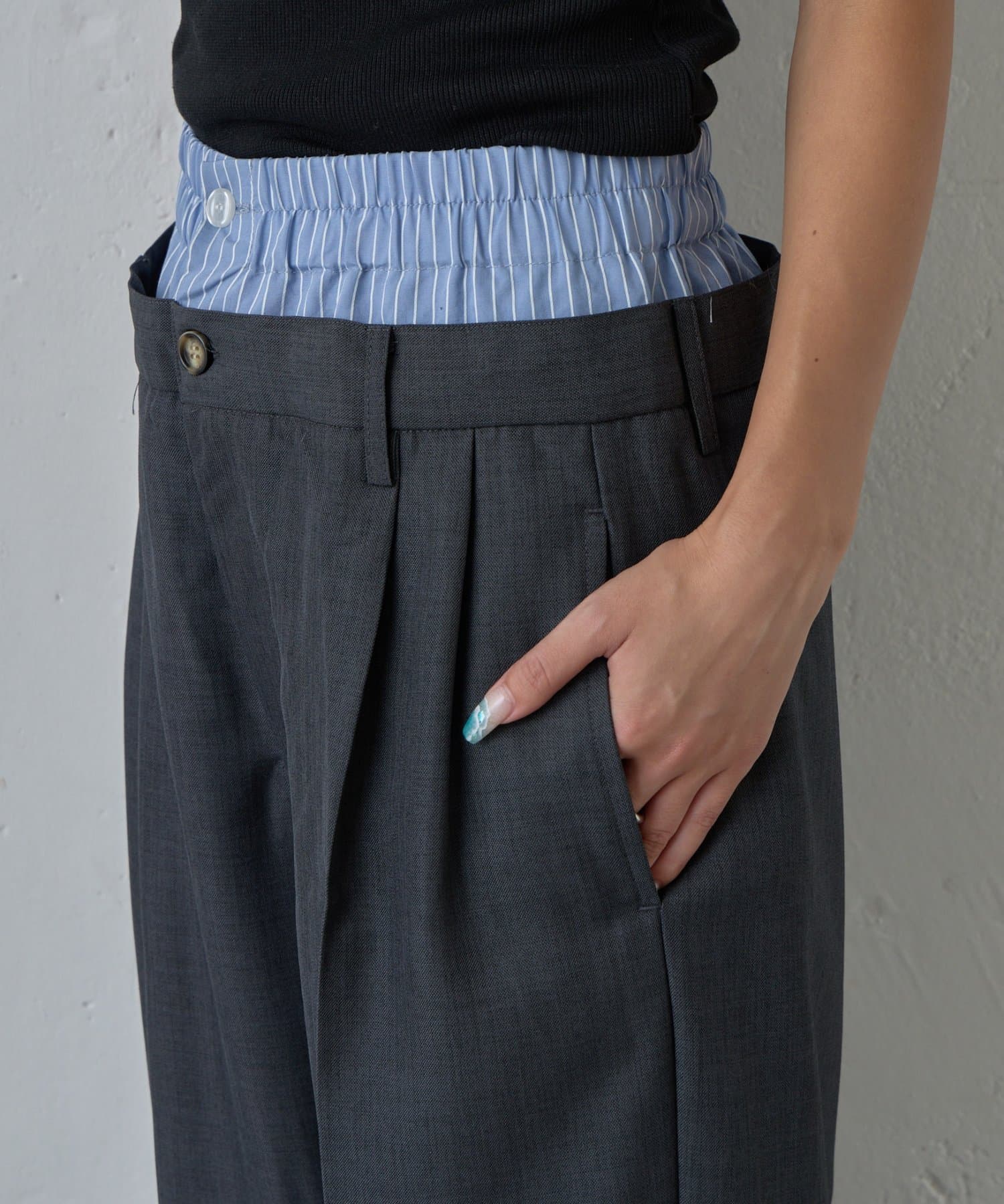 異素材レイヤードが特徴的なダブルウエストパンツ