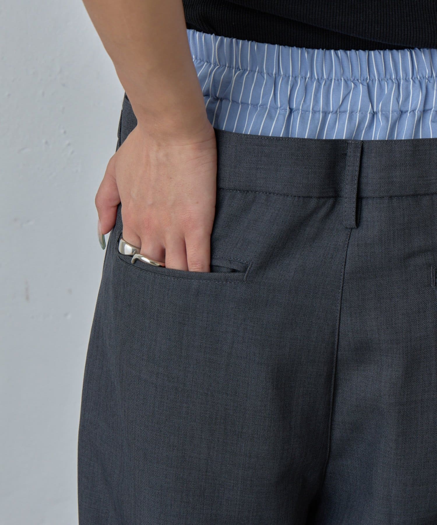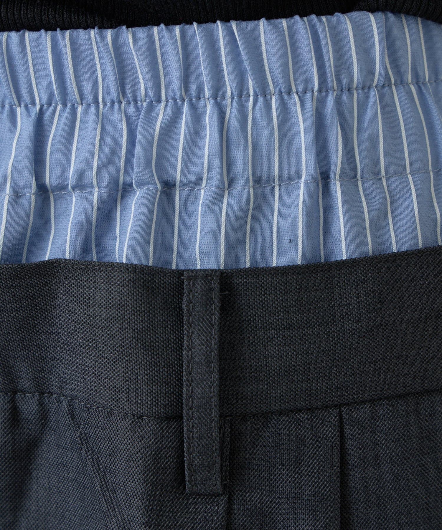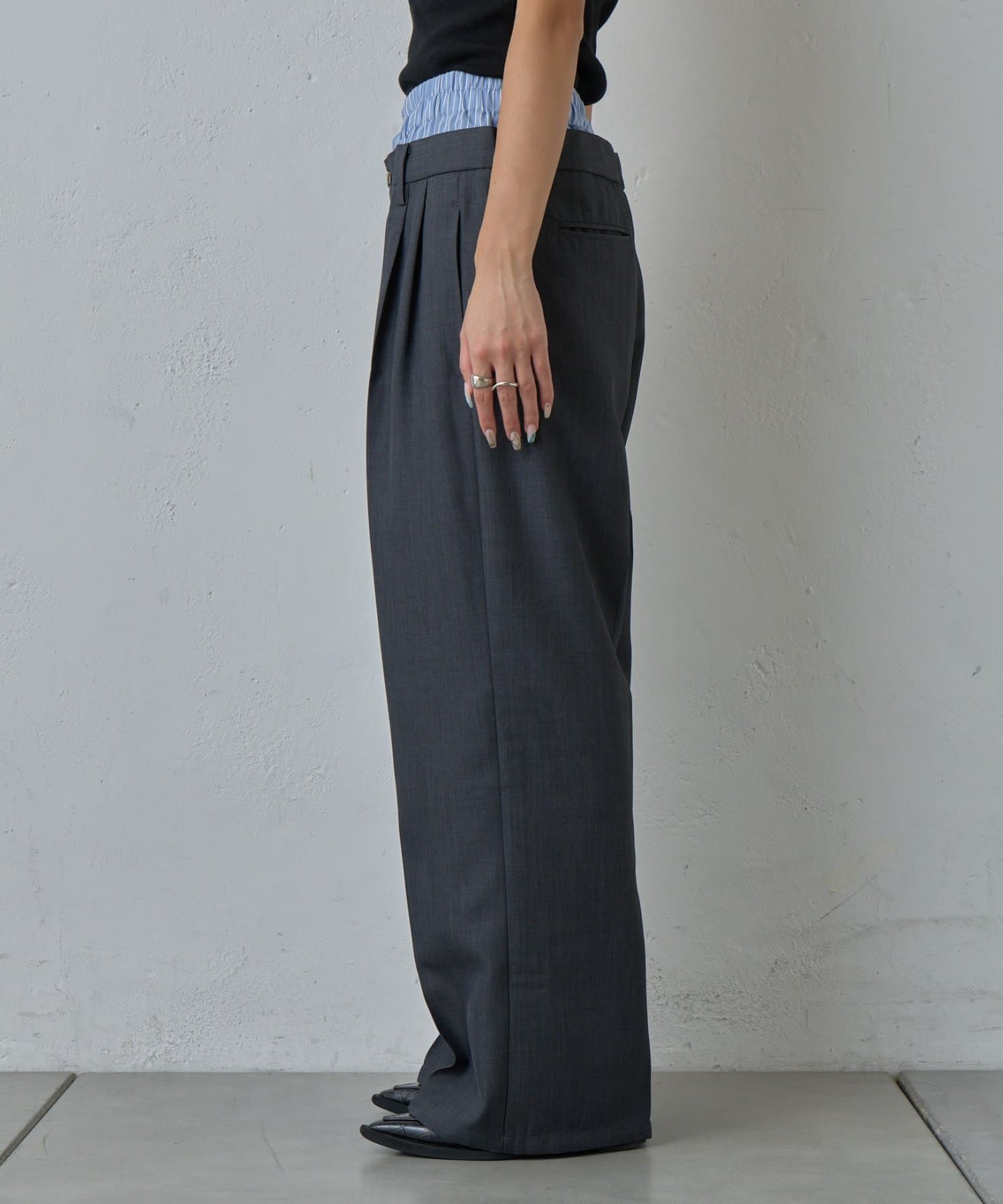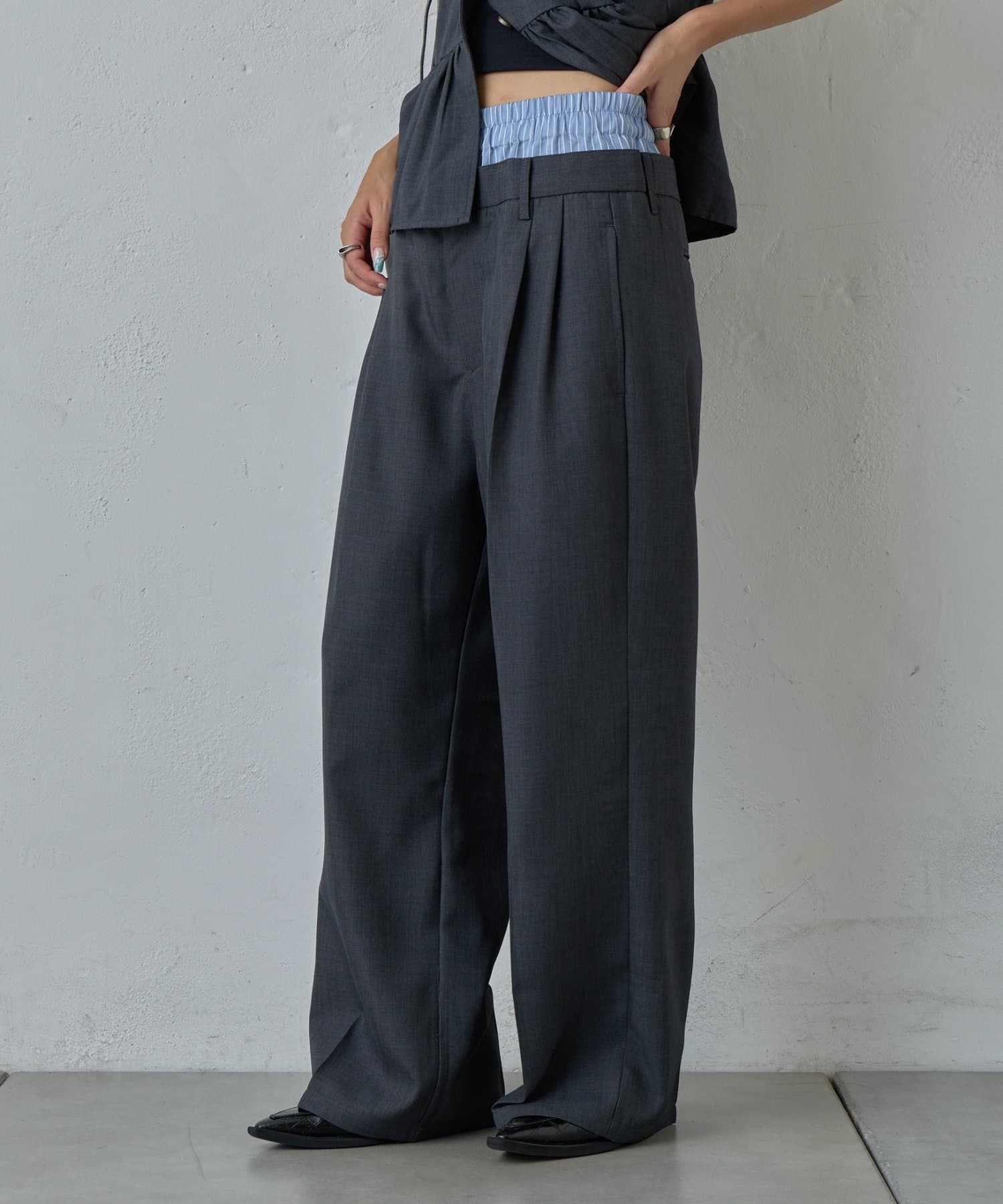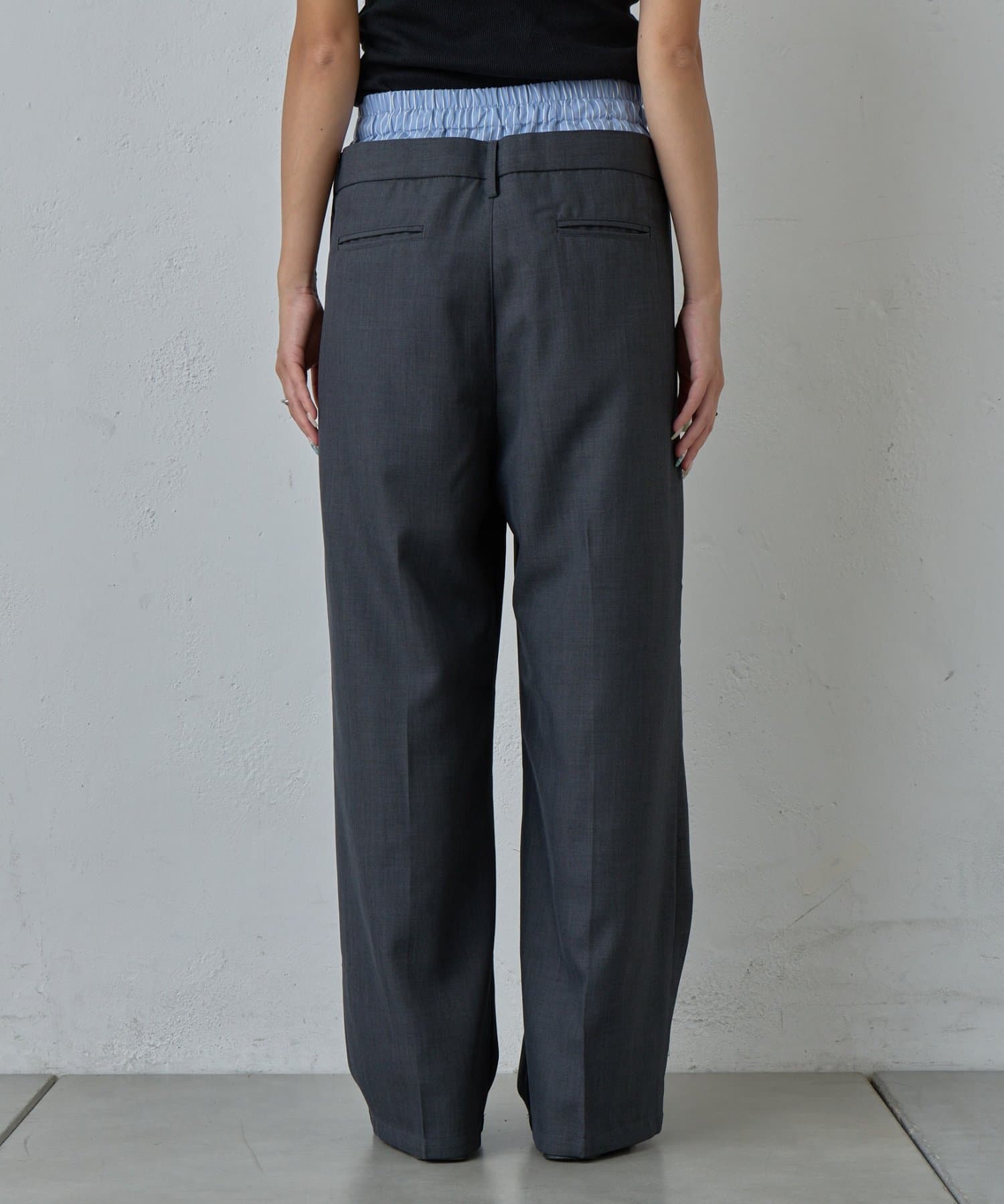 異素材レイヤードが特徴的なダブルウエストパンツ