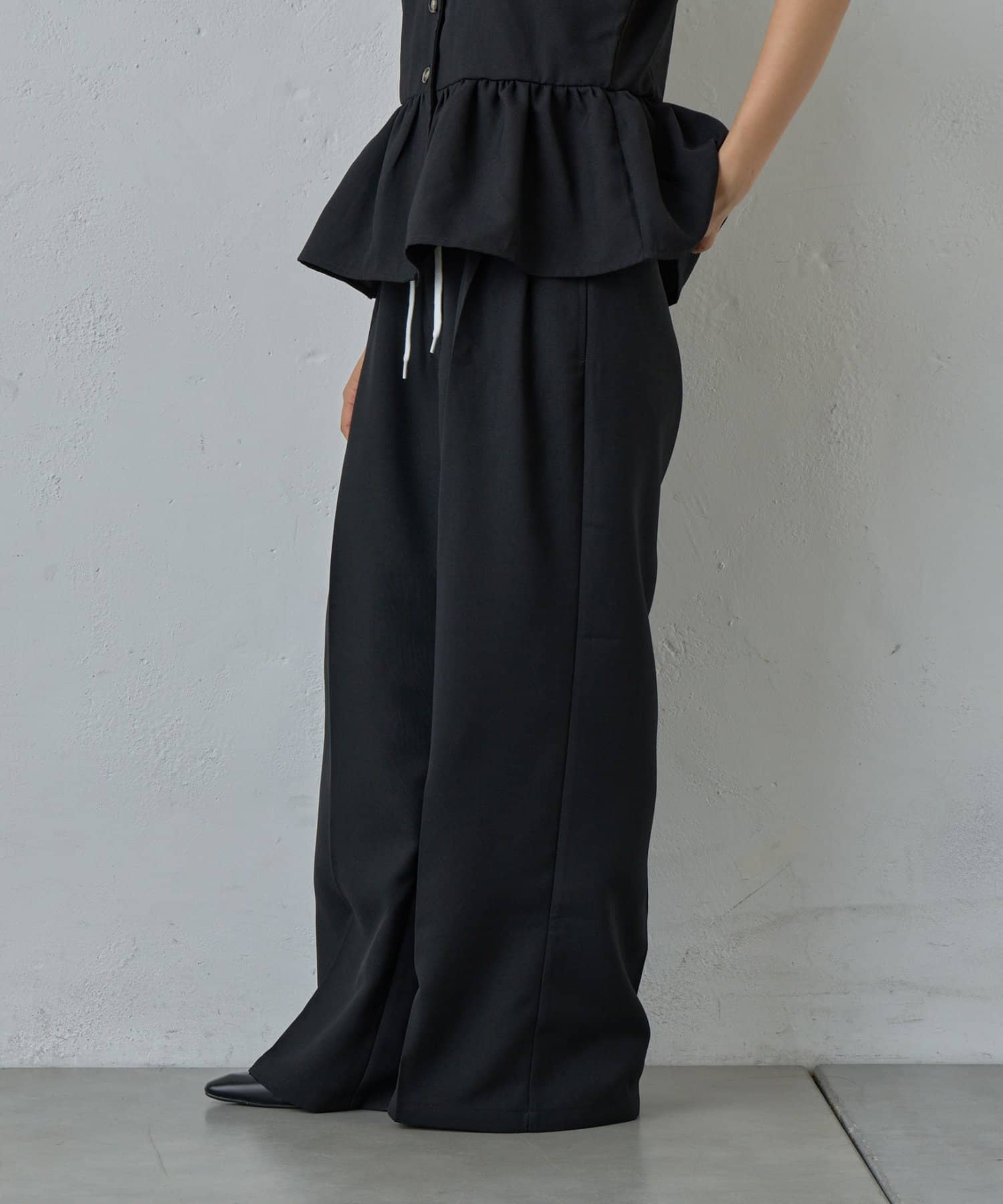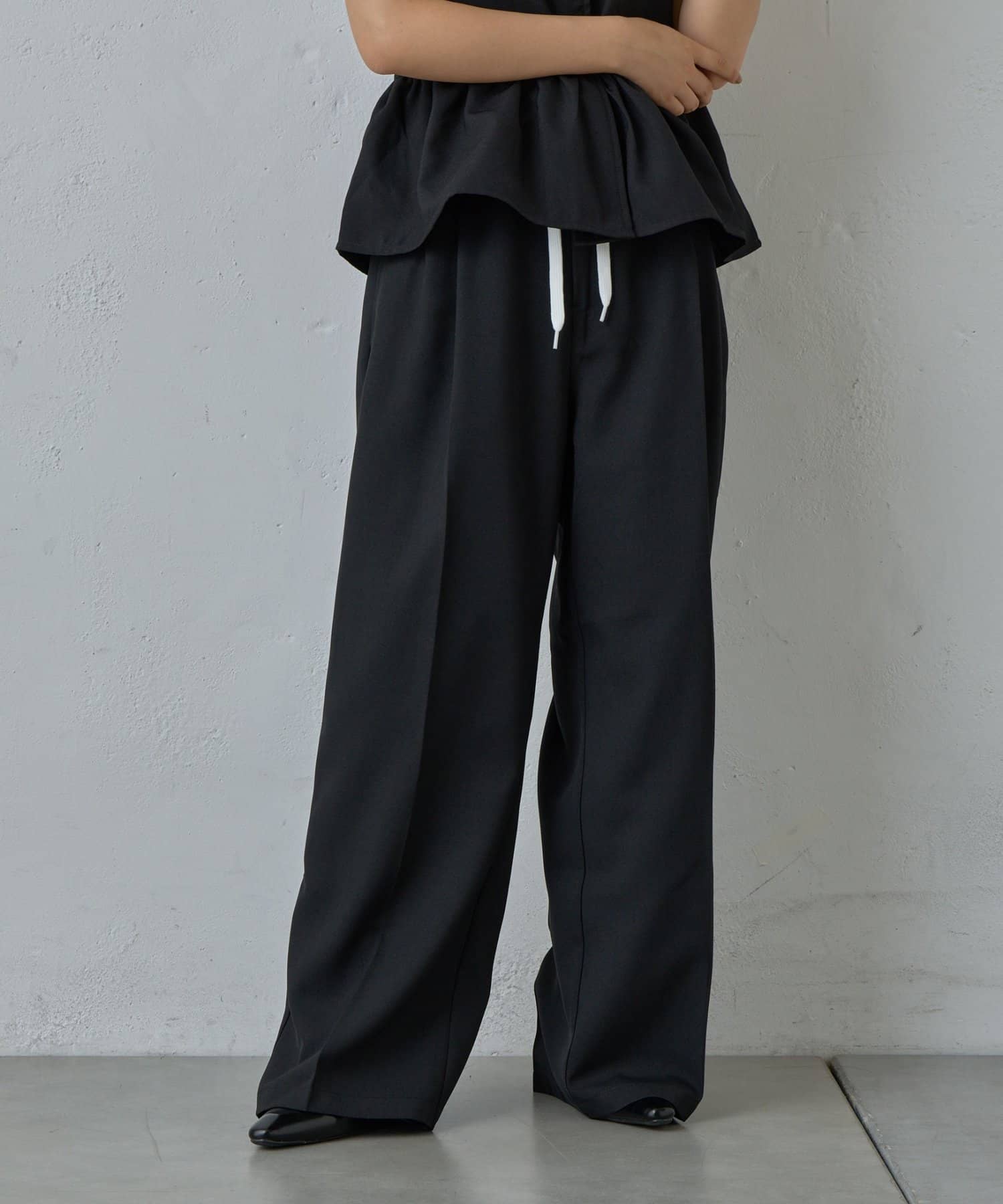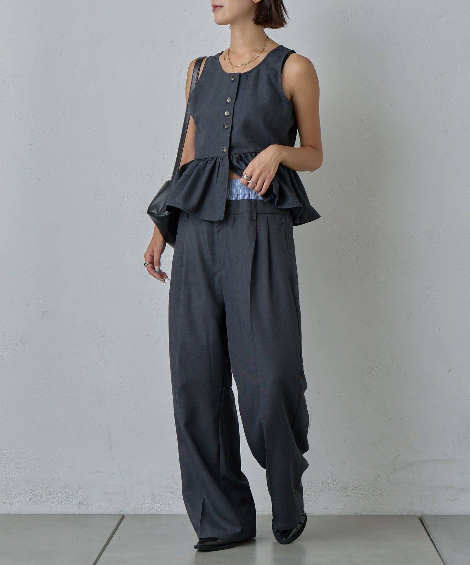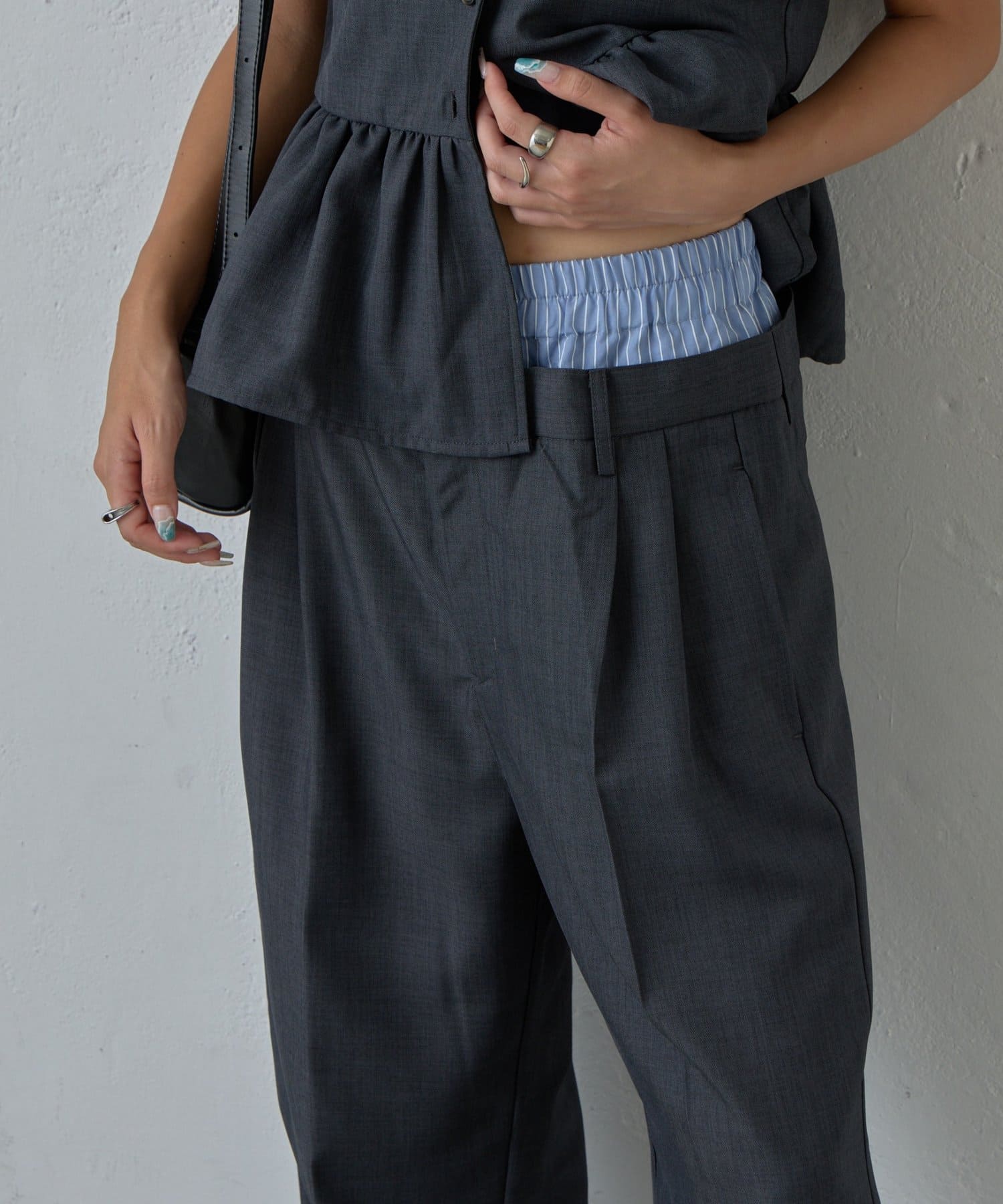 異素材レイヤードが特徴的なダブルウエストパンツ