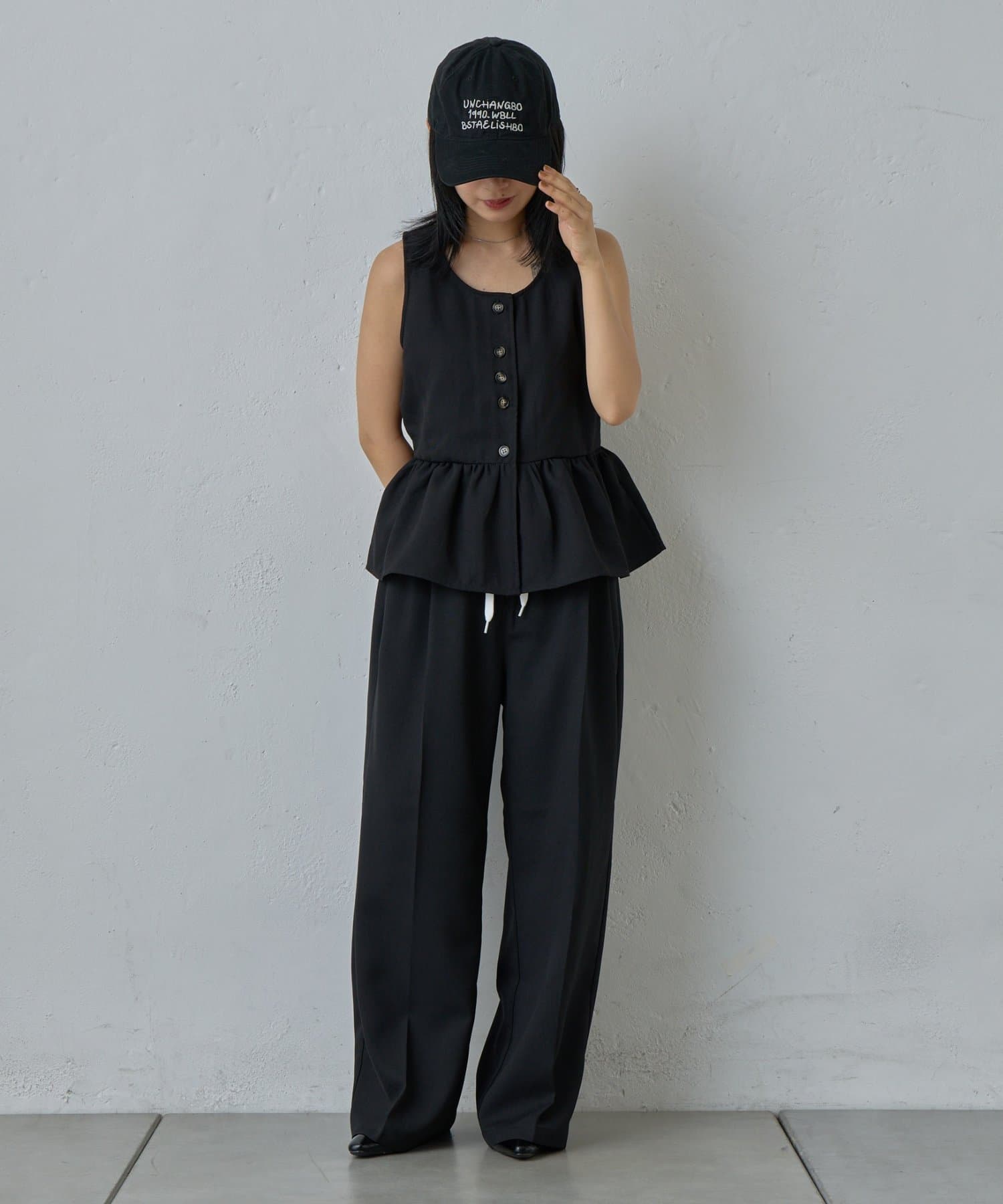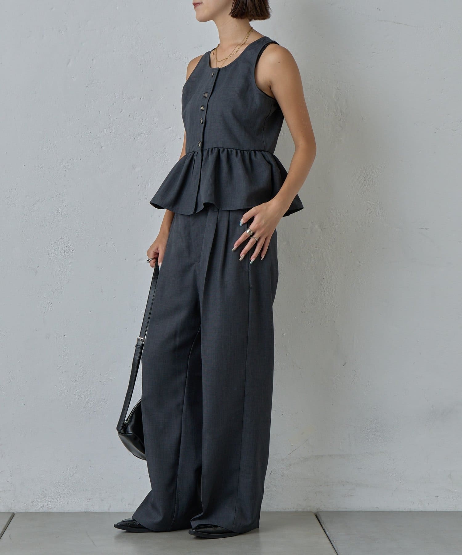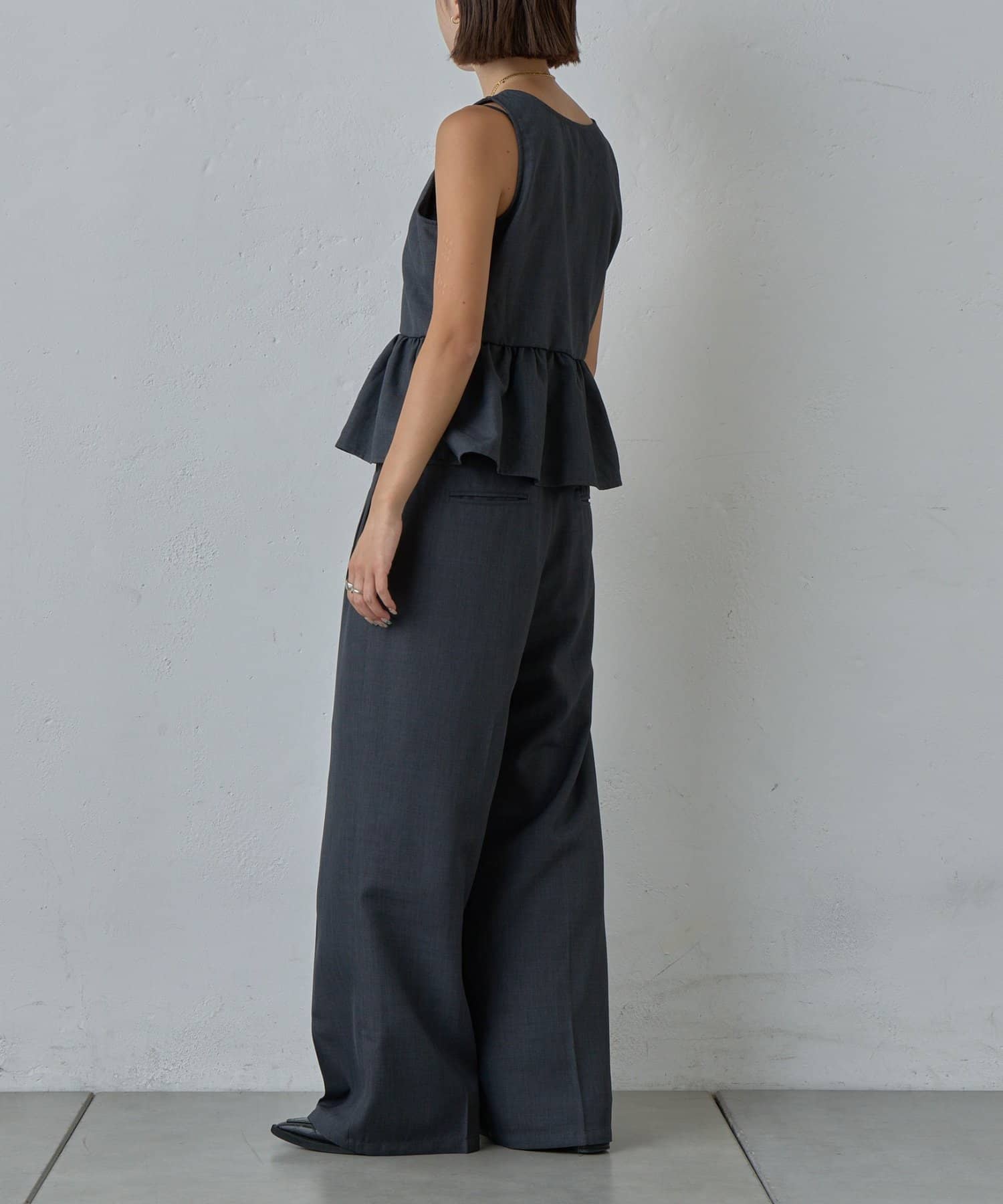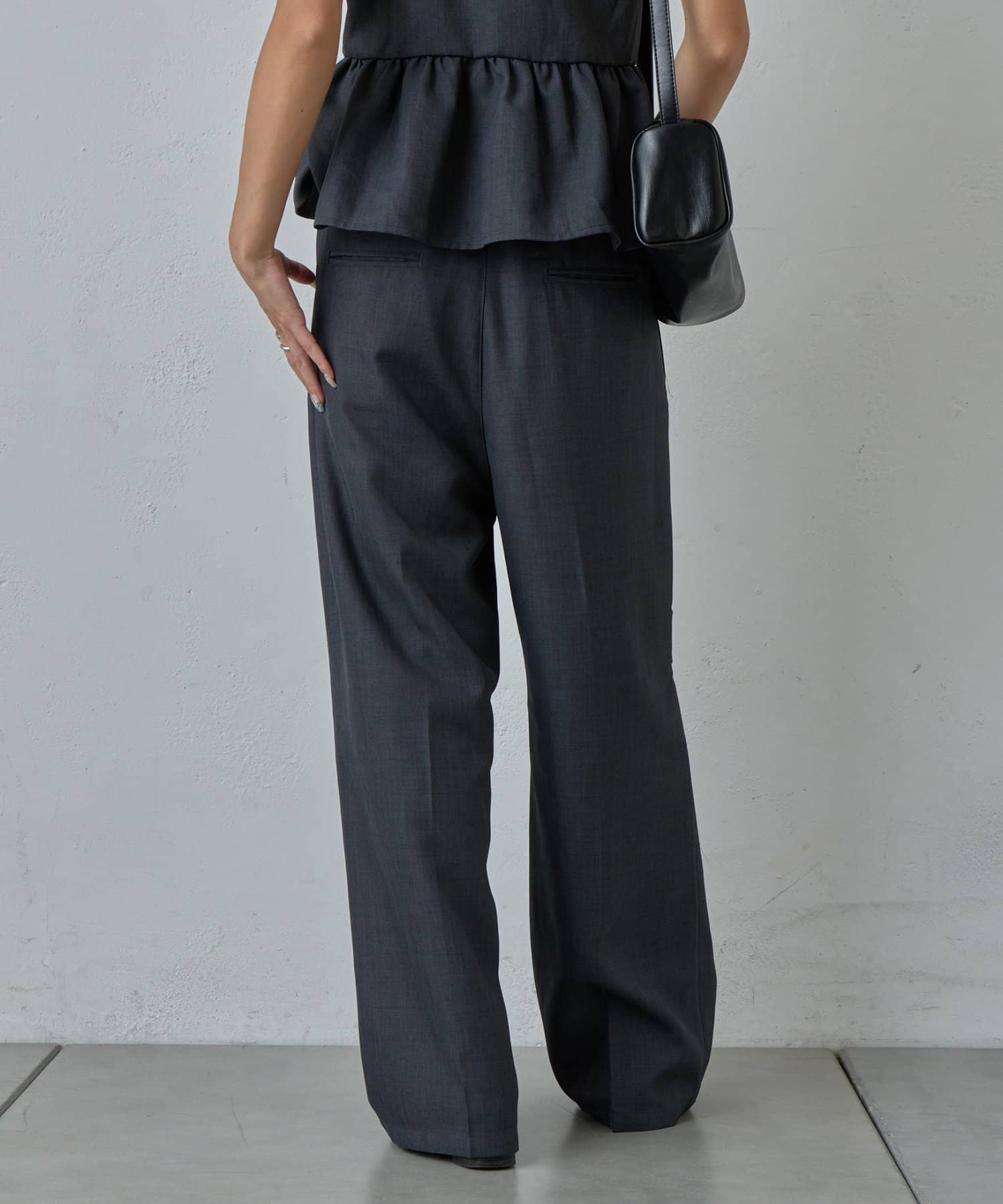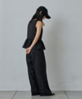 異素材レイヤードが特徴的なダブルウエストパンツ