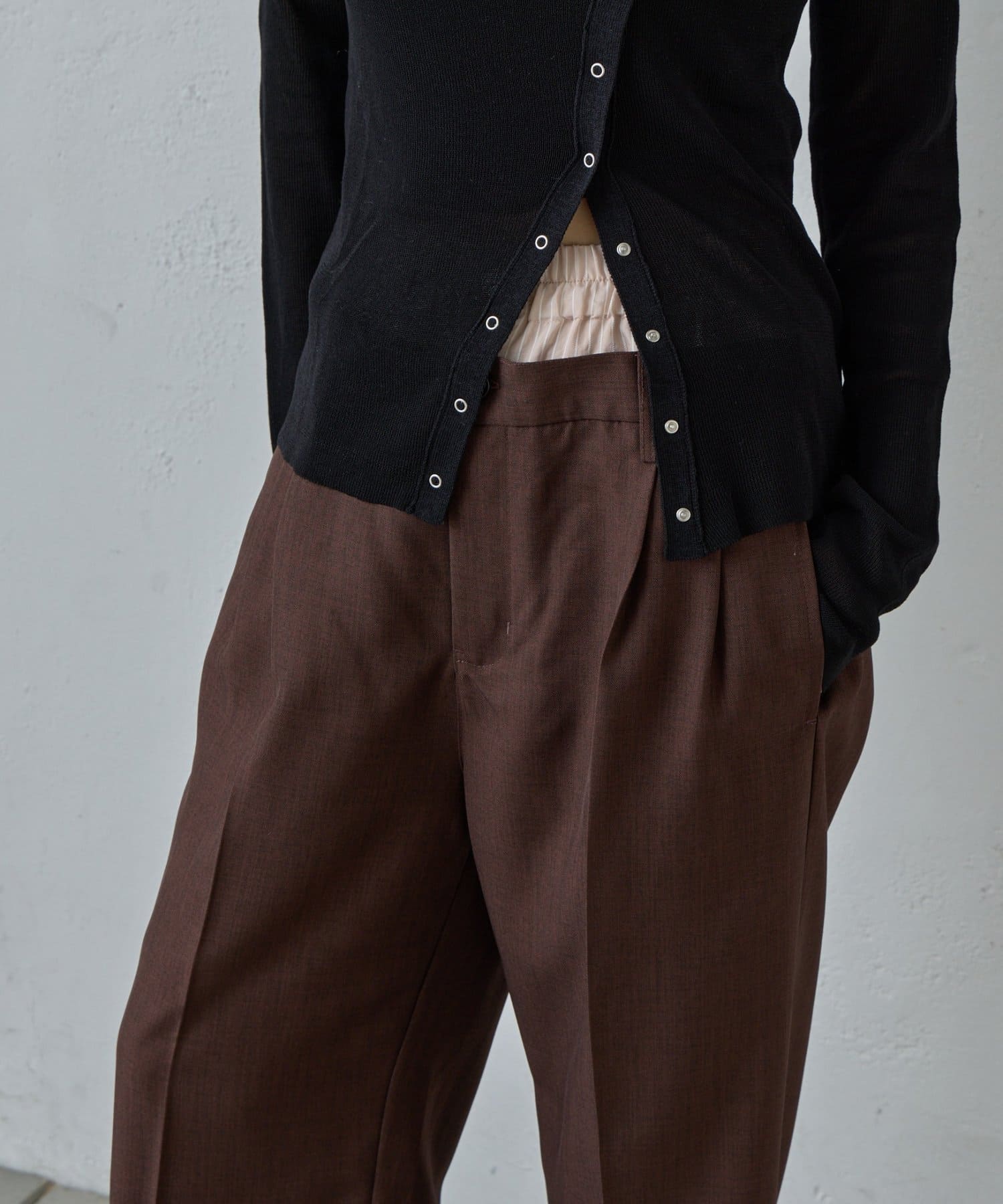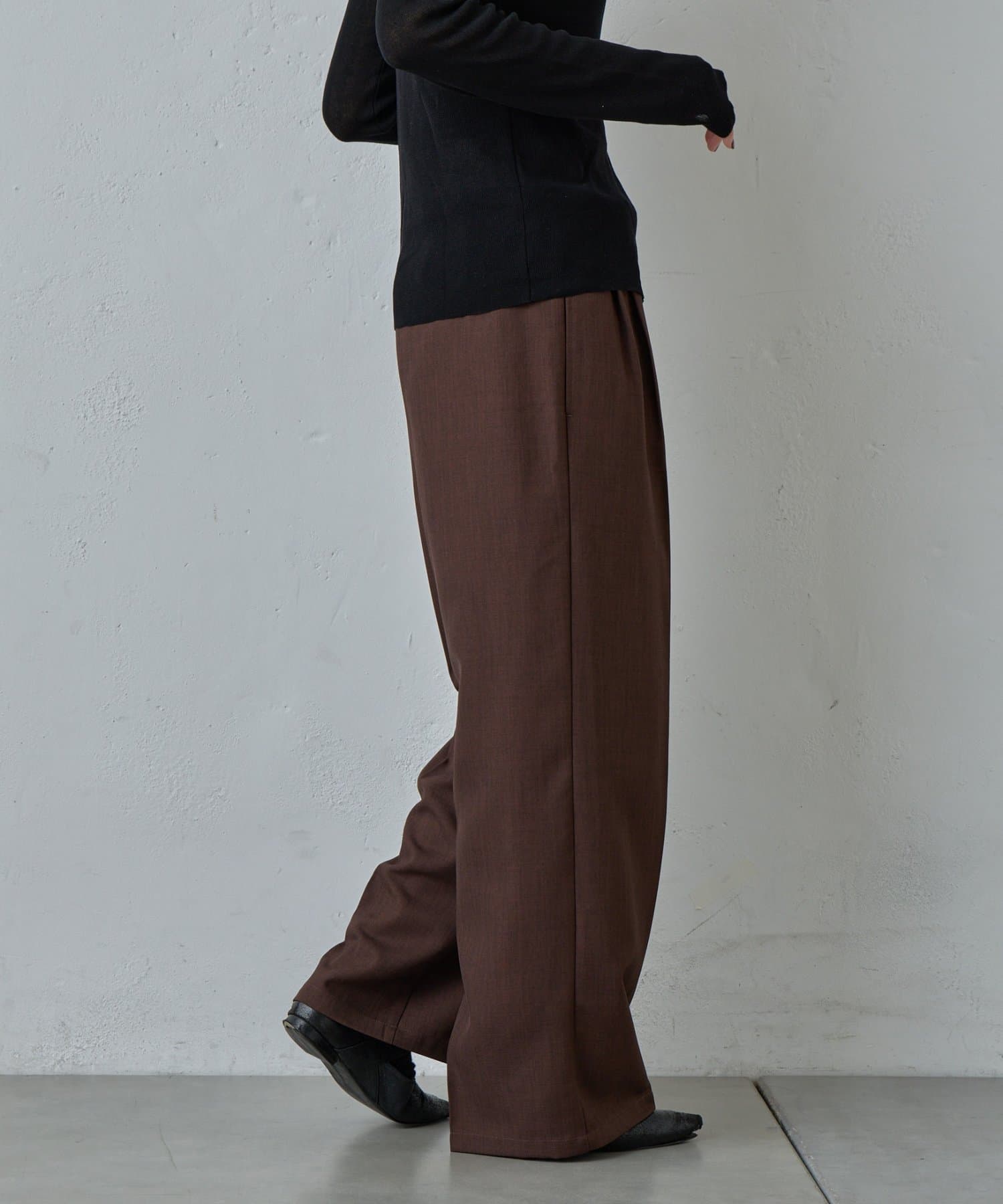 麻タッチポリダブルウエストパンツ【セットアップ対応】
