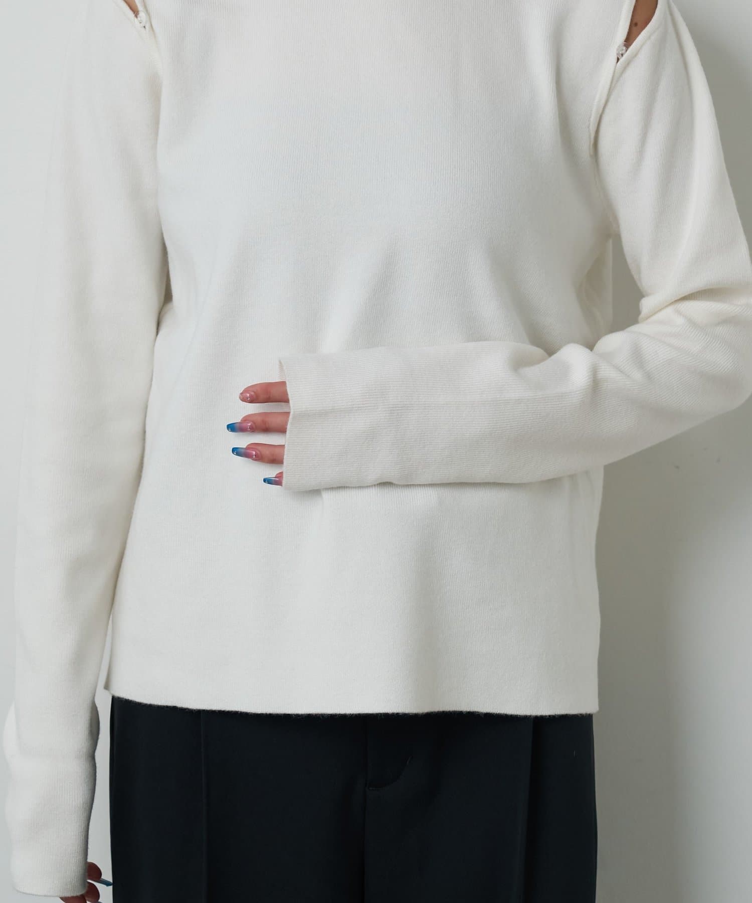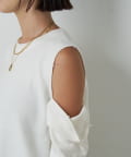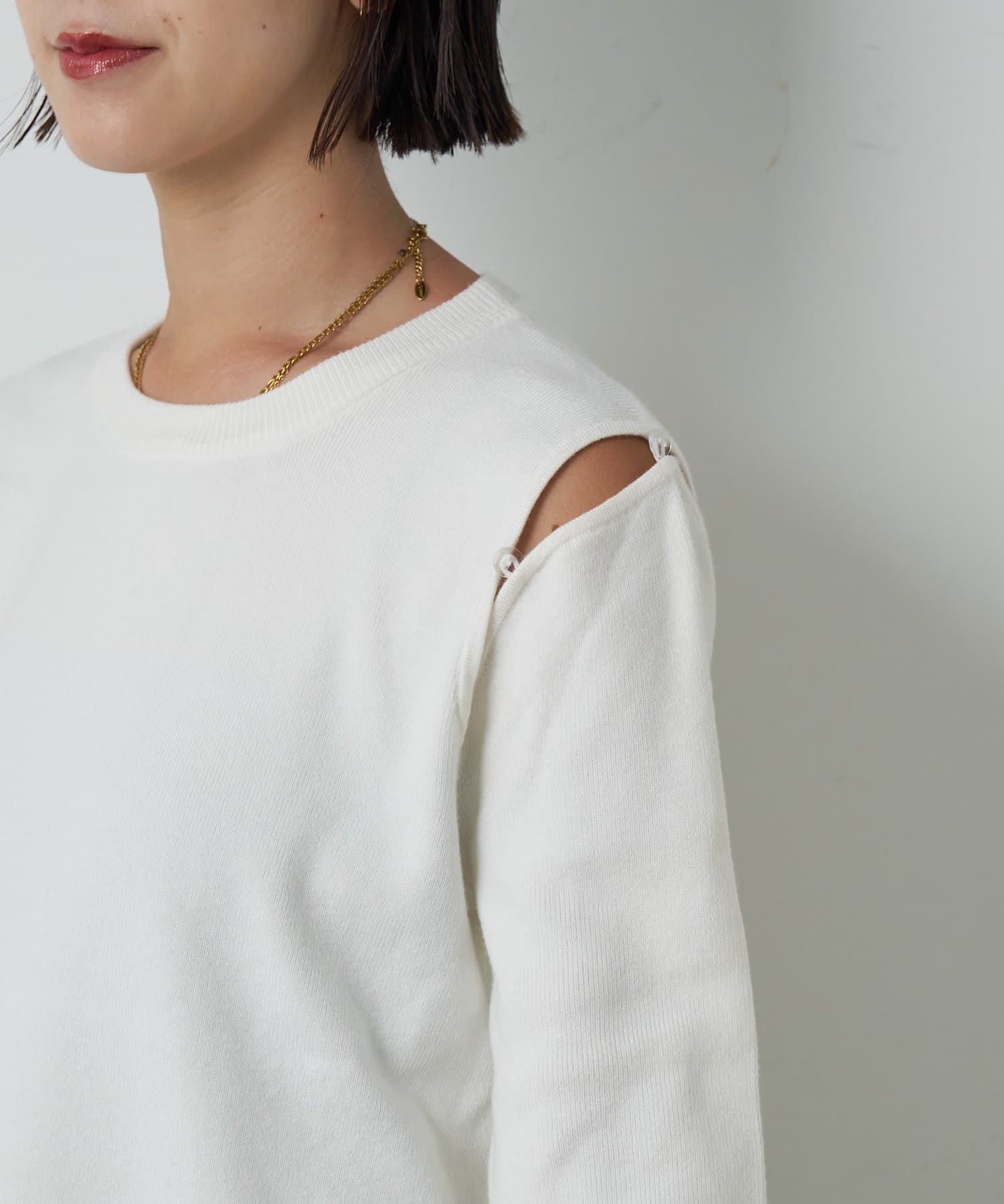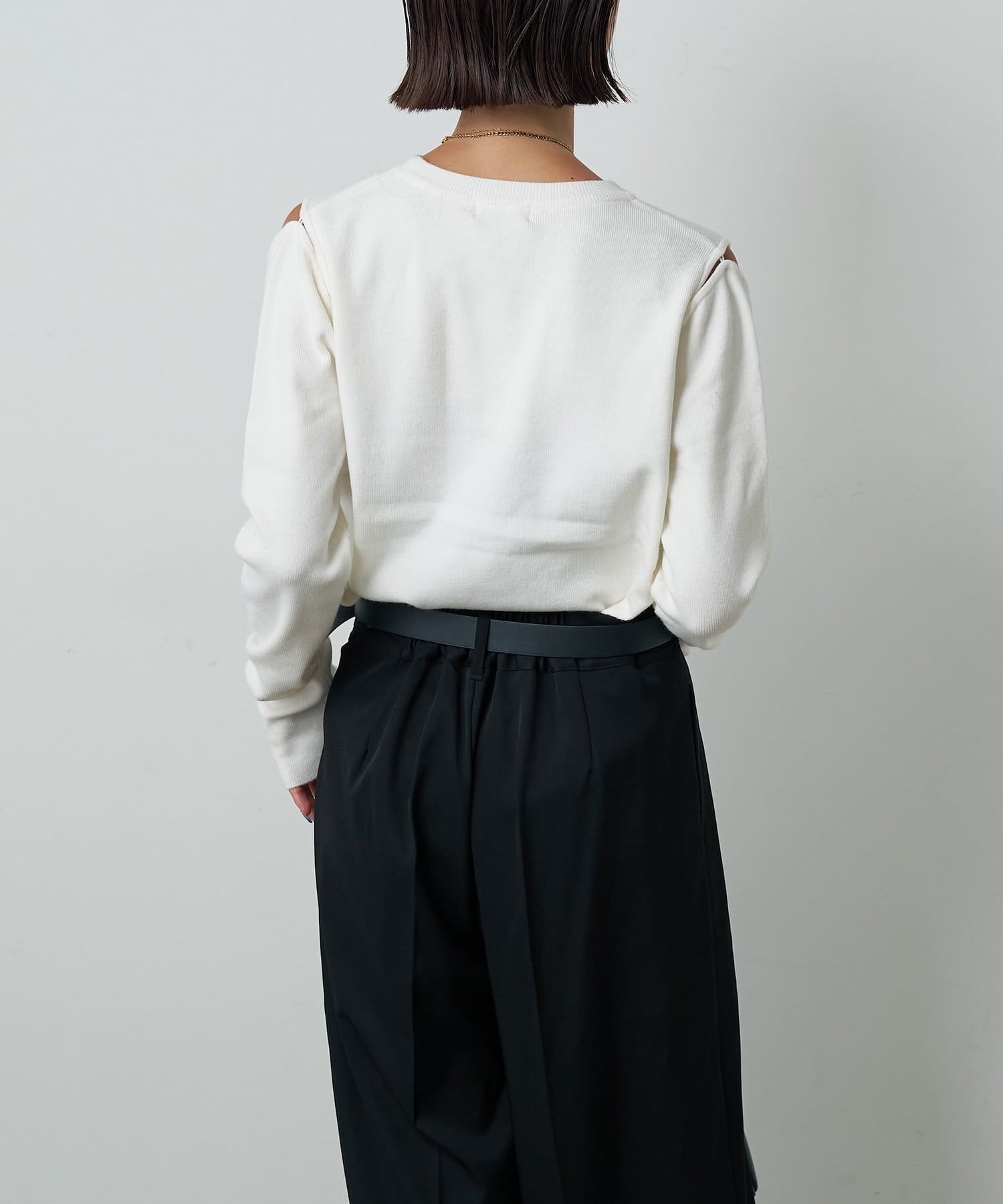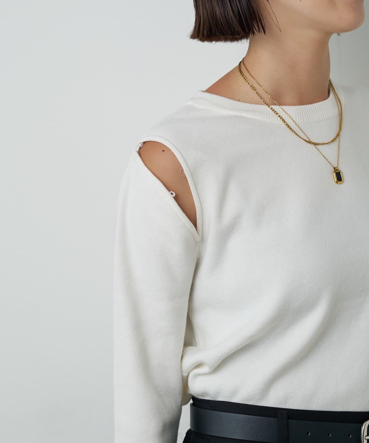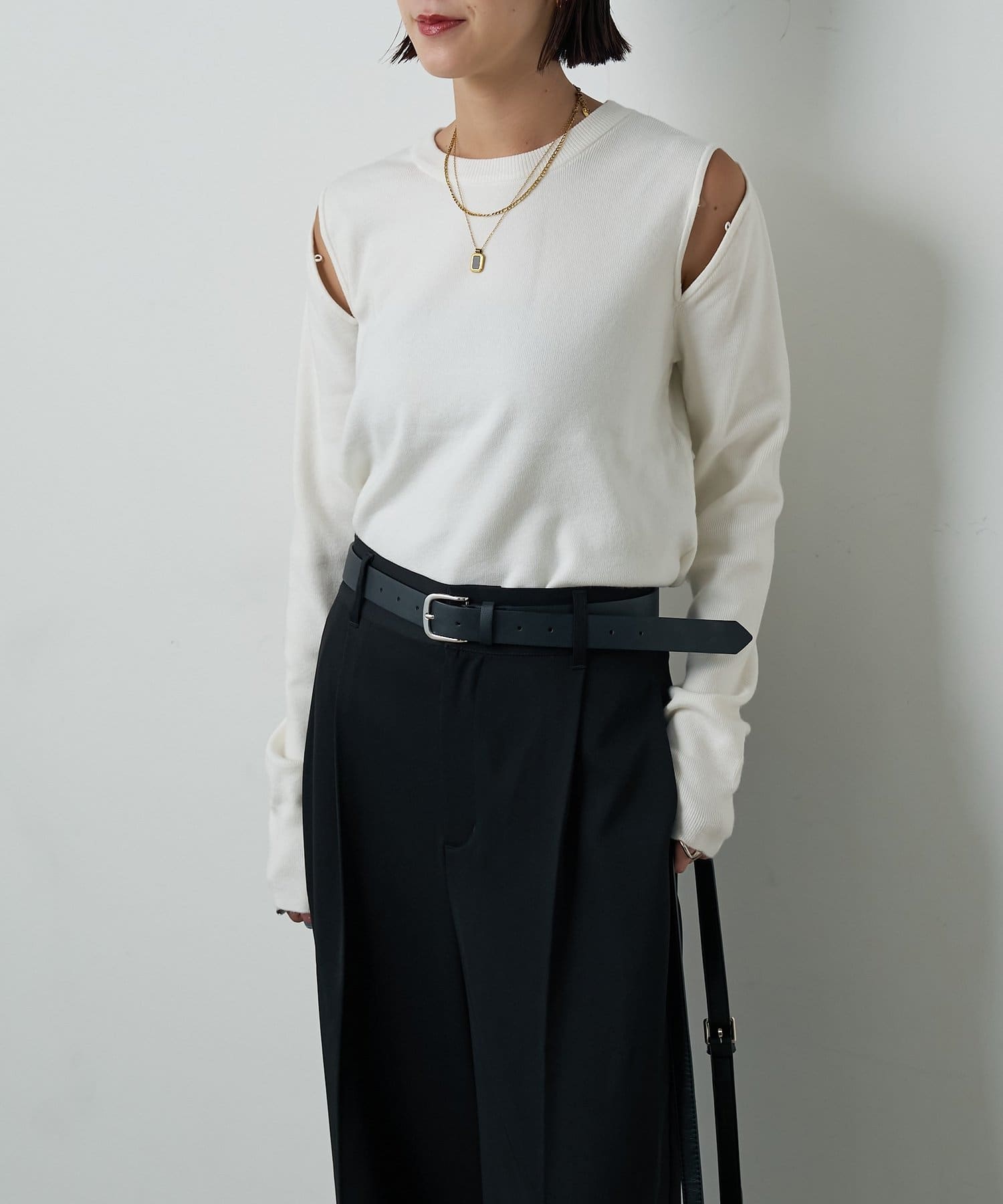 ・肩にスリットが入るデザインで、ヘルシーな肌見せが叶う