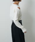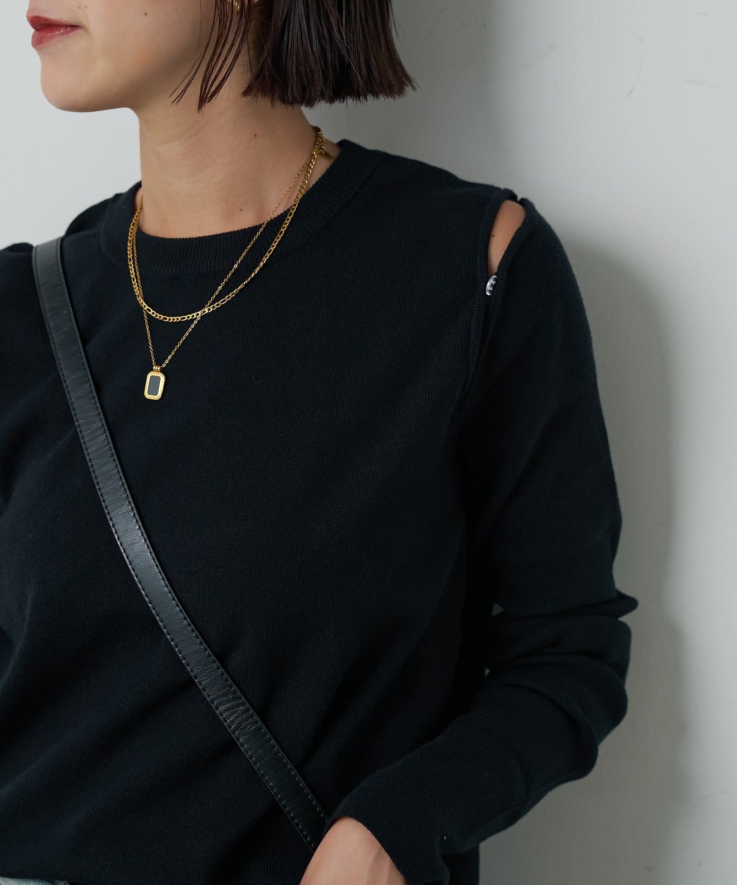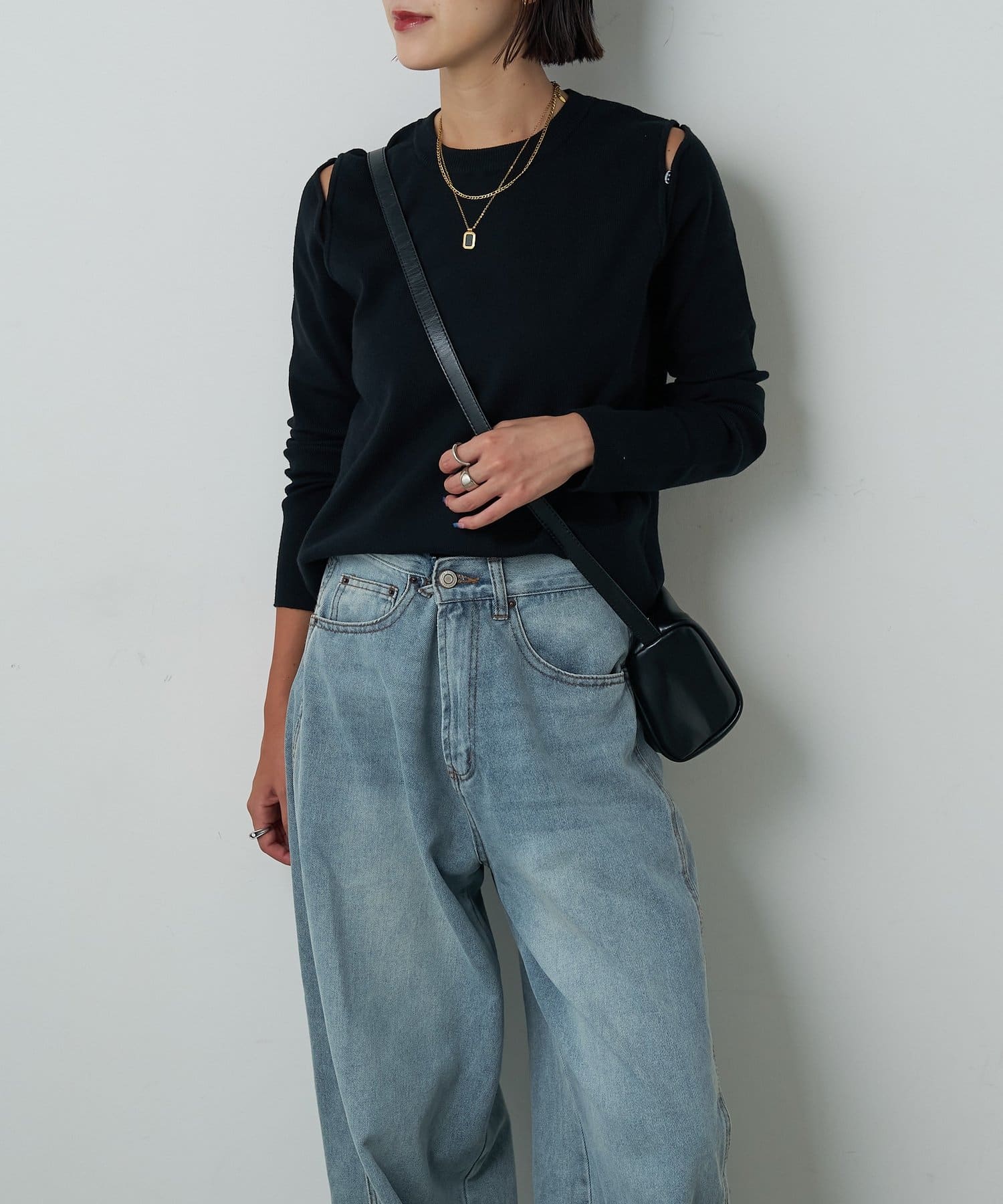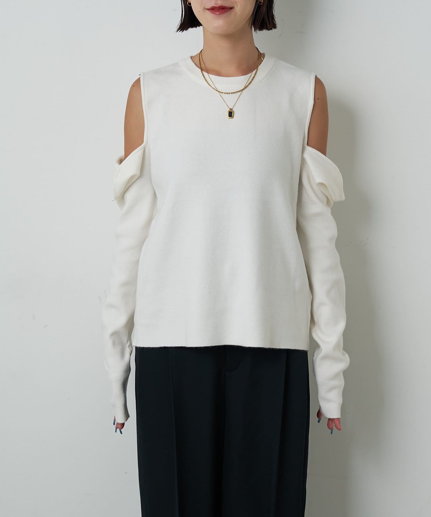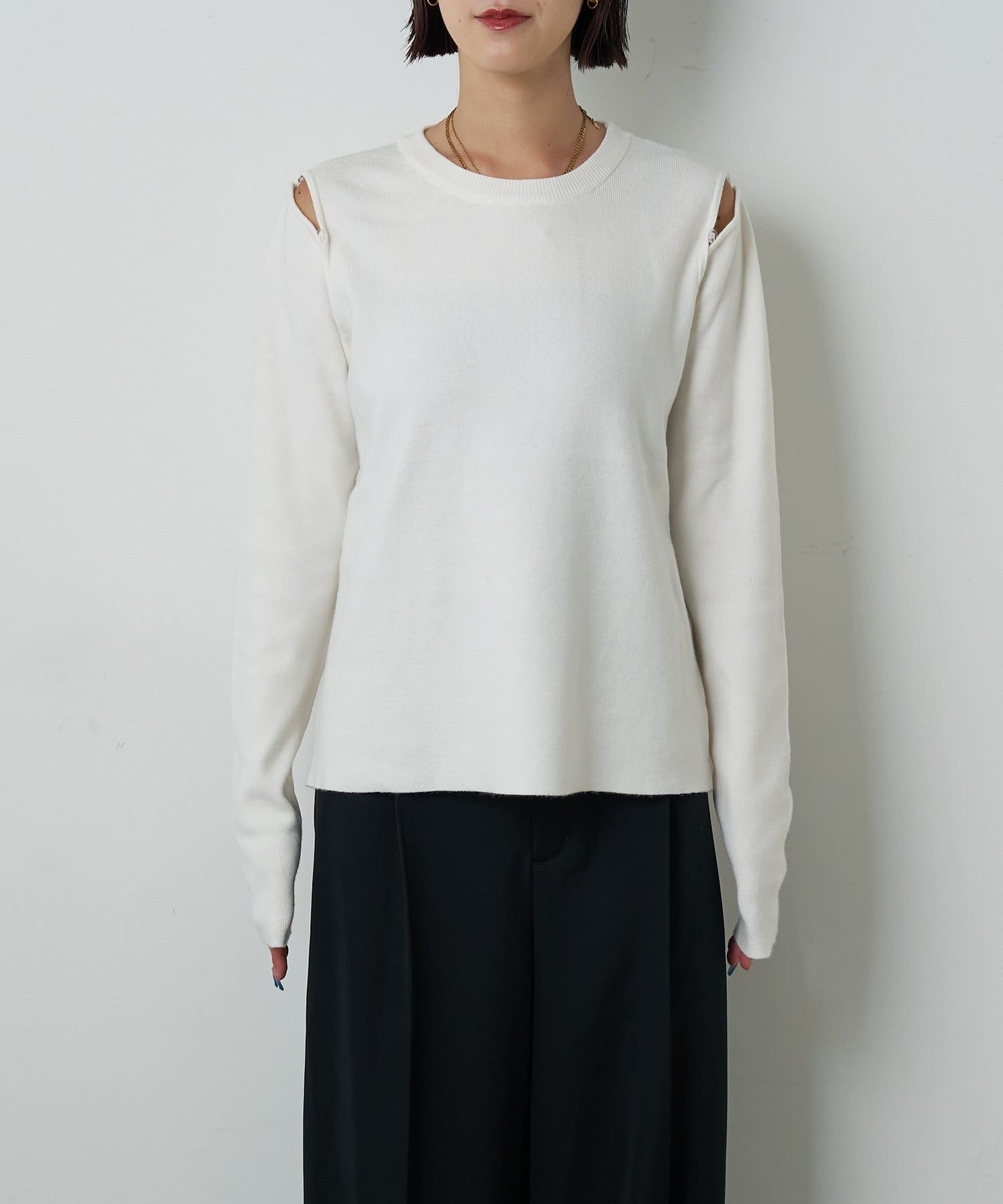 ・肩にスリットが入るデザインで、ヘルシーな肌見せが叶う