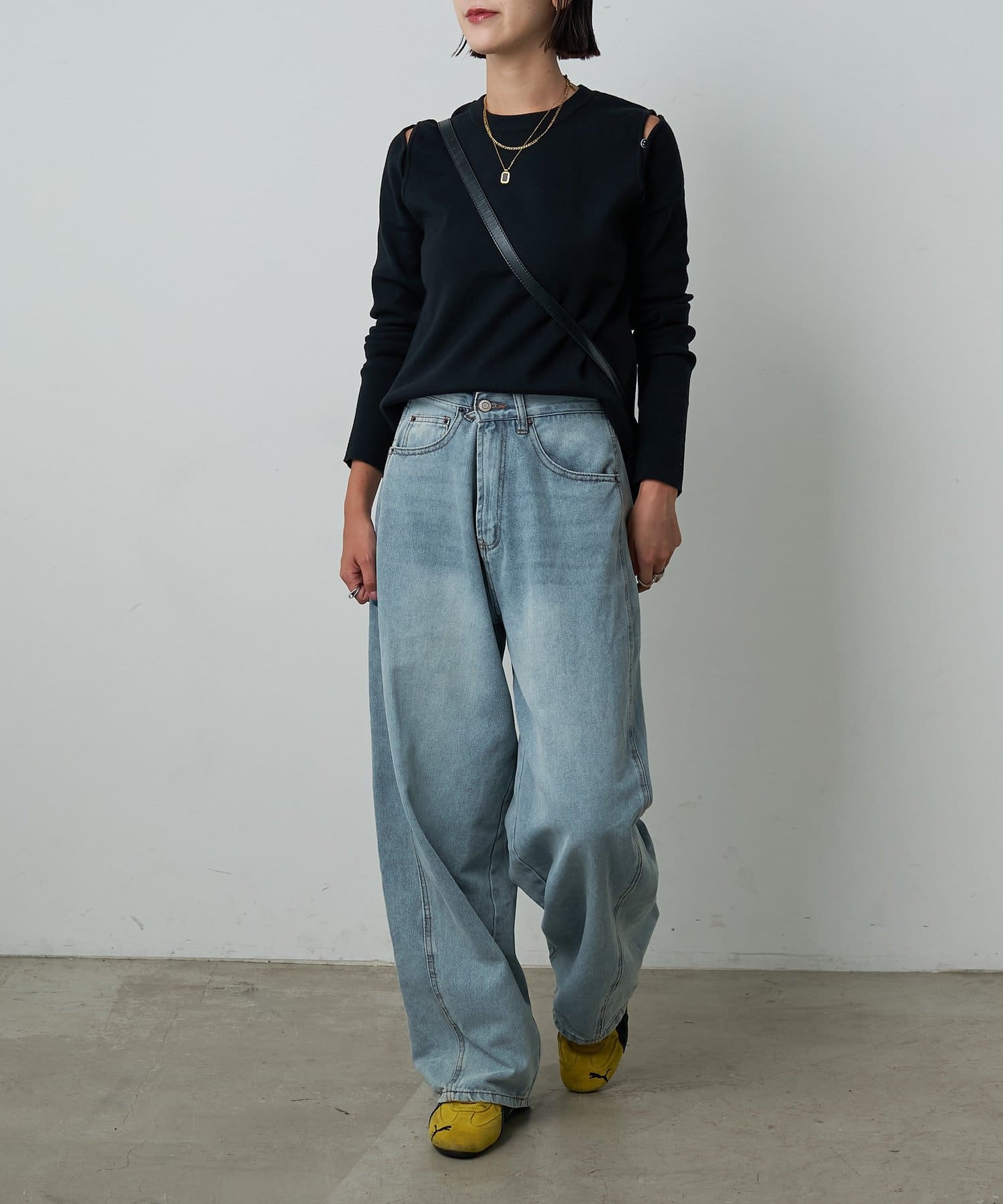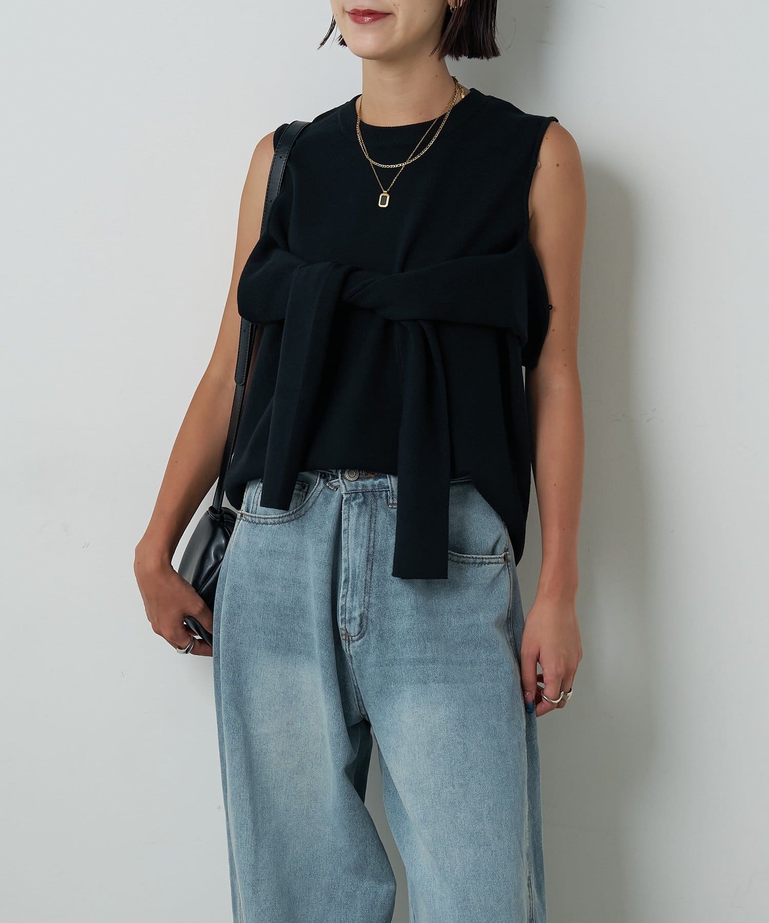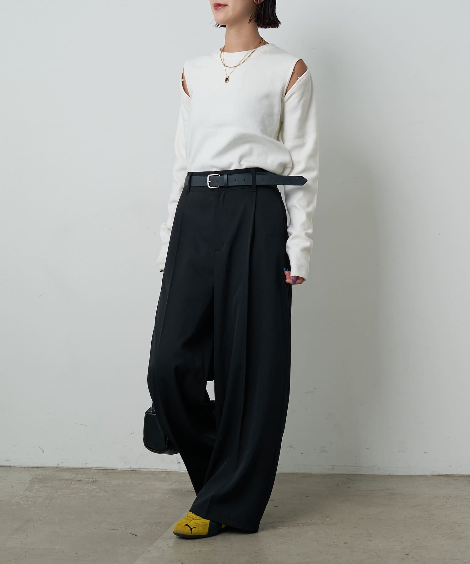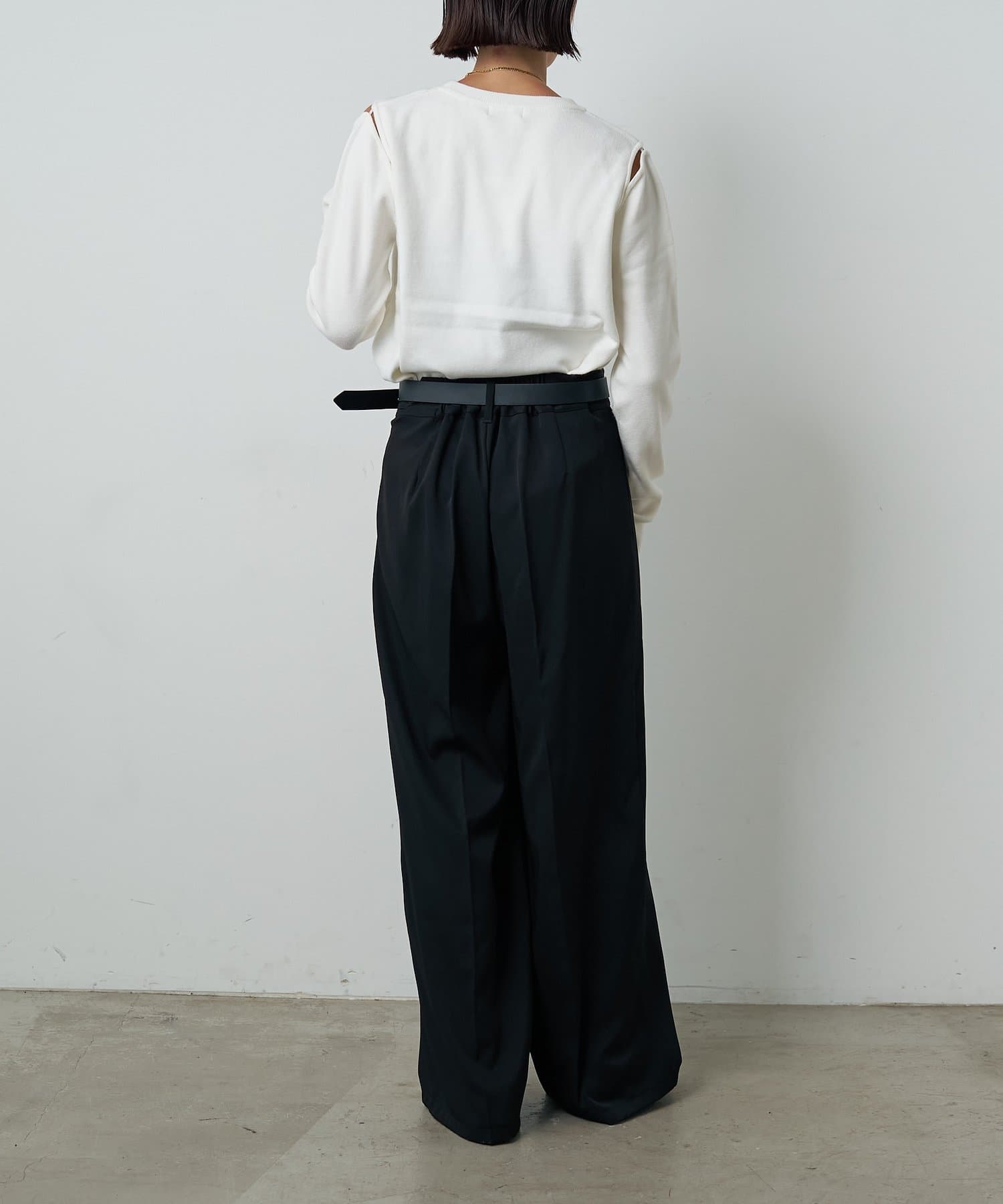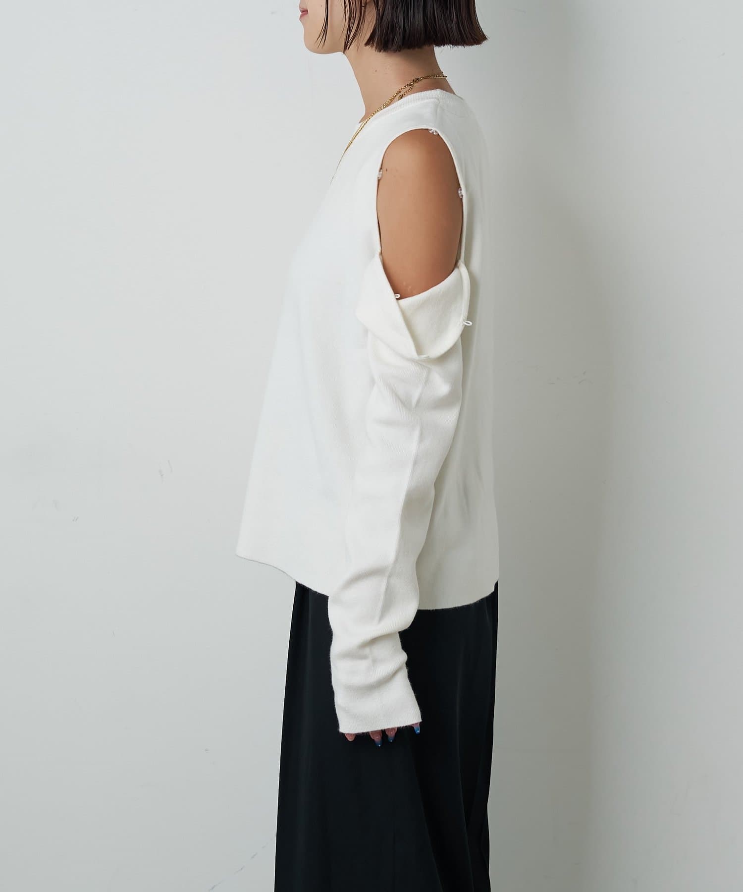 ・肩にスリットが入るデザインで、ヘルシーな肌見せが叶う