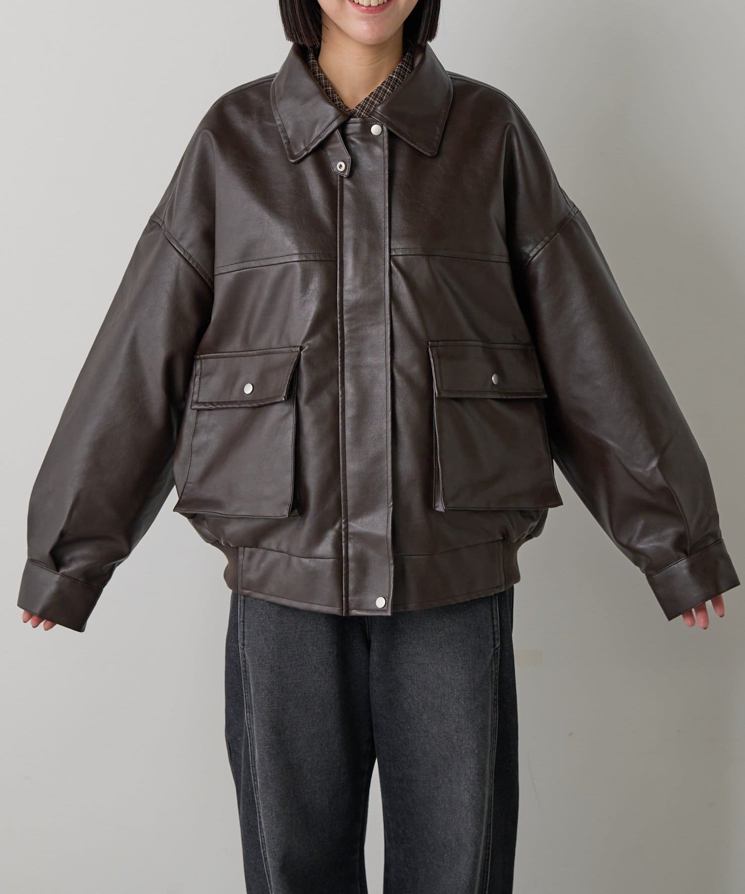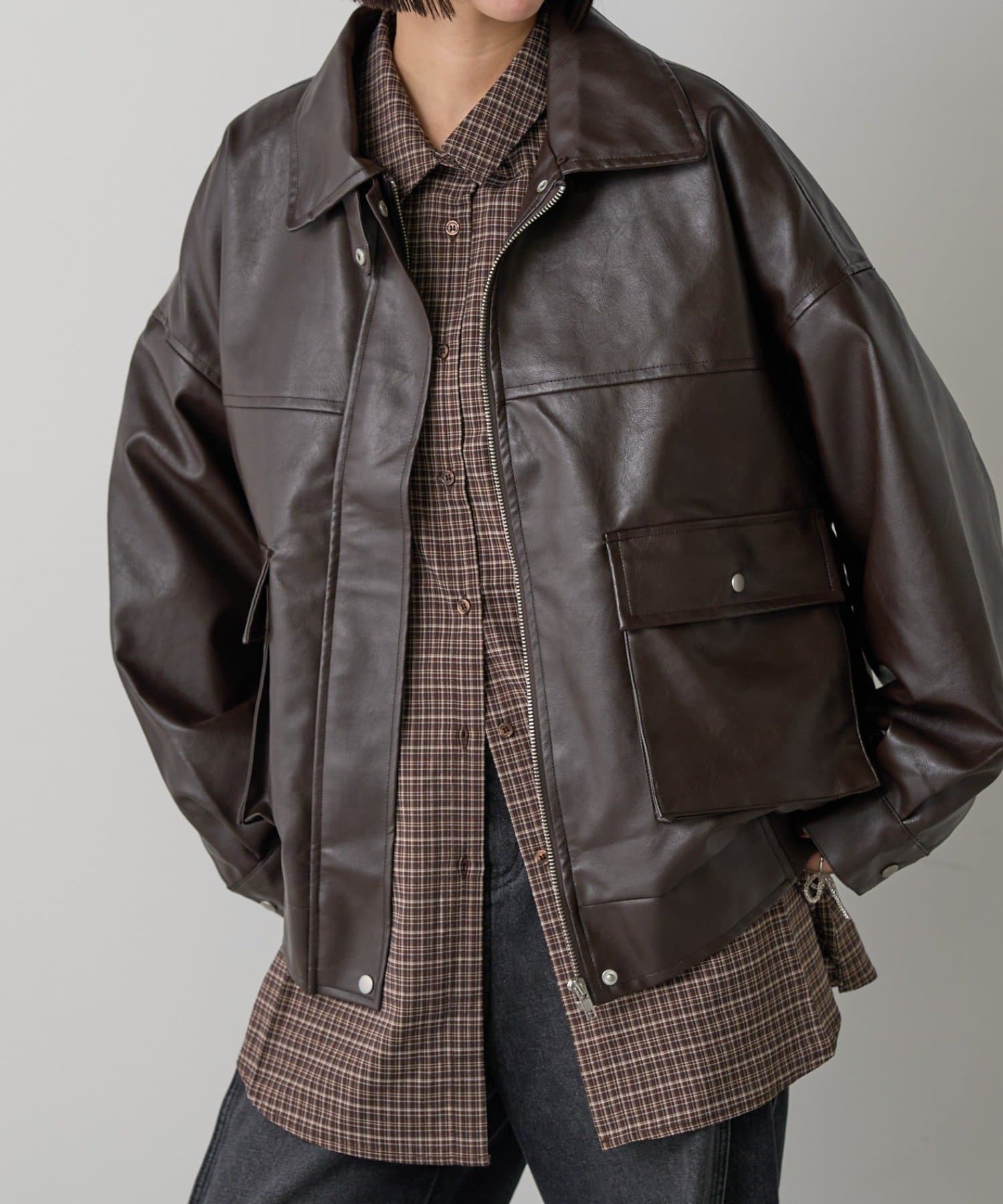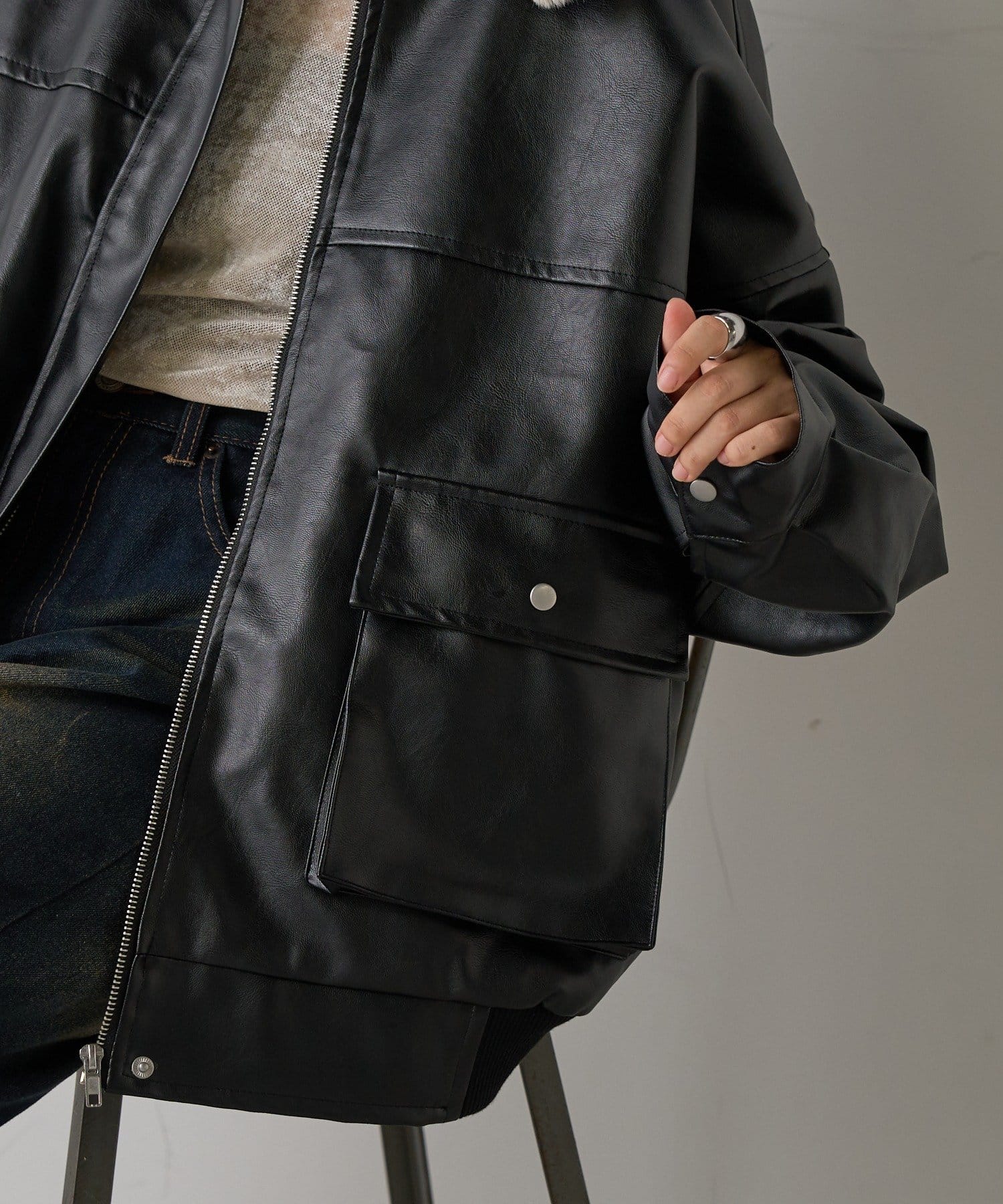 秋冬のスタイリングに映える、ティペット付き3way合皮ブルゾン
