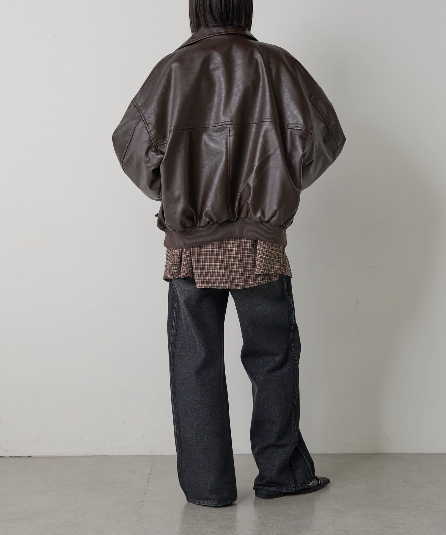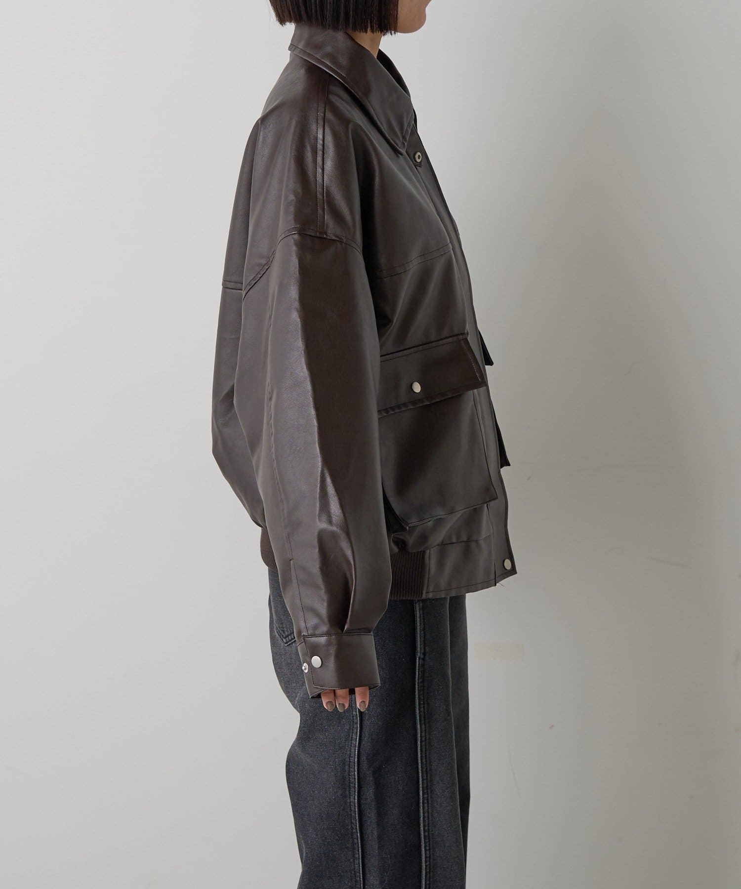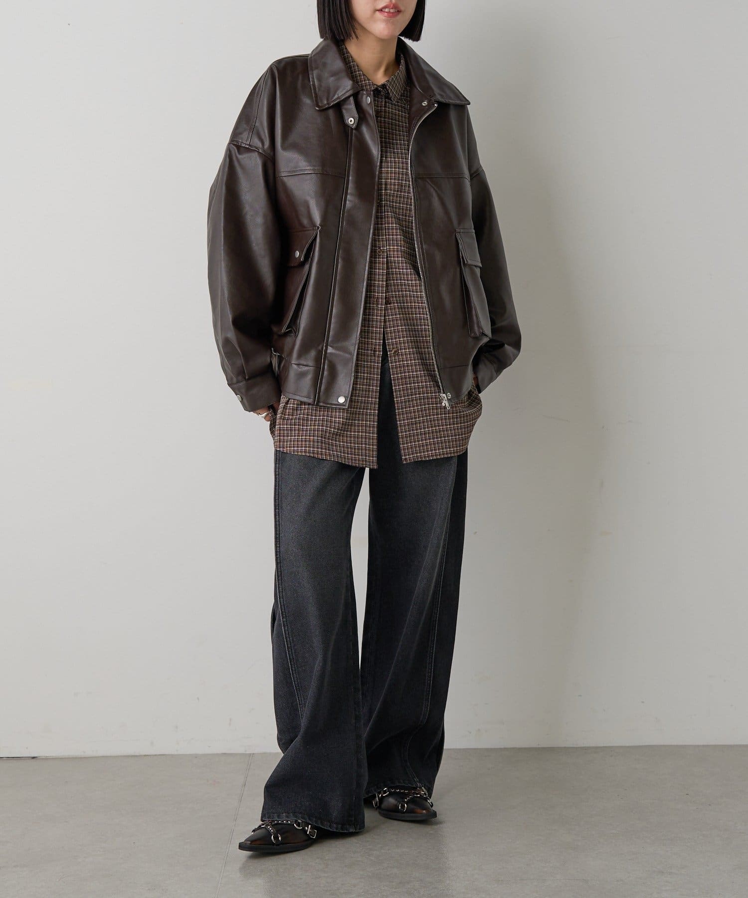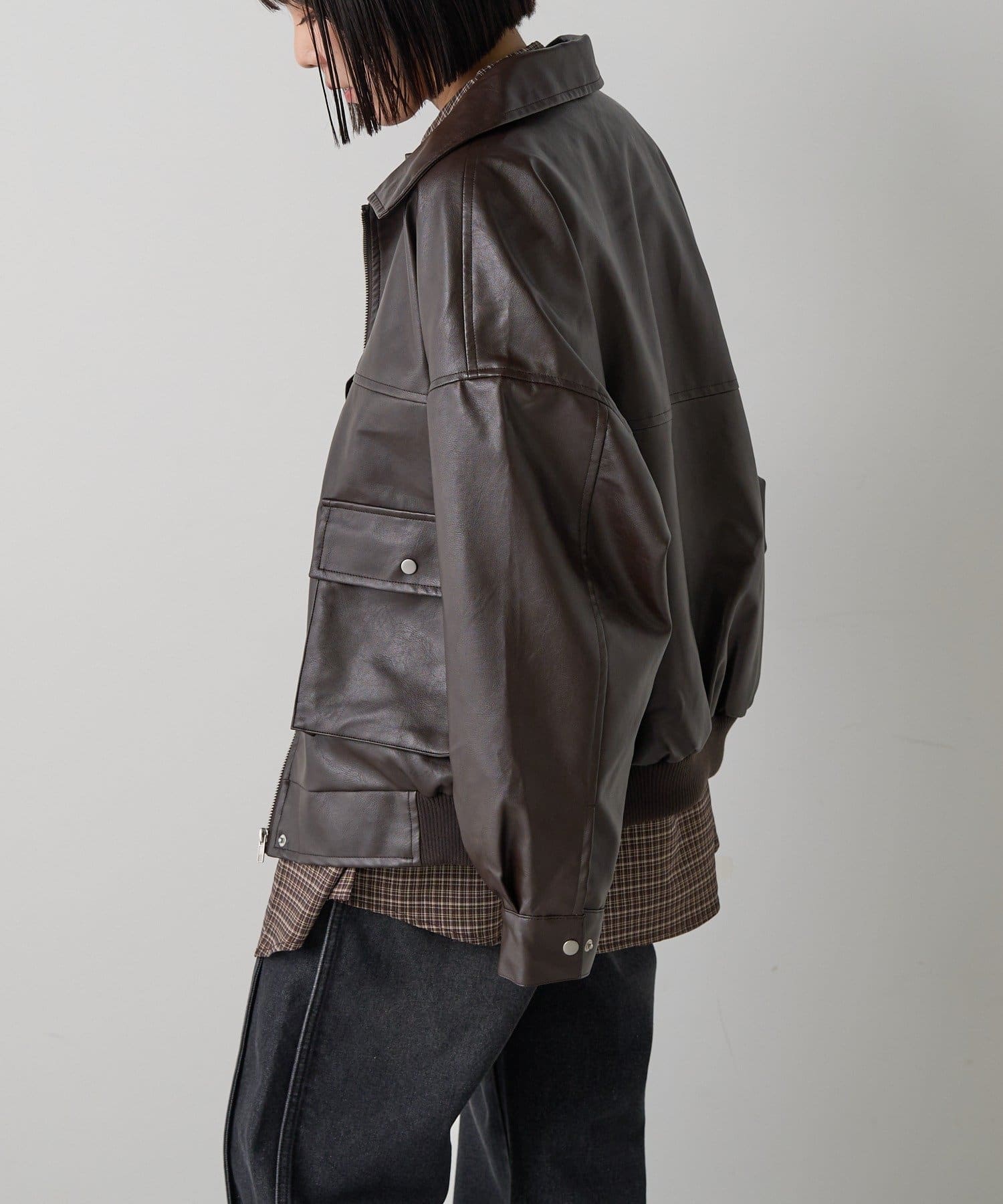 秋冬のスタイリングに映える、ティペット付き3way合皮ブルゾン