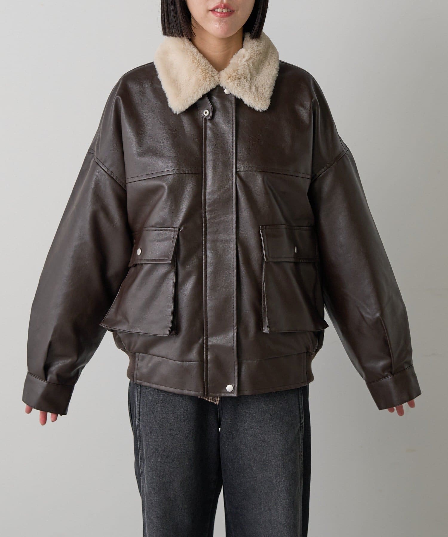 #ブルゾン #スタンドカラー #ファー付きアウター #オーバーサイズ