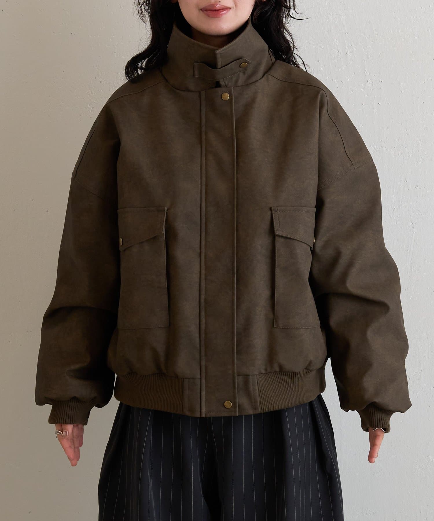 #中綿ブルゾン #中綿 #レザーブルゾン #スタンドネック