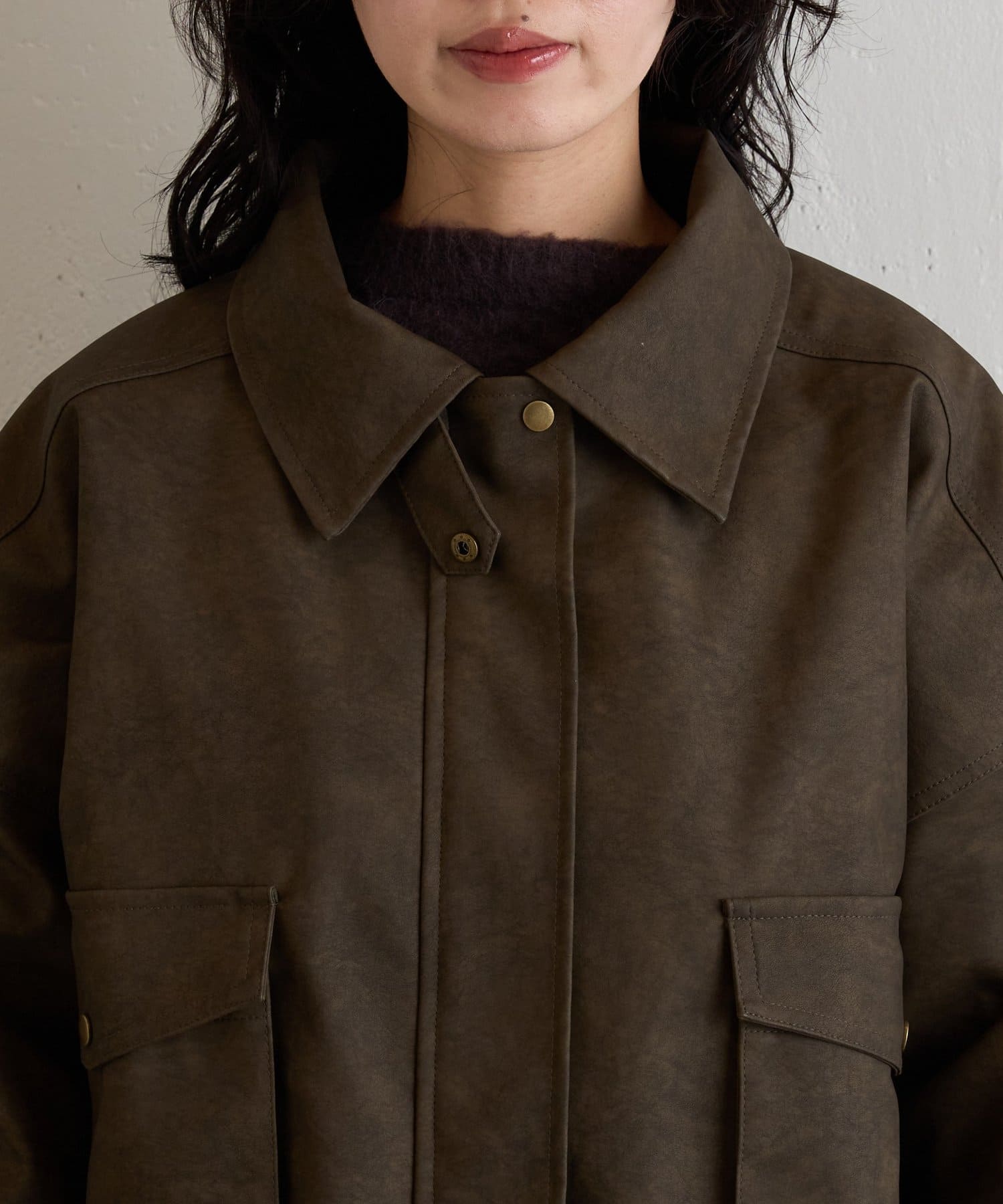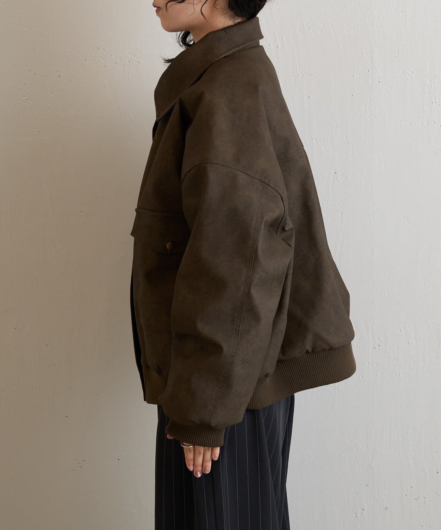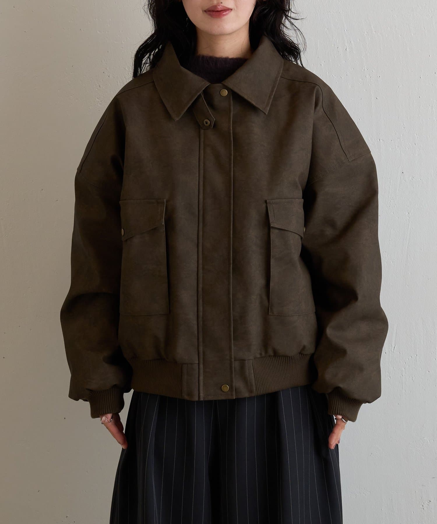 TOP > -goocy- > レディース > ジャケット/アウター > その他ジャケット/ブルゾン > 2WAYカラー中綿合皮ブルゾン