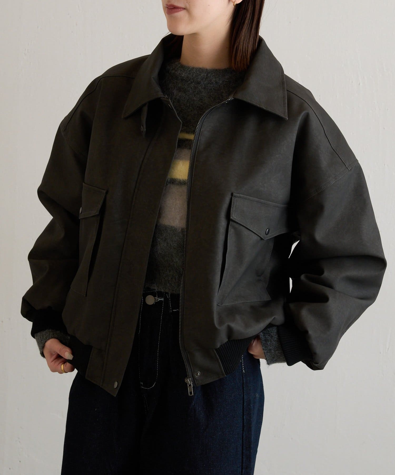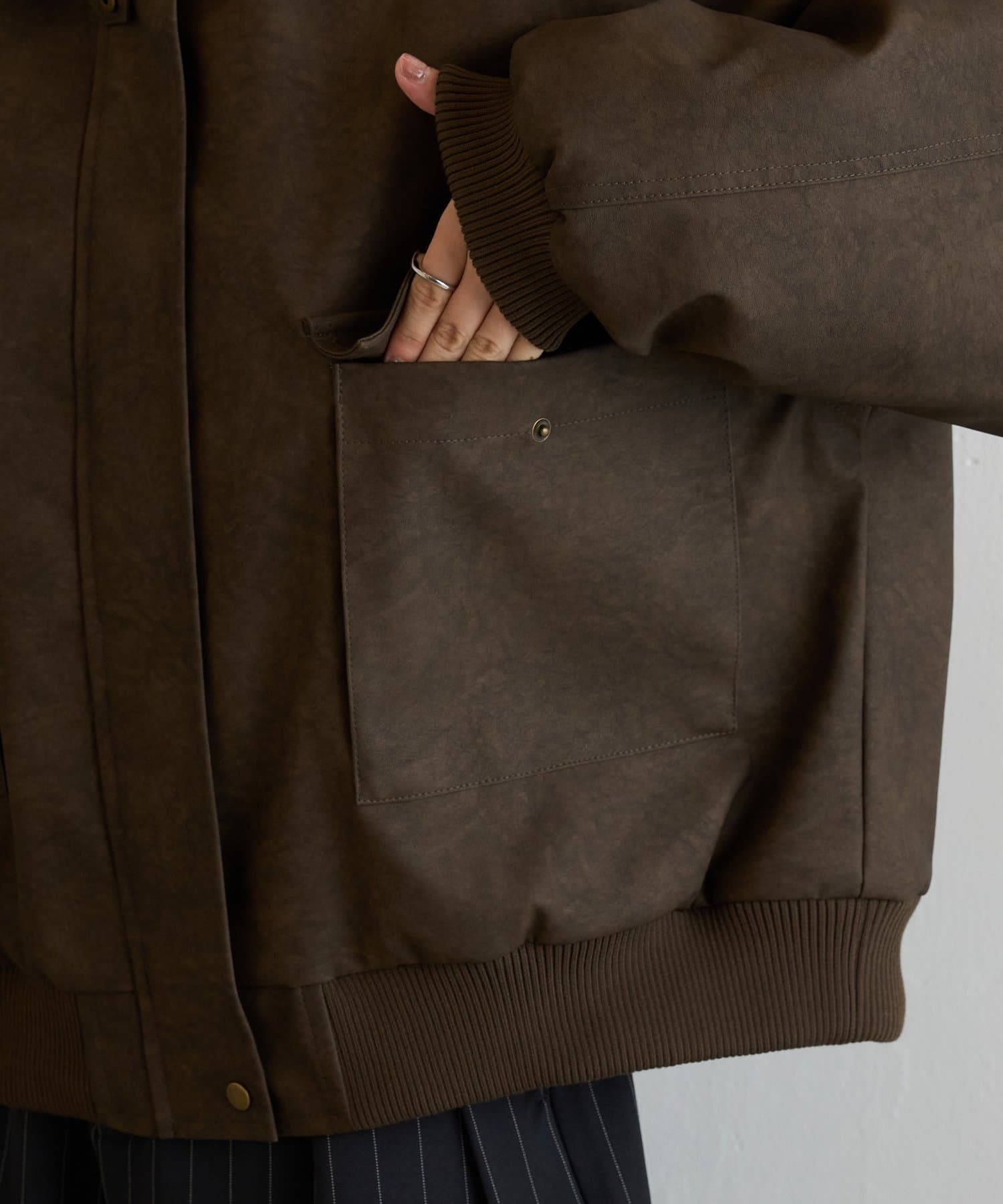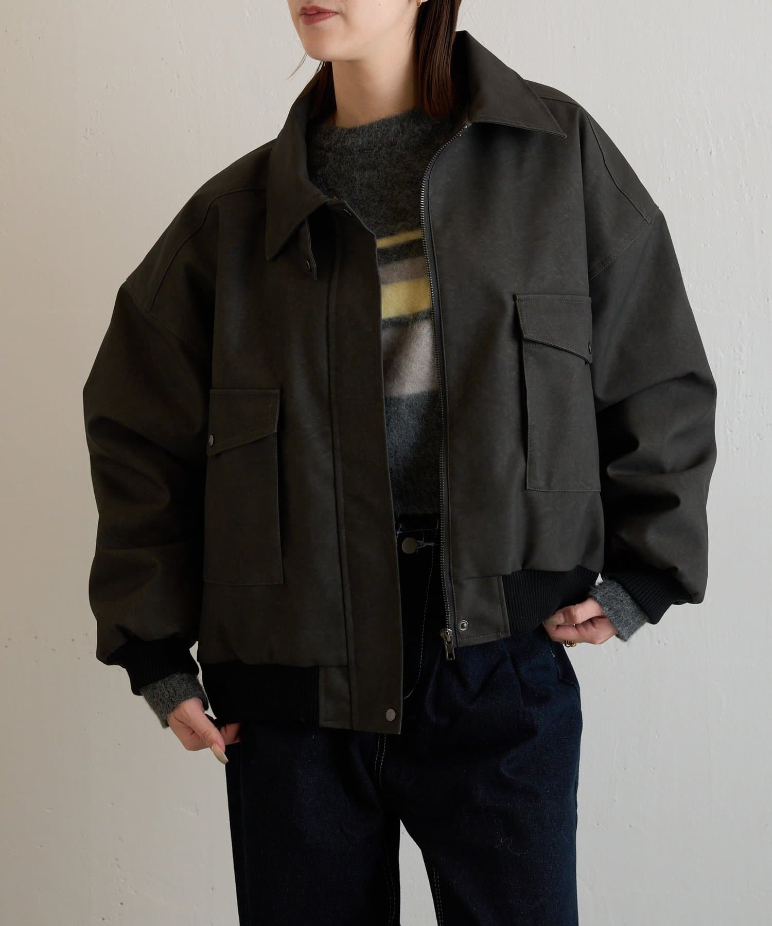 • -goocy-(グーシー) 2WAYカラー中綿合皮ブルゾン