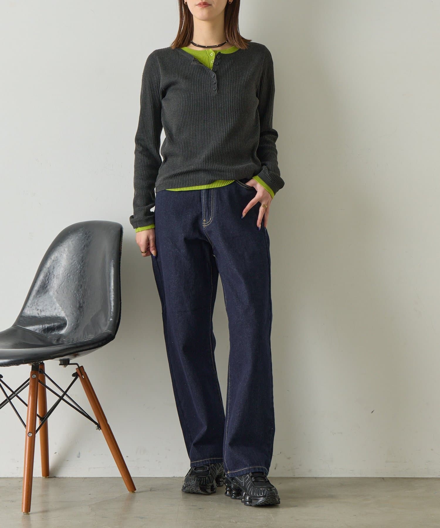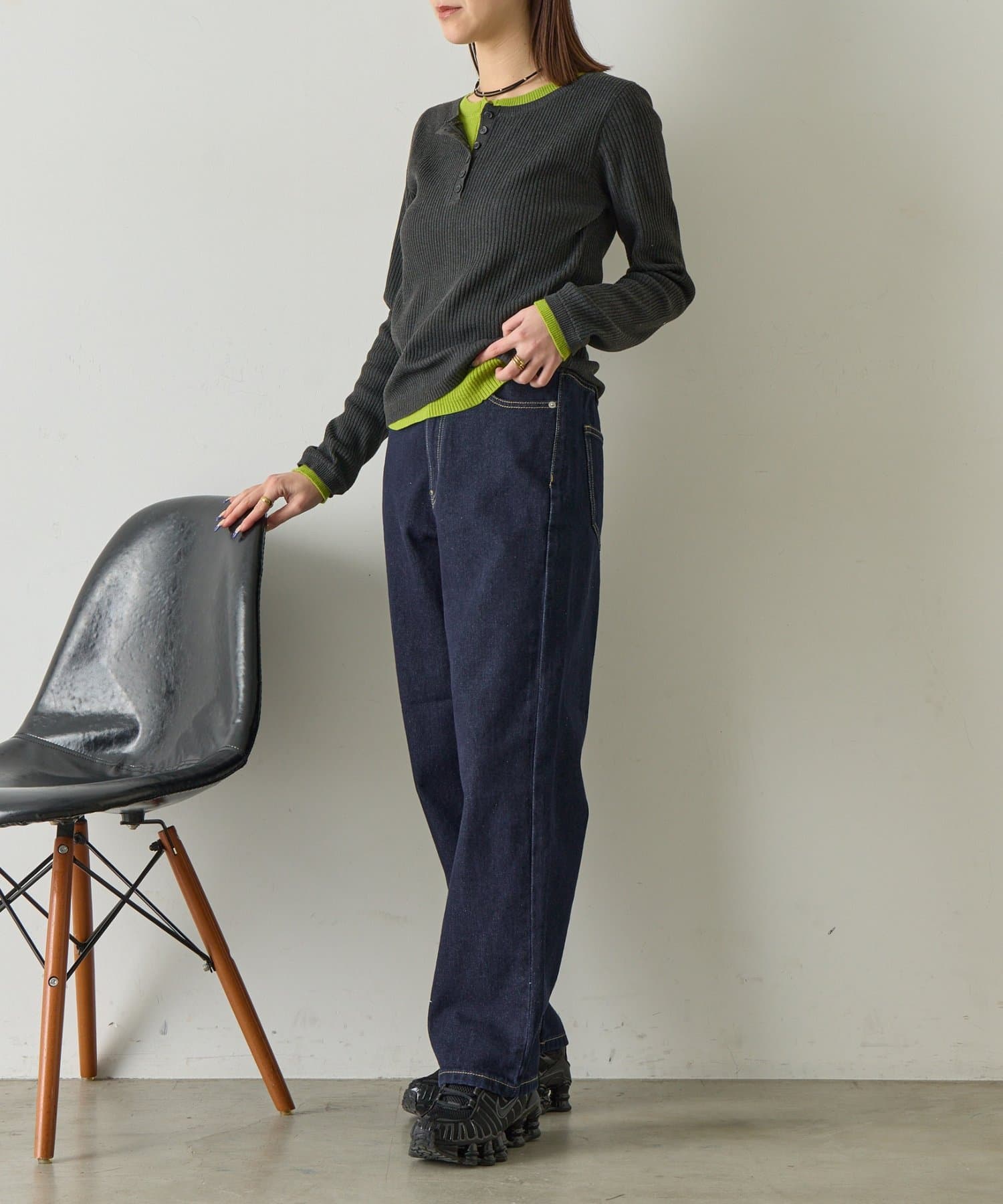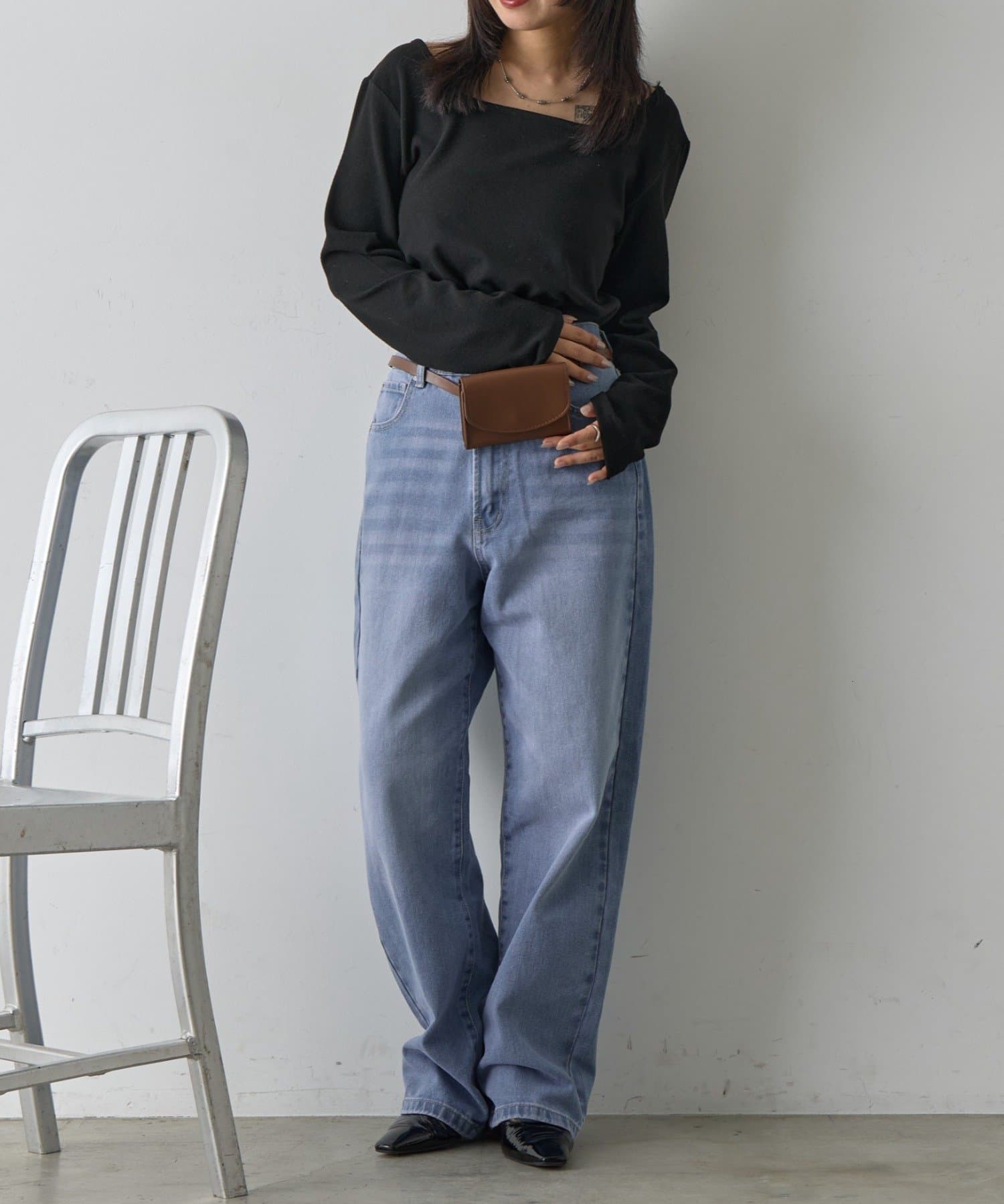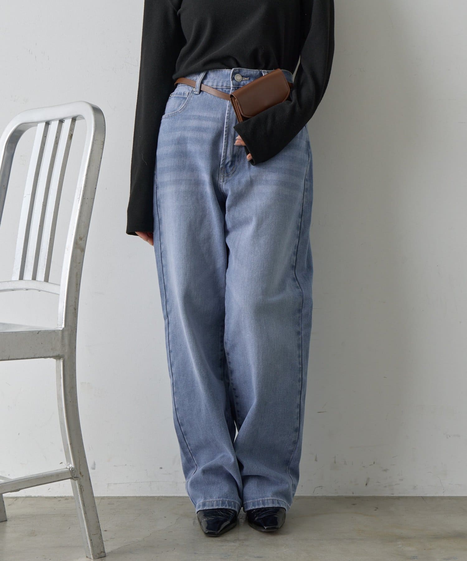 ・シンプルな定番のシルエットのデニムなので、トップスは選ばず着用可能