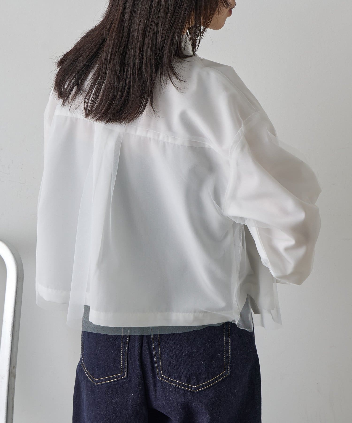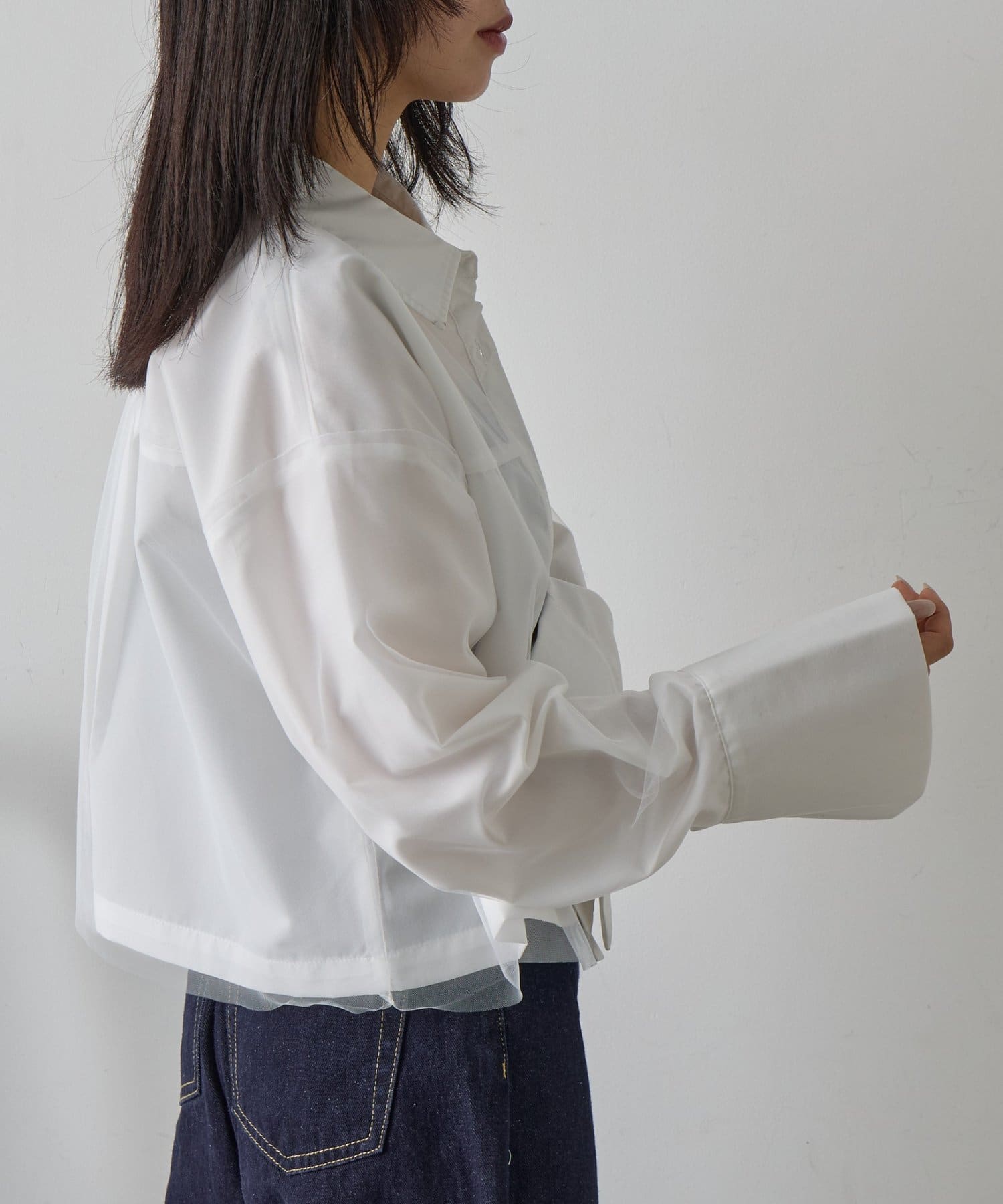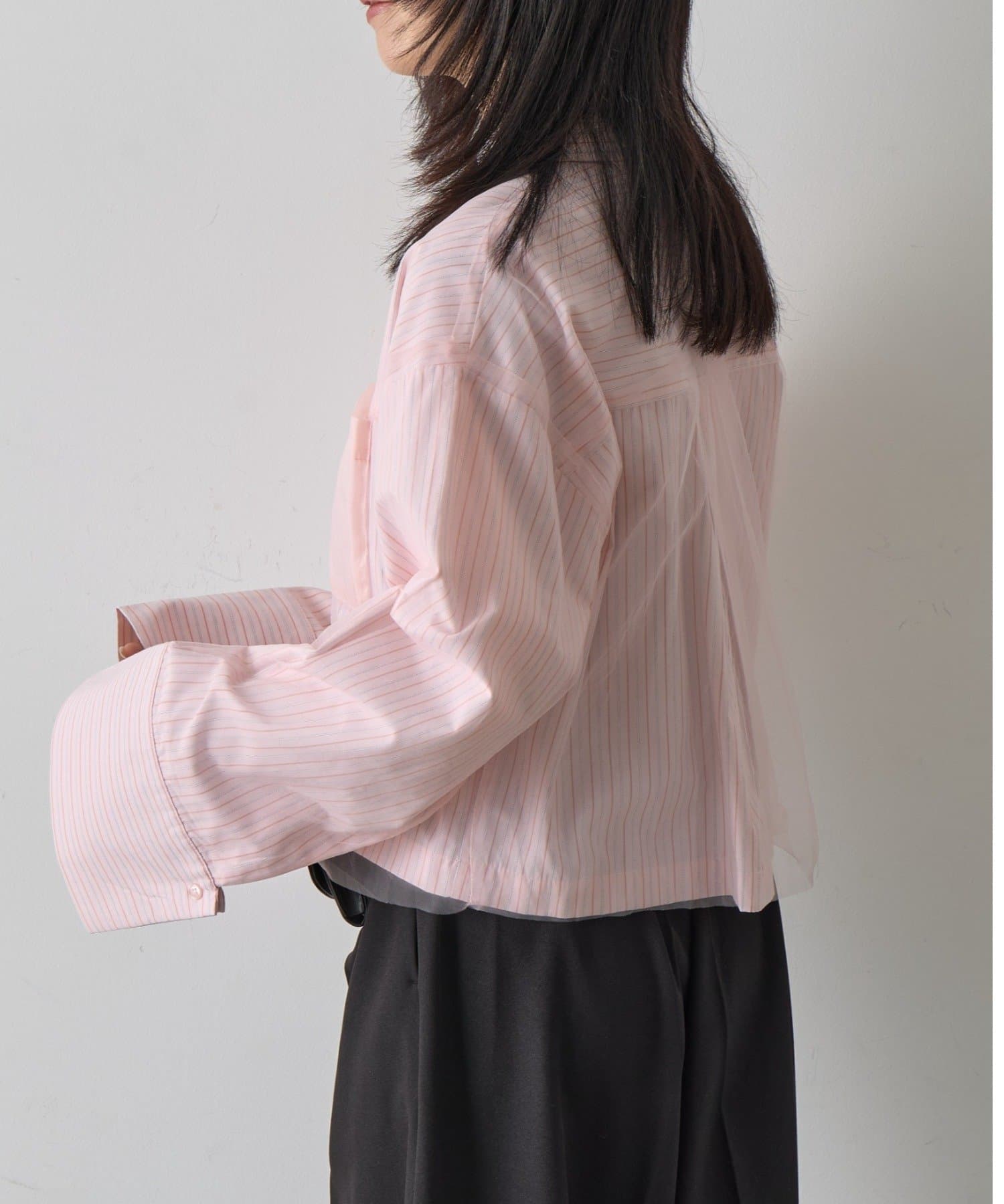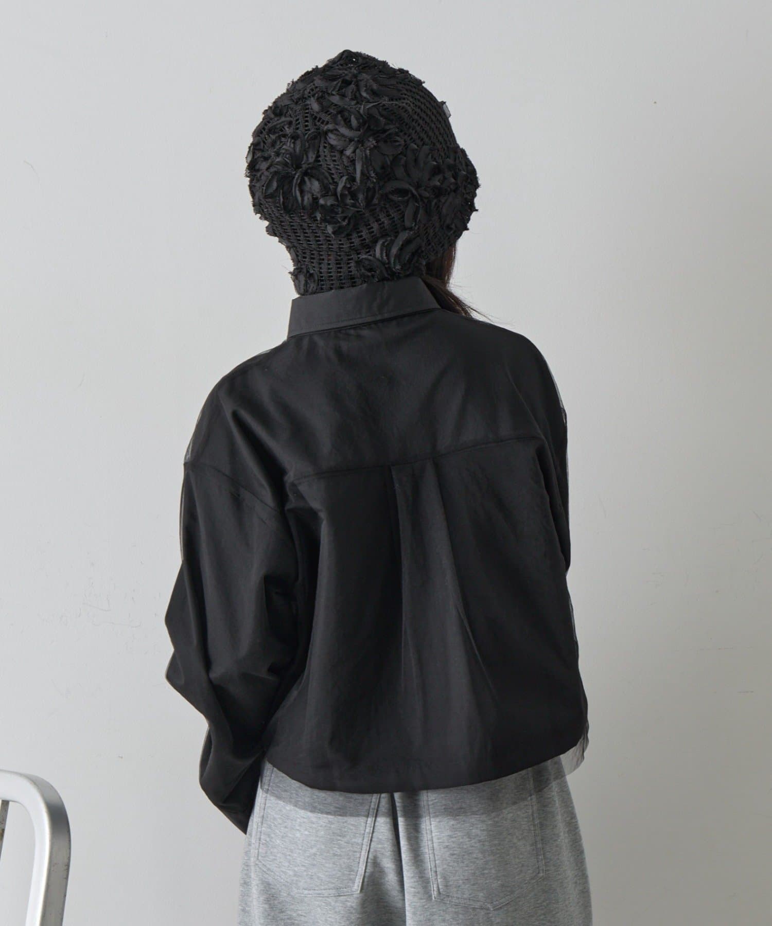 #チュール被せ #シャツ #ショート丈 #クロップド丈 #チュール被せシャツ #チュールシャツ