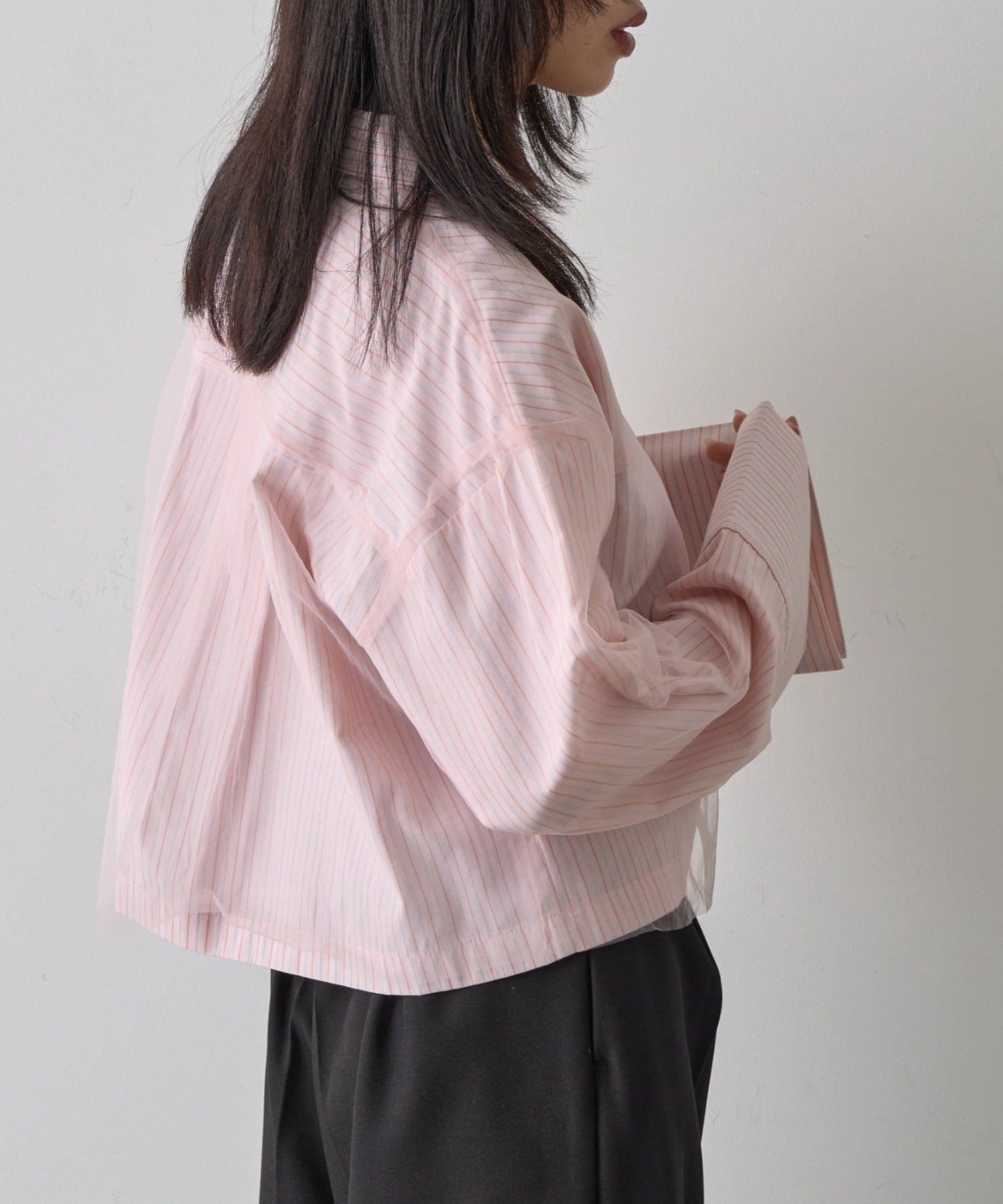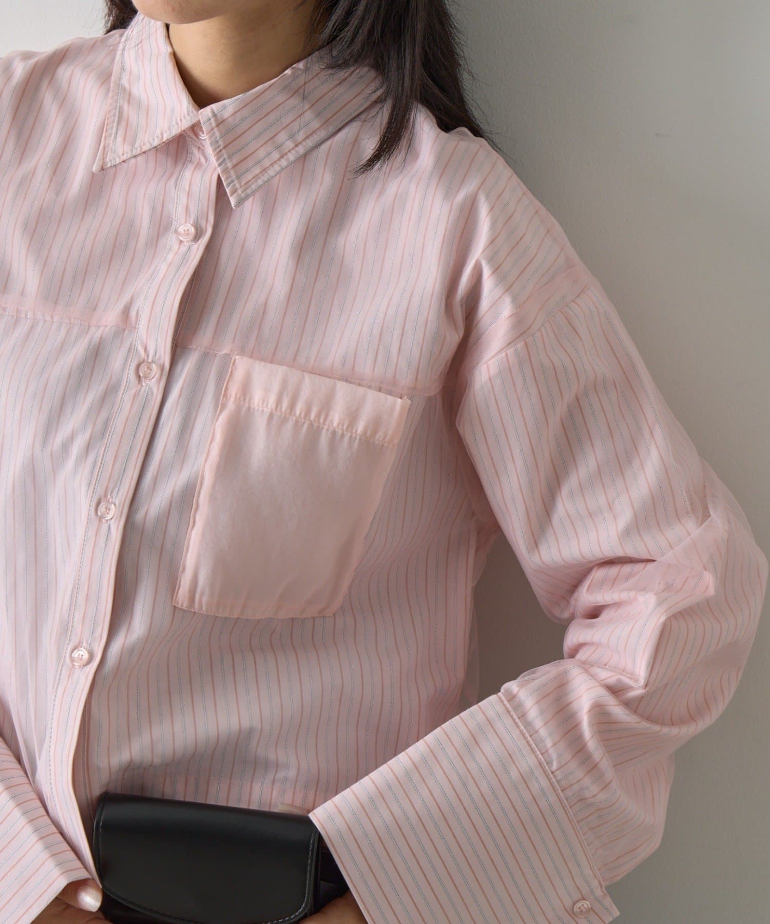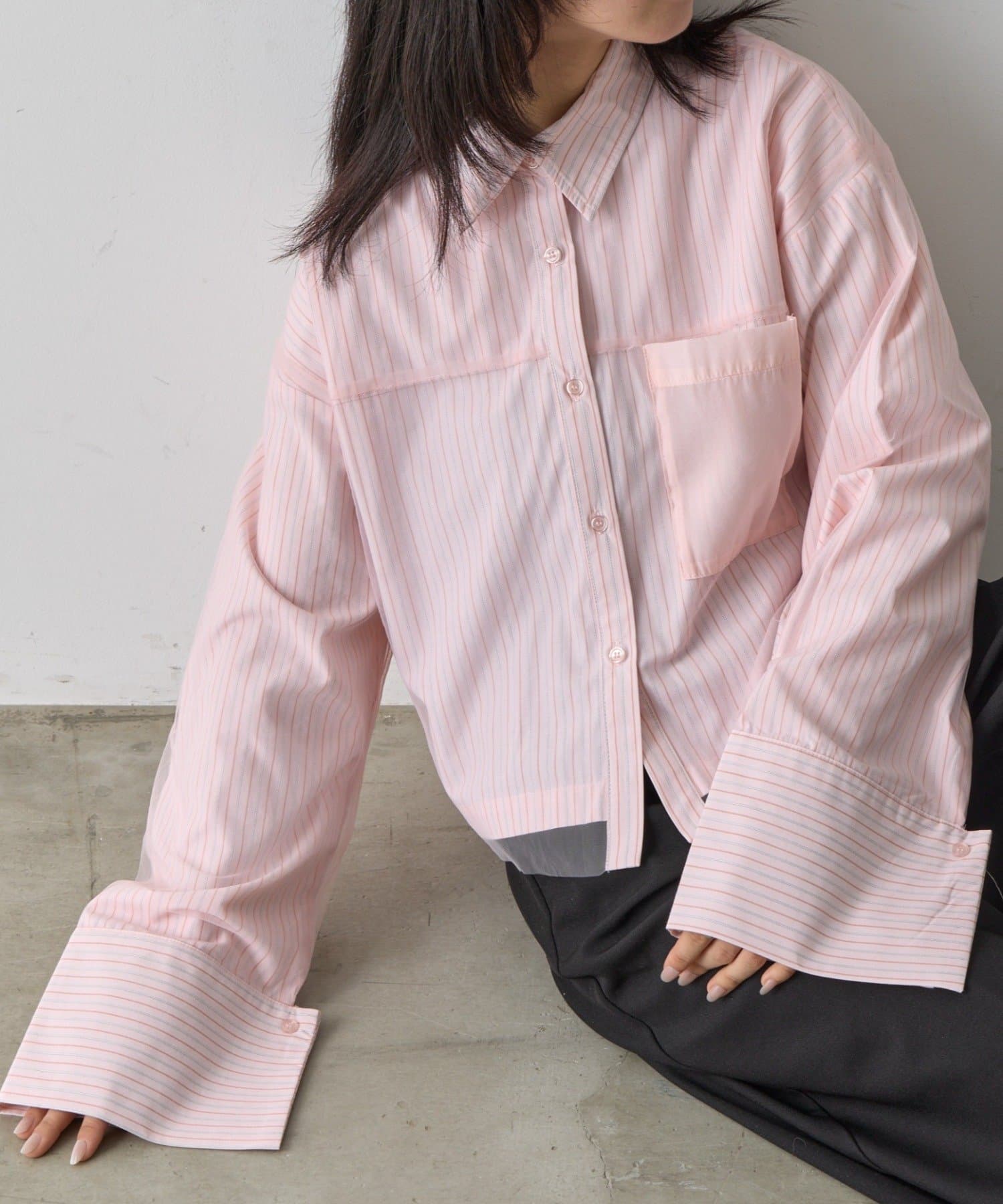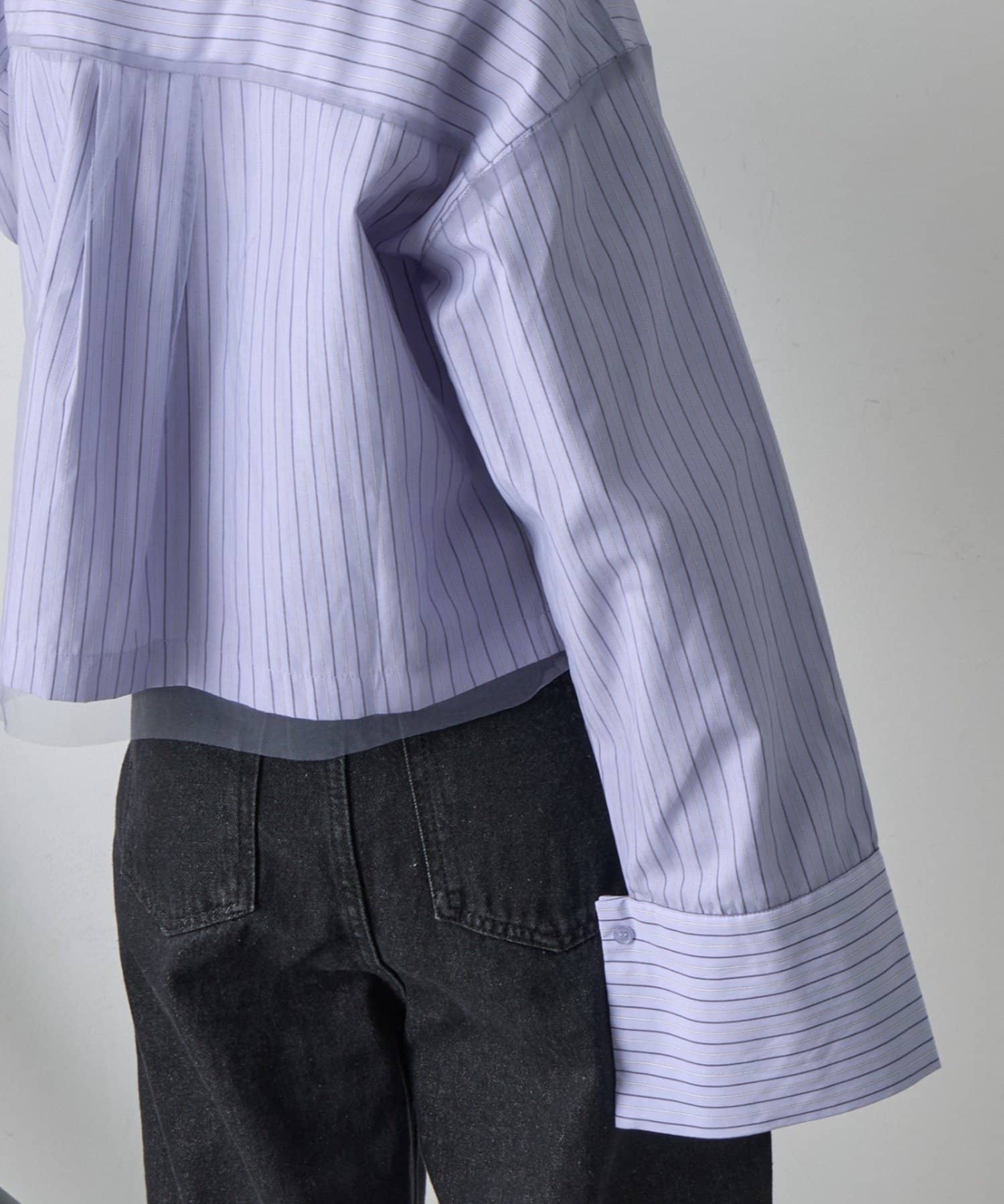 #チュール被せ #シャツ #ショート丈 #クロップド丈 #チュール被せシャツ #チュールシャツ