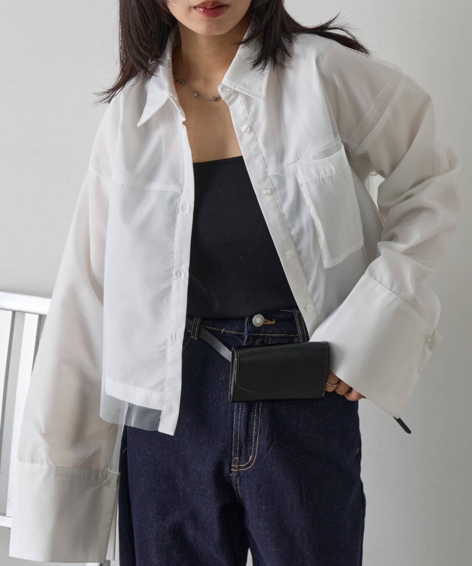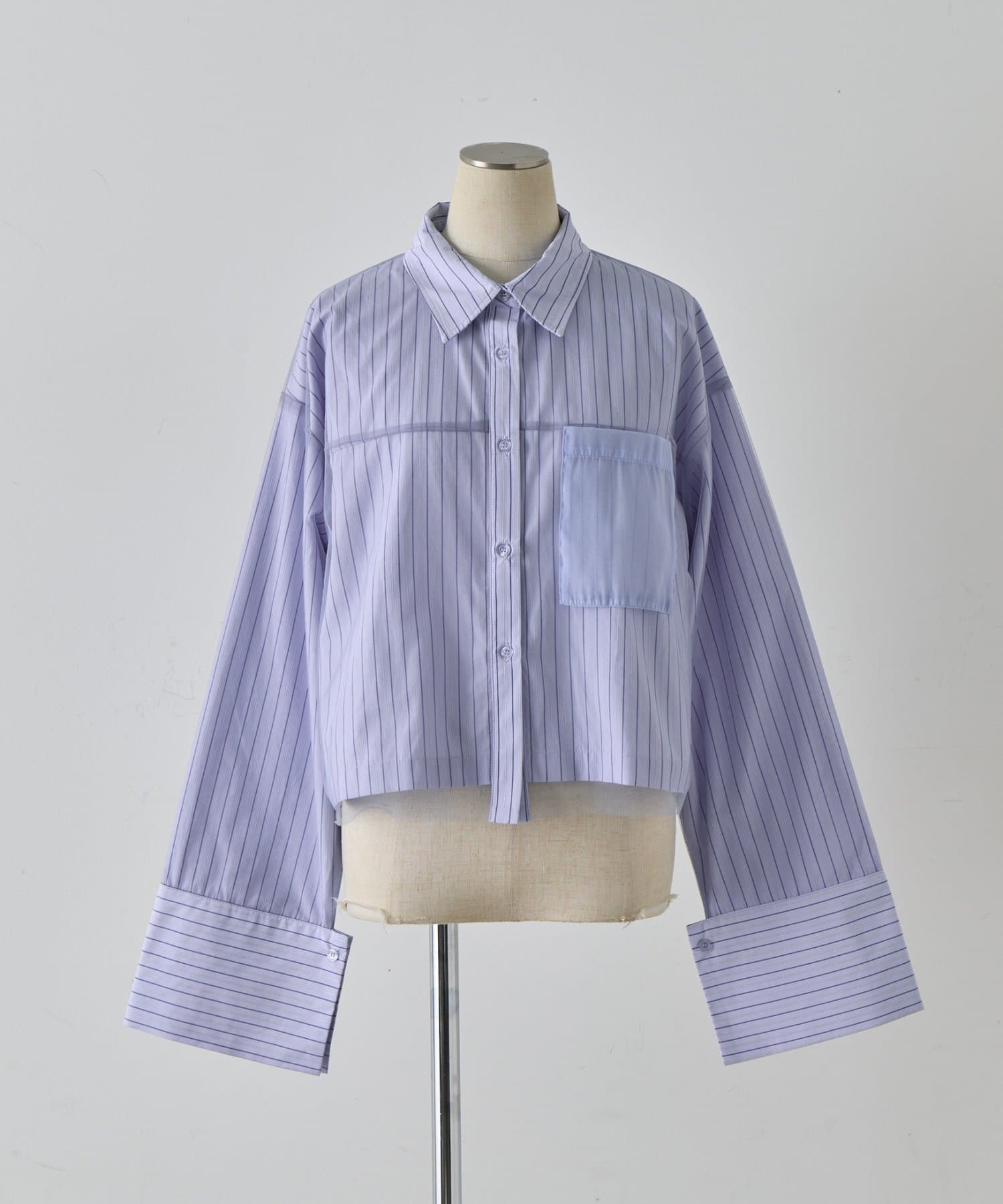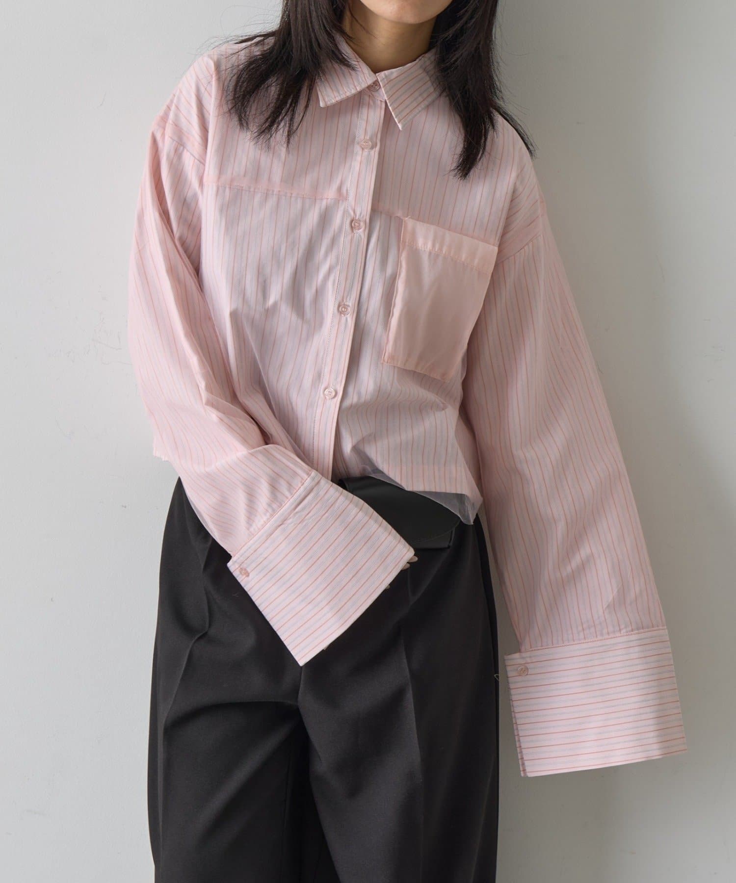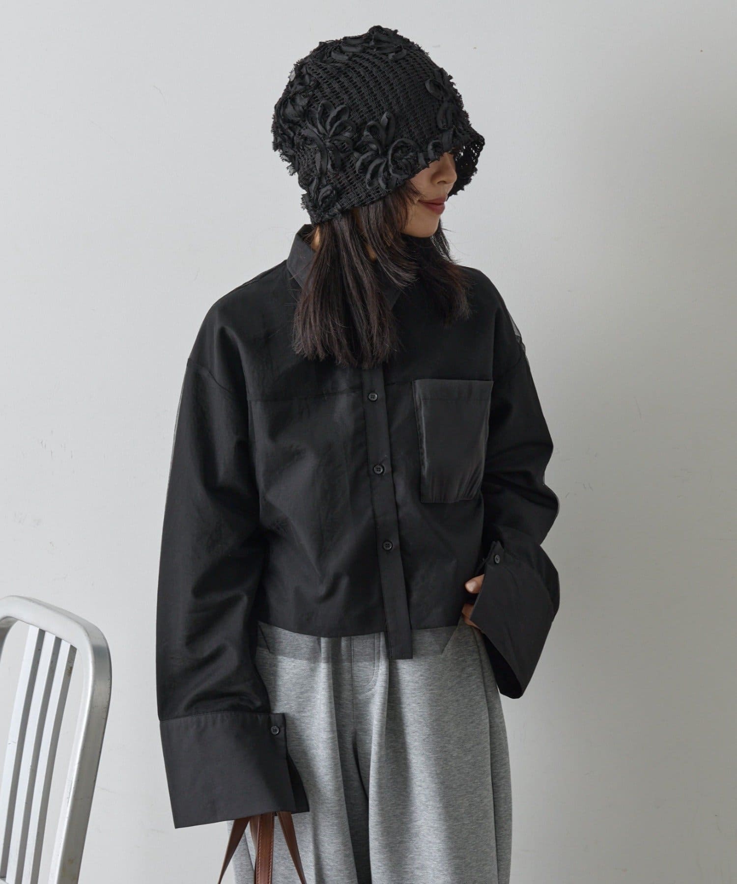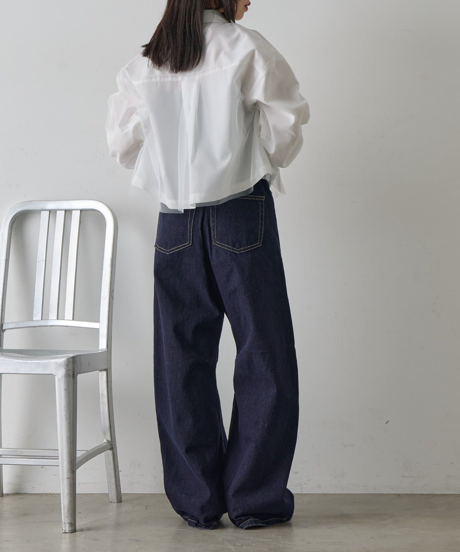 #チュール被せ #シャツ #ショート丈 #クロップド丈 #チュール被せシャツ #チュールシャツ