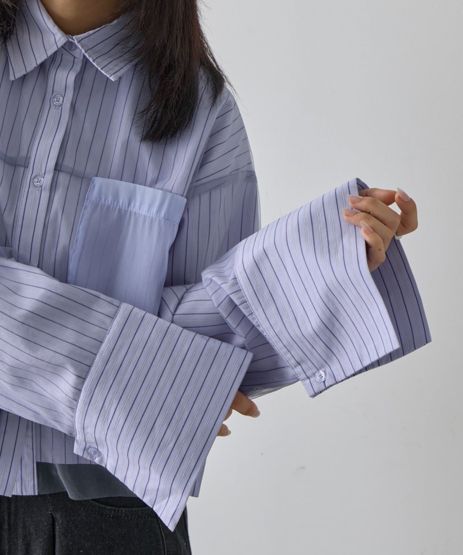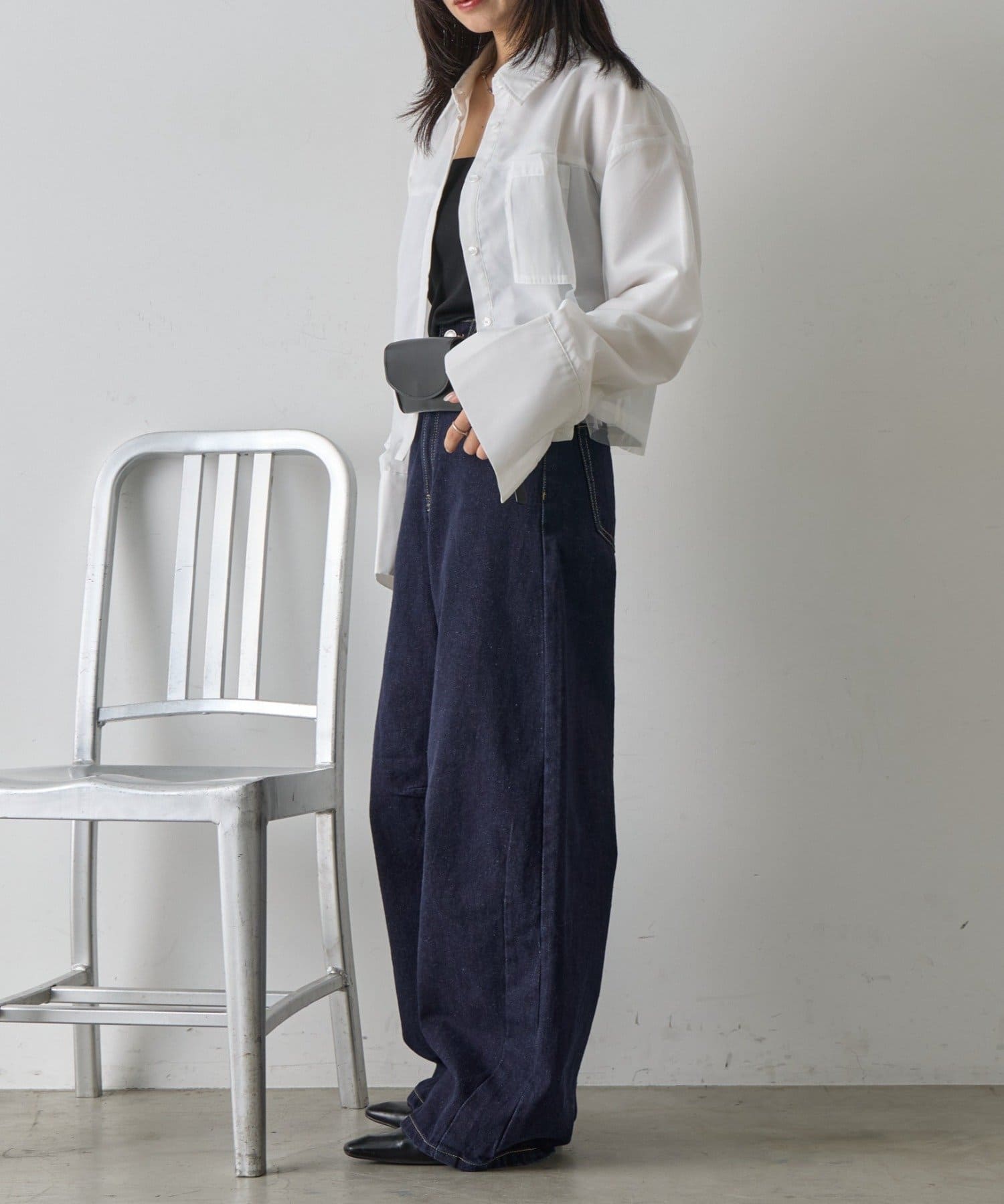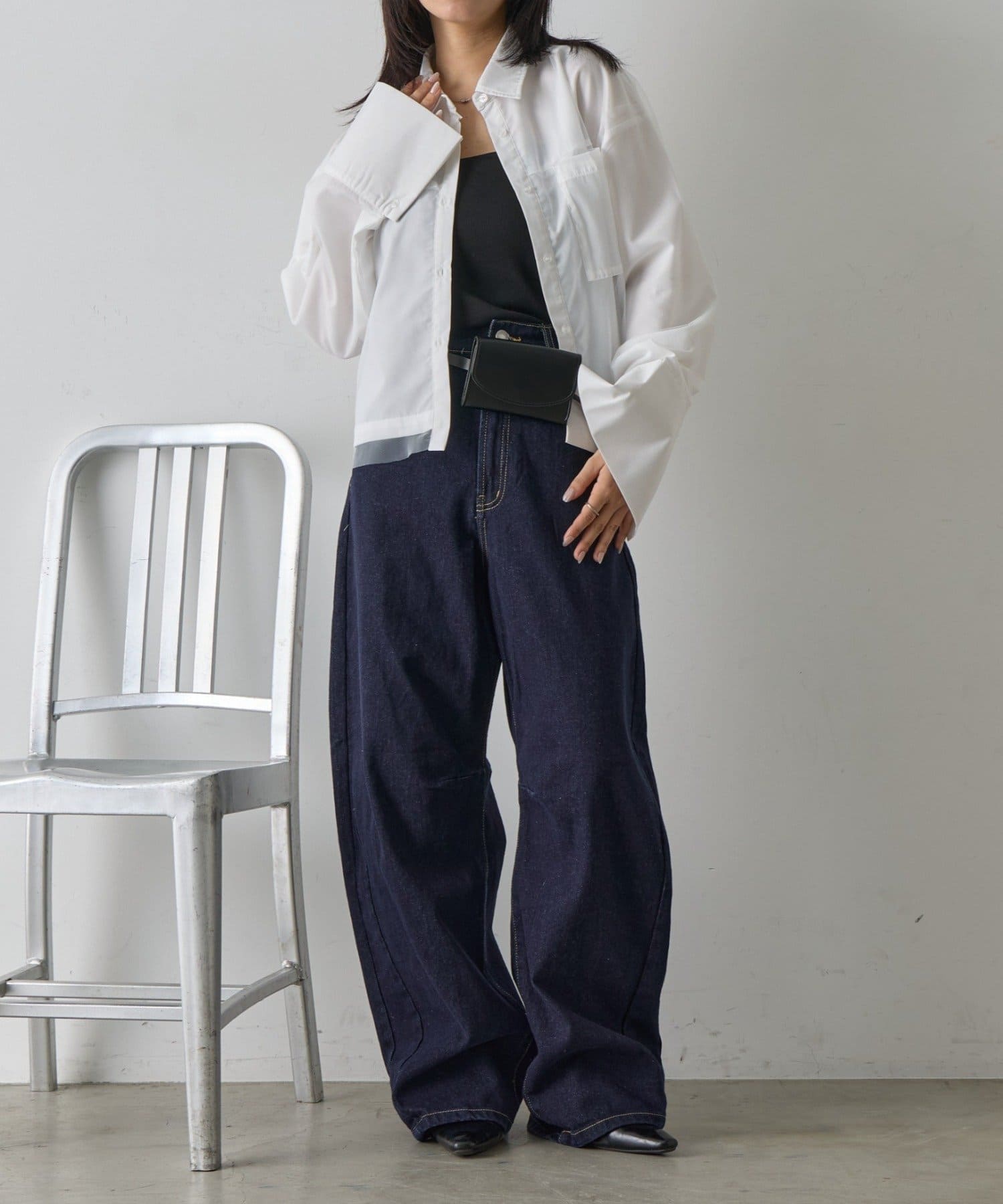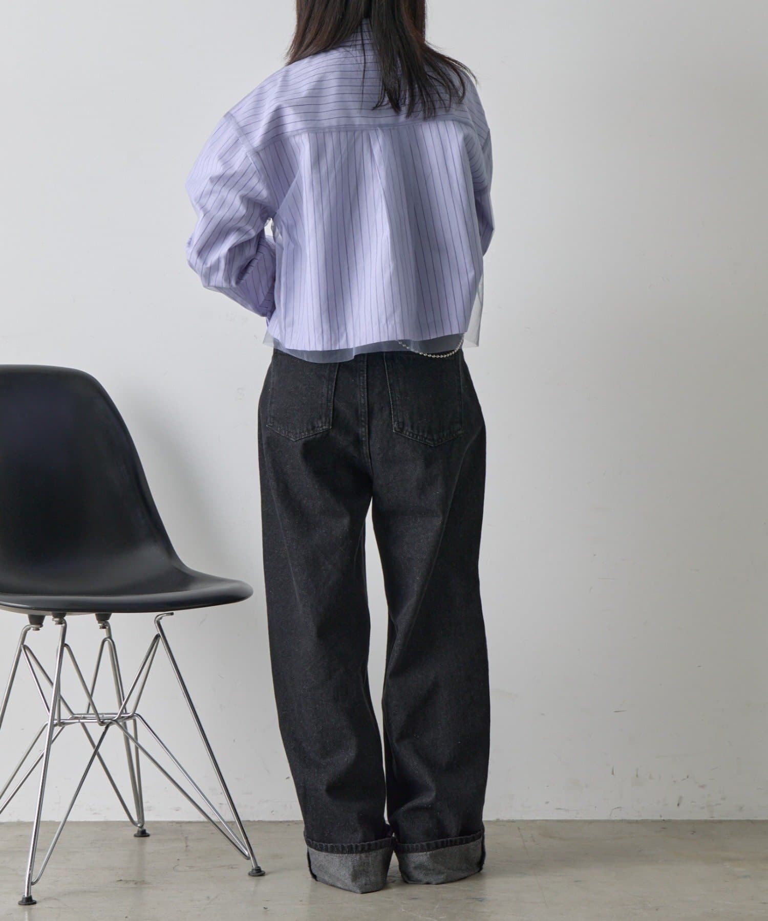 #チュール被せ #シャツ #ショート丈 #クロップド丈 #チュール被せシャツ #チュールシャツ