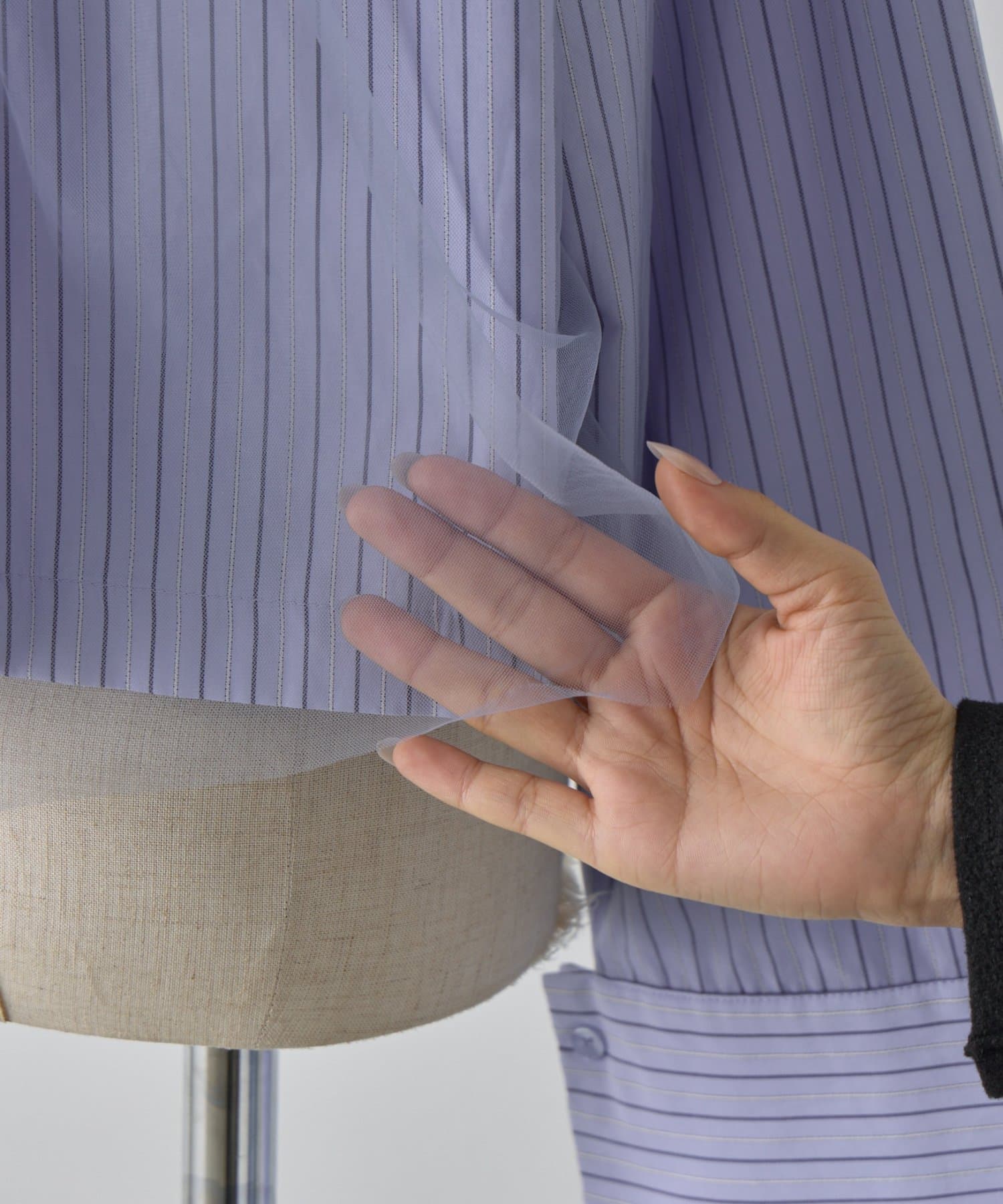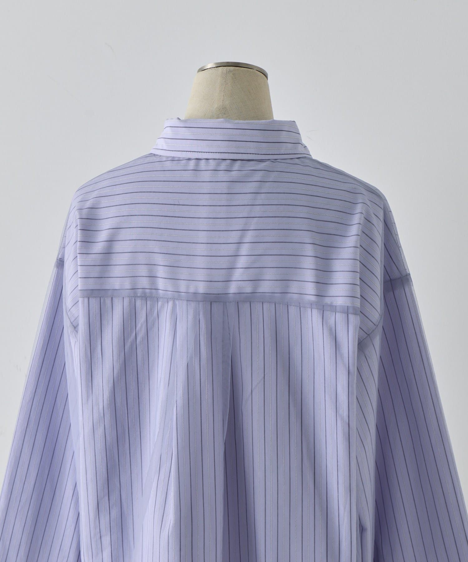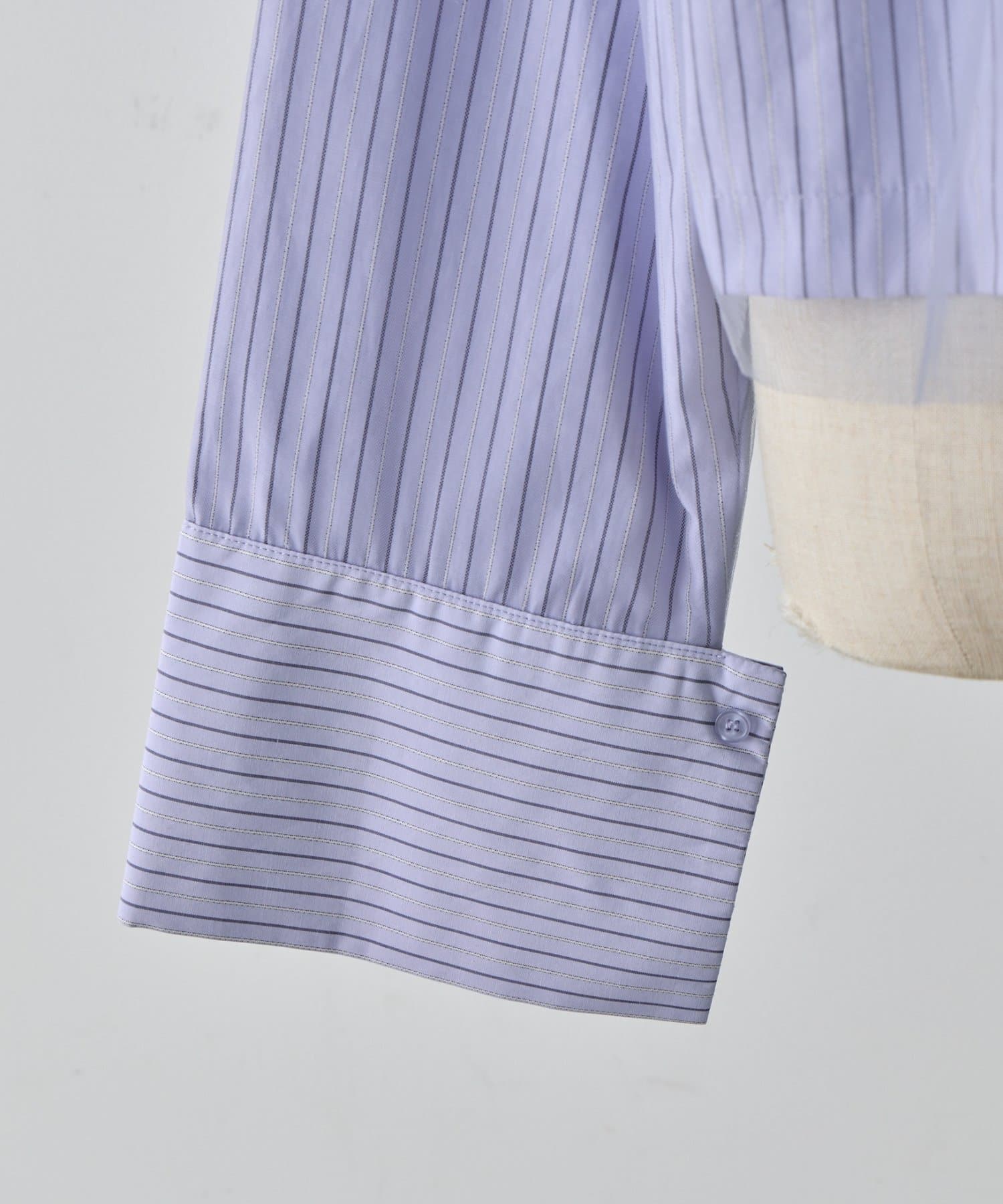 ・シャツとチュール素材をドッキングしたデザインで、1枚でレイヤード風スタイルが完成