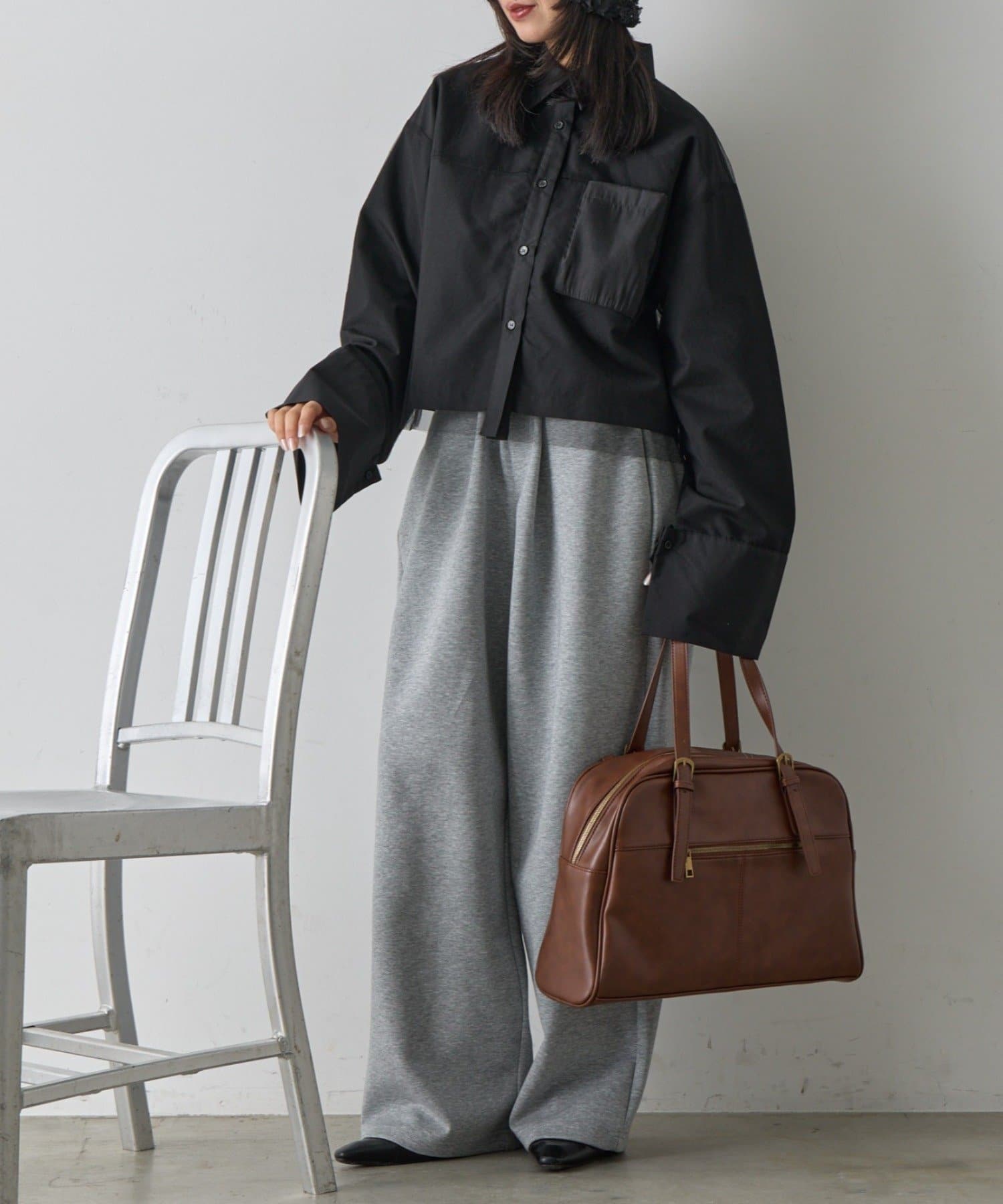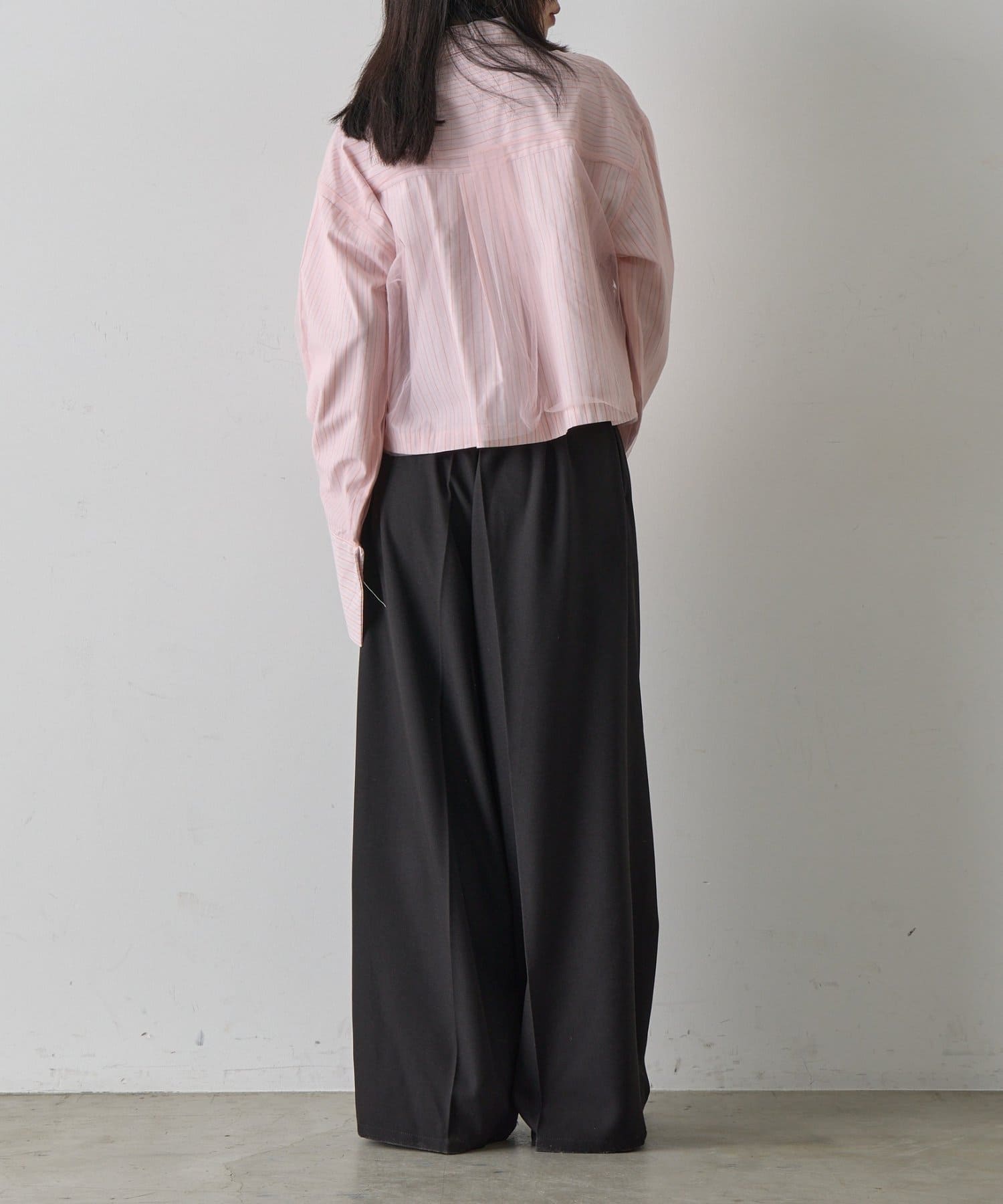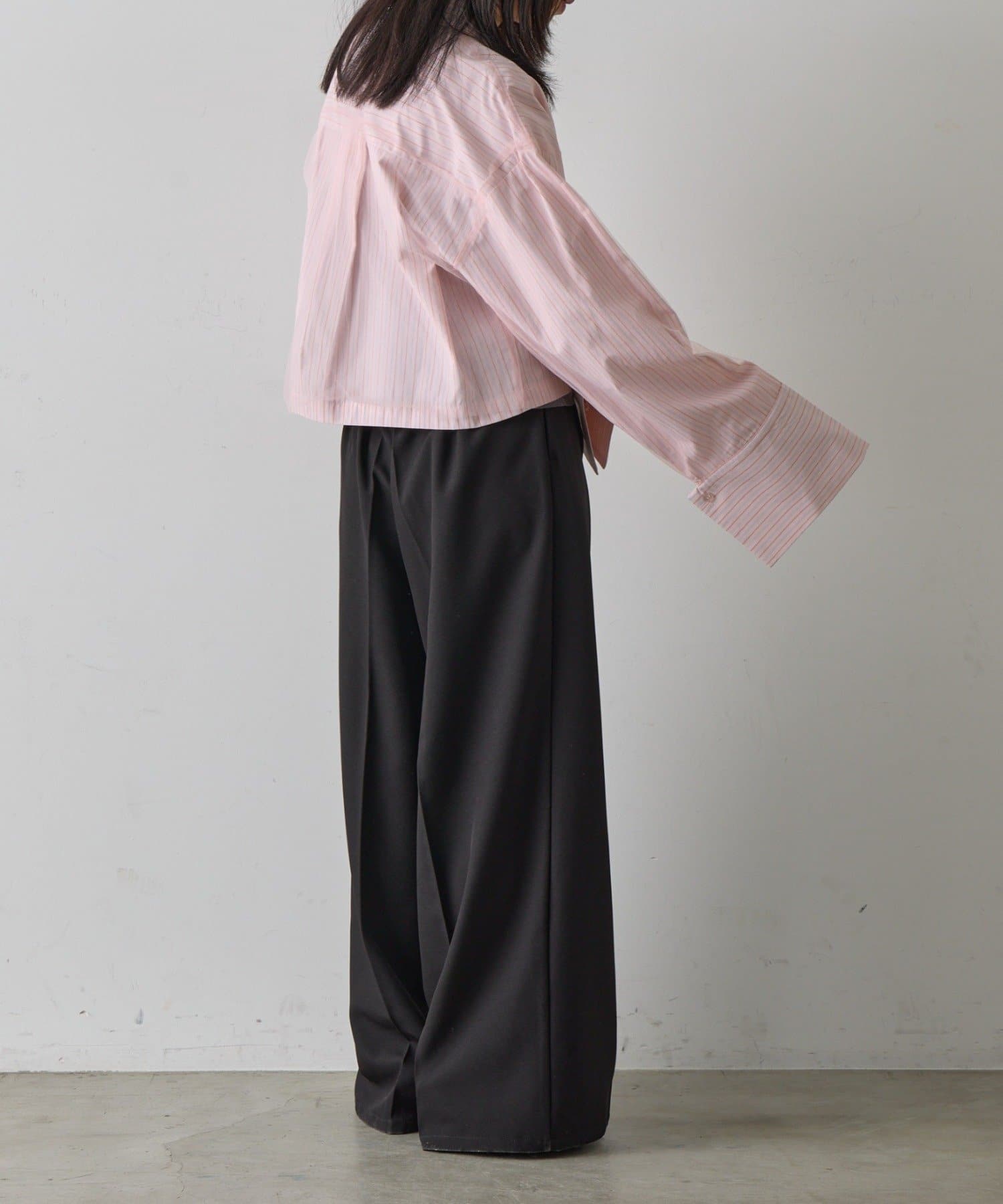 ・スラックスやテーパードパンツと合わせて、甘さ控えめな大人コーデに
