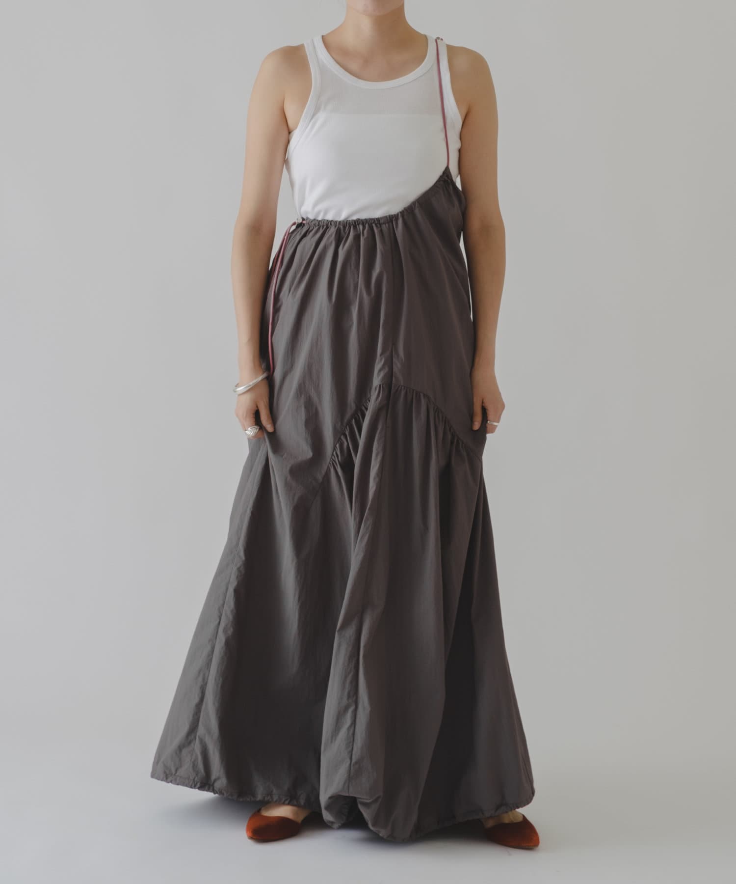 柔らかくて軽やかなナイロン生地をたっぷりと使用した、表情豊かなボリューム感のあるワンピースです。