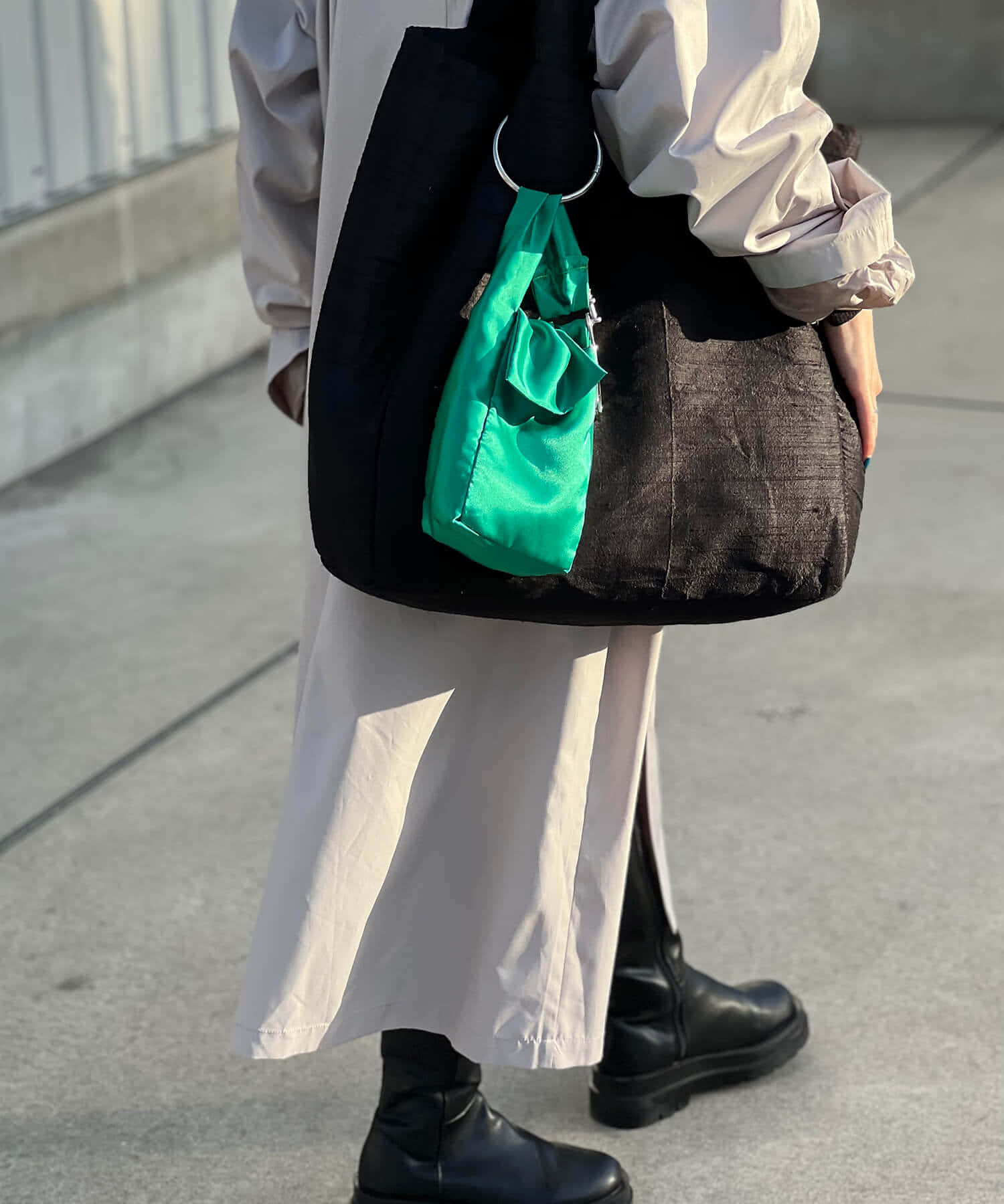 今回はそんなHOBI BAKEが展開するプロダクトの中の<HOBI GOODS>より、人気のお持たせ用のクッキー缶が入るミ二マルなサイズのサテンバッグをPasteripの限定カラーにて作成いただきました。
