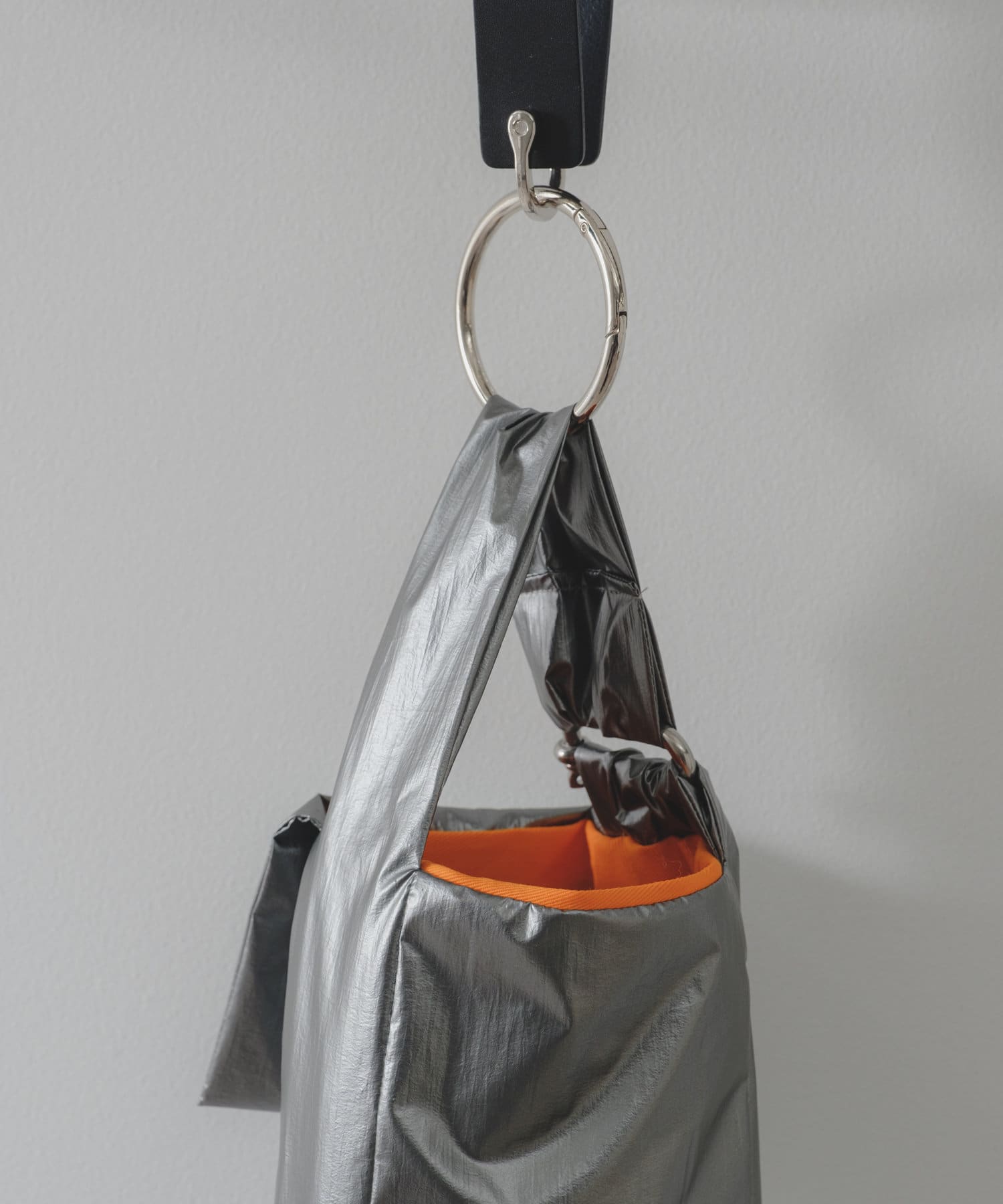 今回はそんなHOBI BAKEが展開するプロダクトの中の<HOBI GOODS>より、人気のお持たせ用のクッキー缶が入るミ二マルなサイズのバッグをPasterip限定にて光沢感のある別注生地にて作成いただきました。