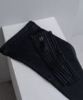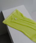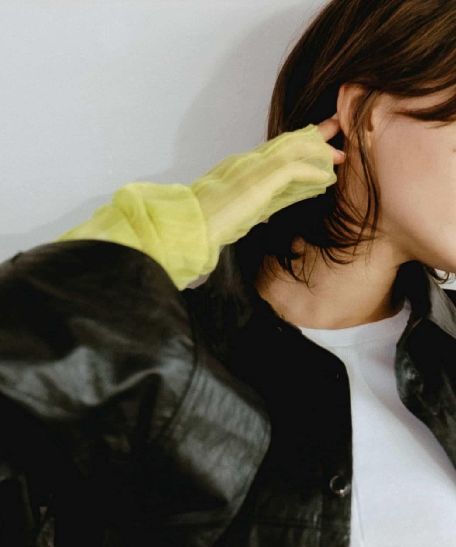 カラー展開は気分の上がるネオンカラーのイエローとアクアブルー、そして万能なブラックの3色。スタイリングに差し色やシアー感を取り入れたい時に非常に便利なアイテムです。
