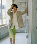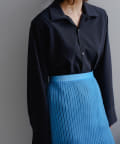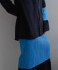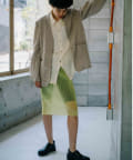 ミドルスカートはウエストをゴム仕様にしており、上げ下げして自由な位置で履いていただけます。ジャケットの下やビッグシャツの下からちらりと覗かせたり、レギンスと重ねて履いたり、腰回りを隠しながらトレンド感を加えられる万能なレイヤードスカートです。