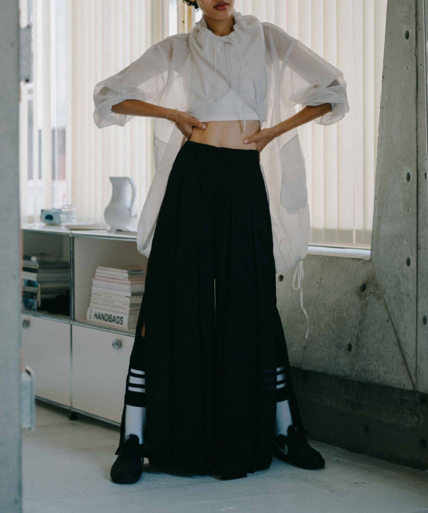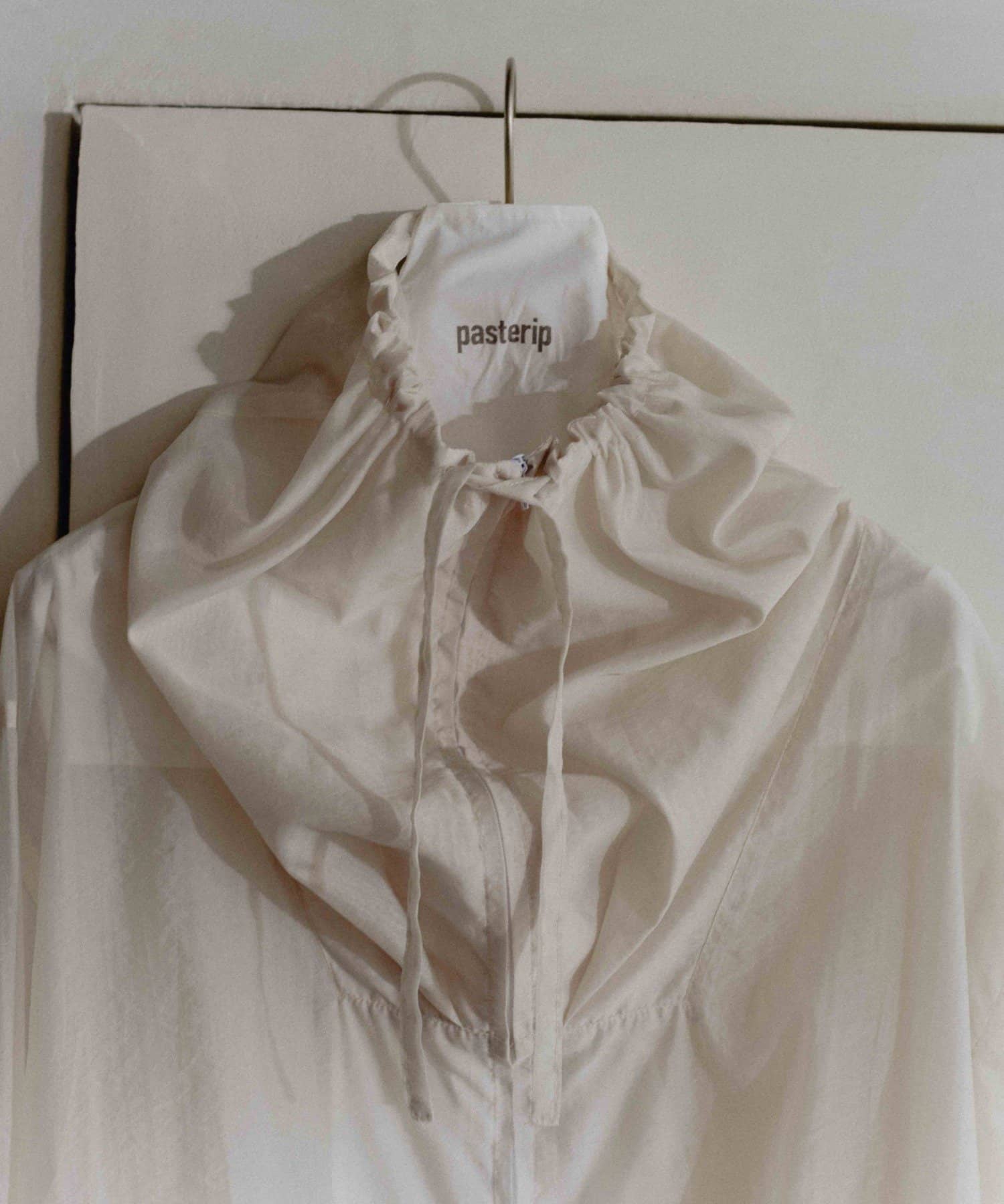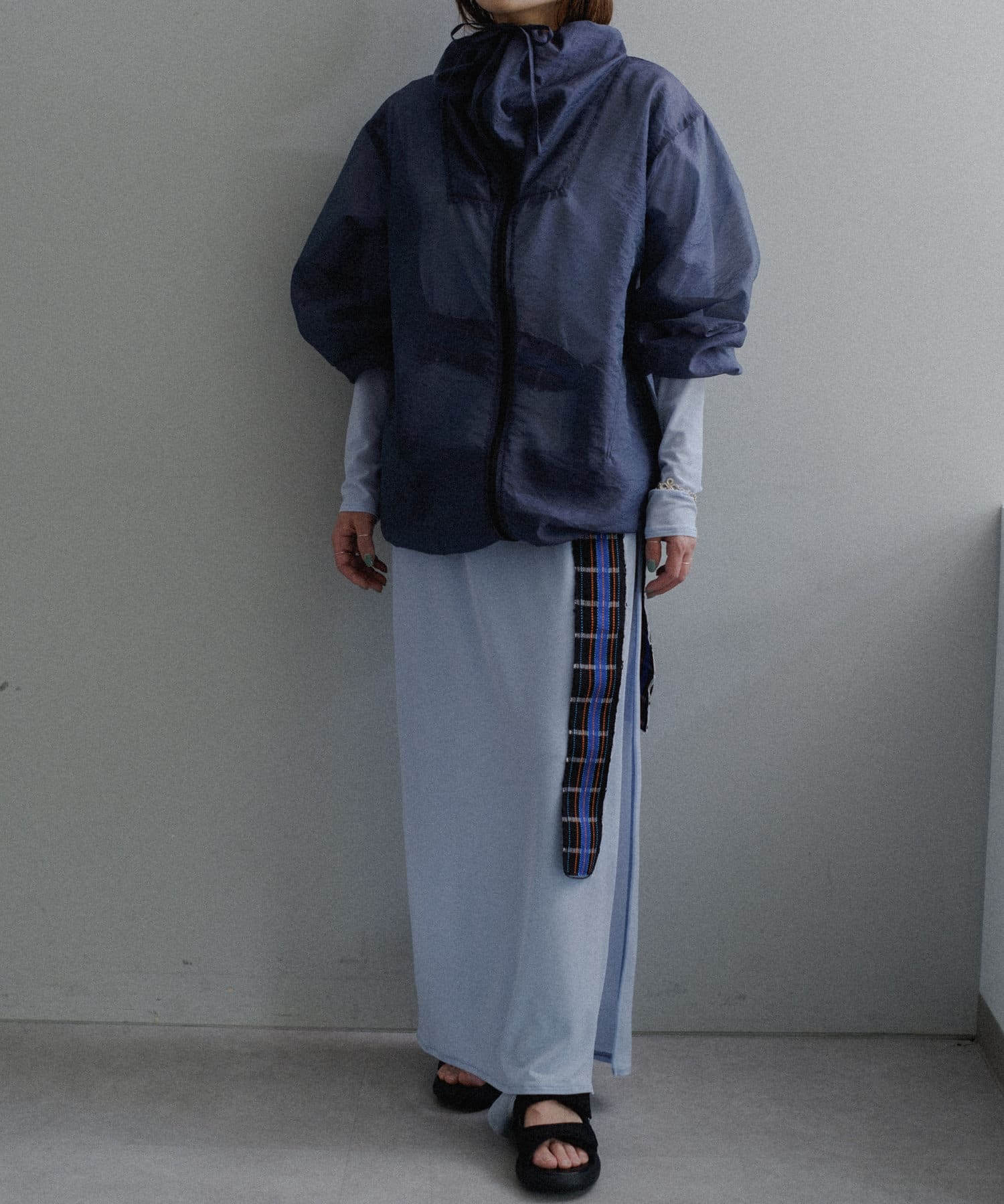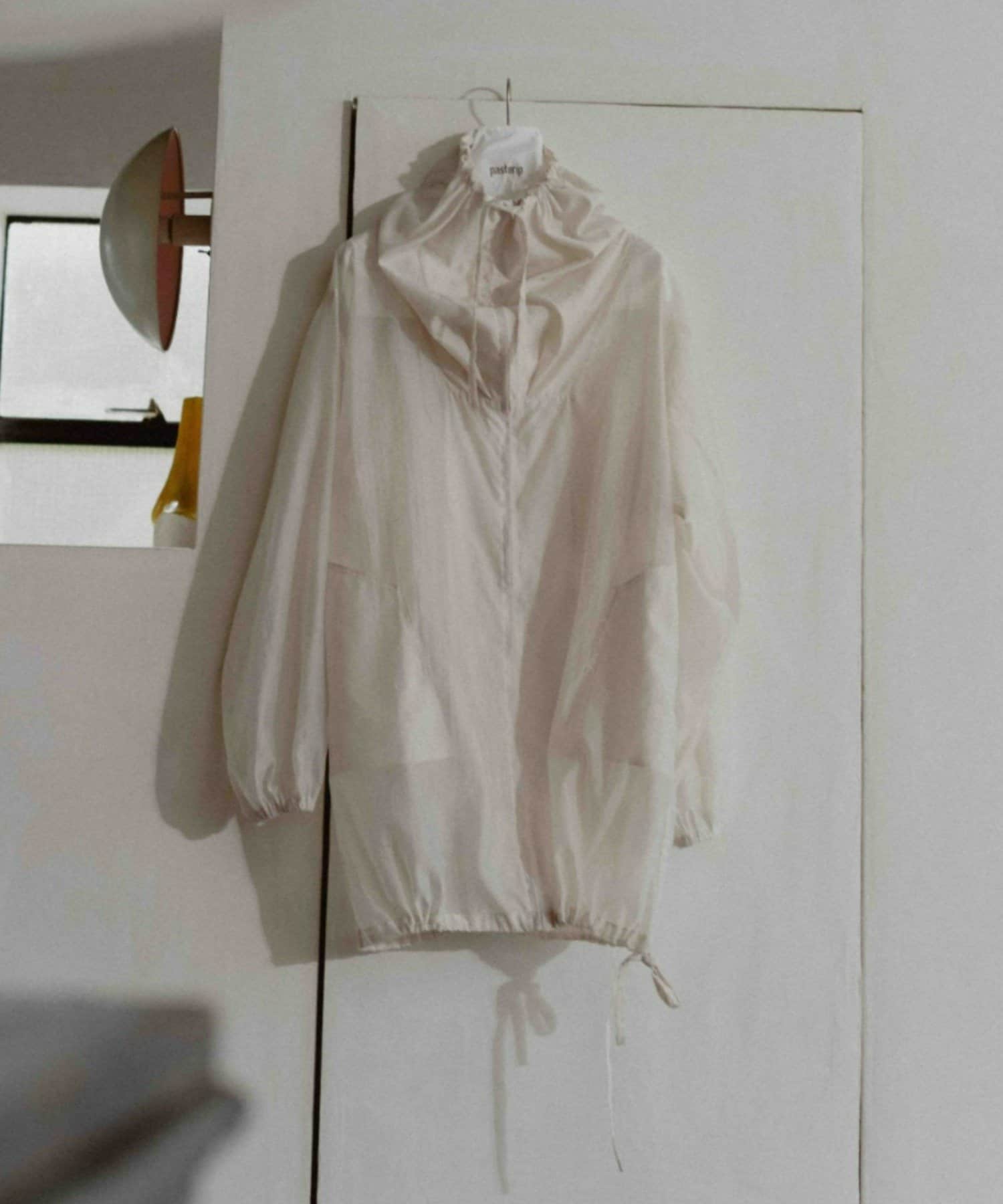 透け感とハリ感が気分を上げる、日本のオーガンジー生地を使用して作成したハイネックパーカー。春はマニッシュなジャケットの中にレイヤードしたり、夏はスリーブレスのアイテムに羽織れる、軽くて涼しげなサマーシャツパーカーとしても活躍します。