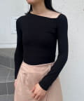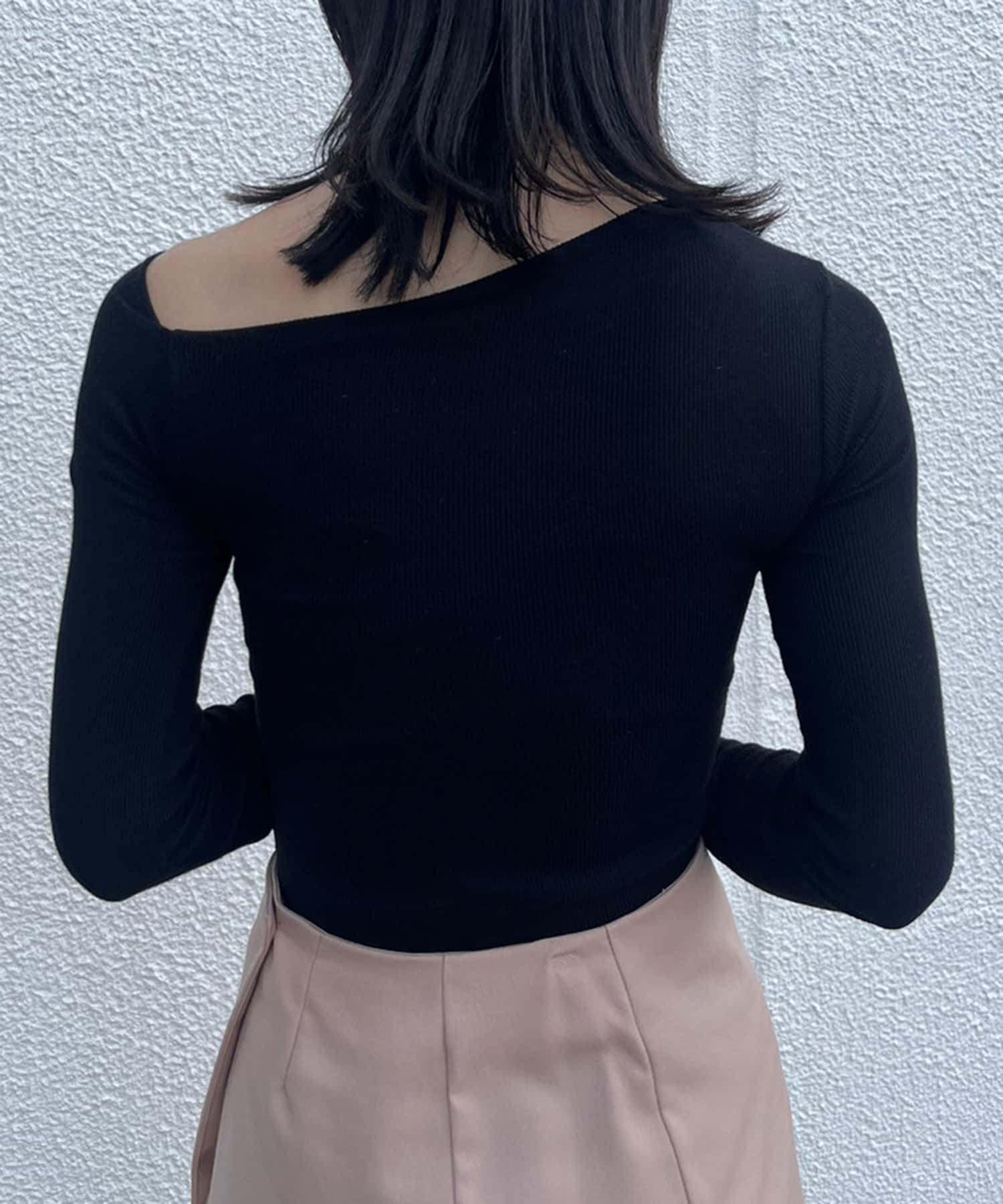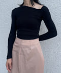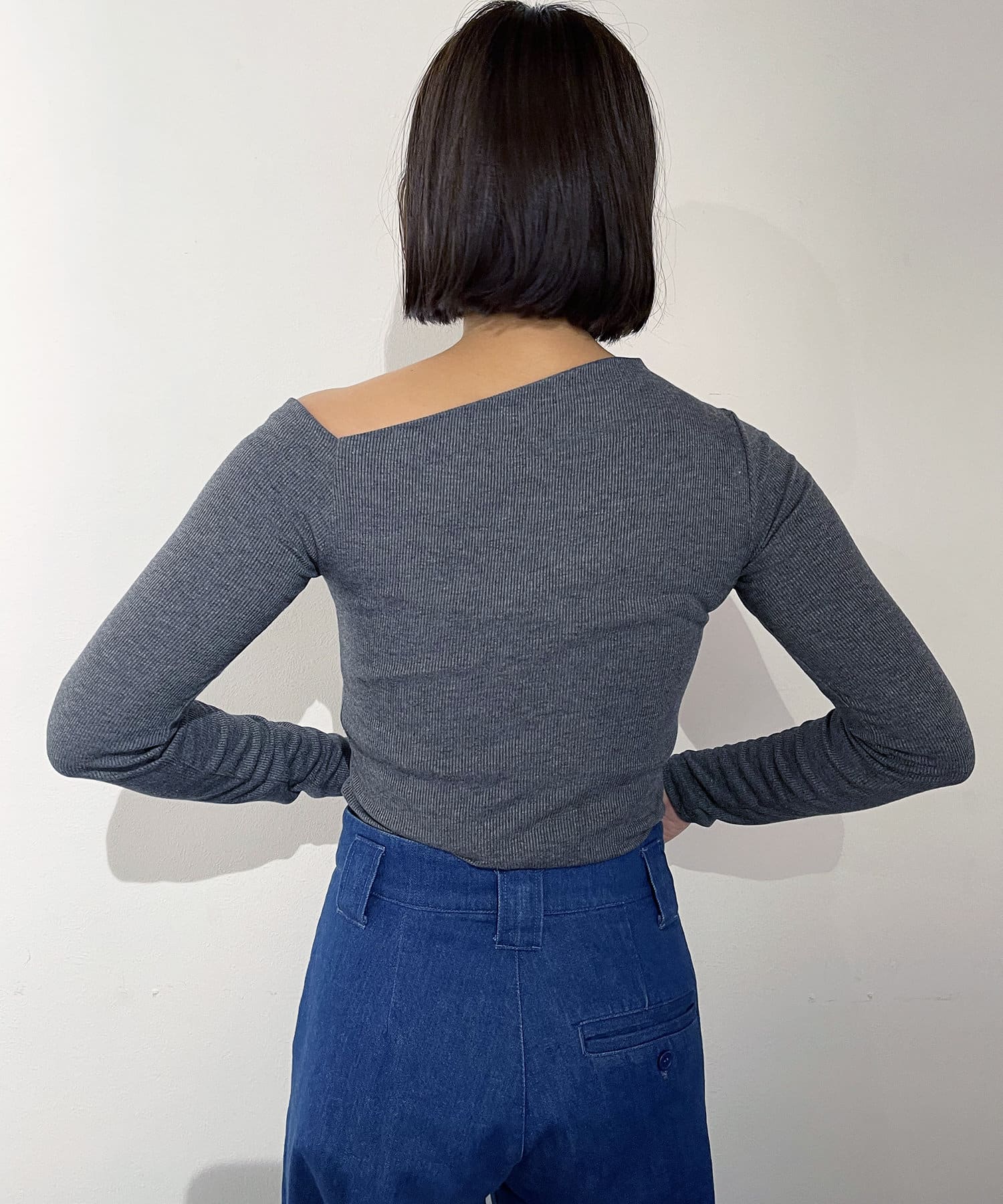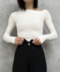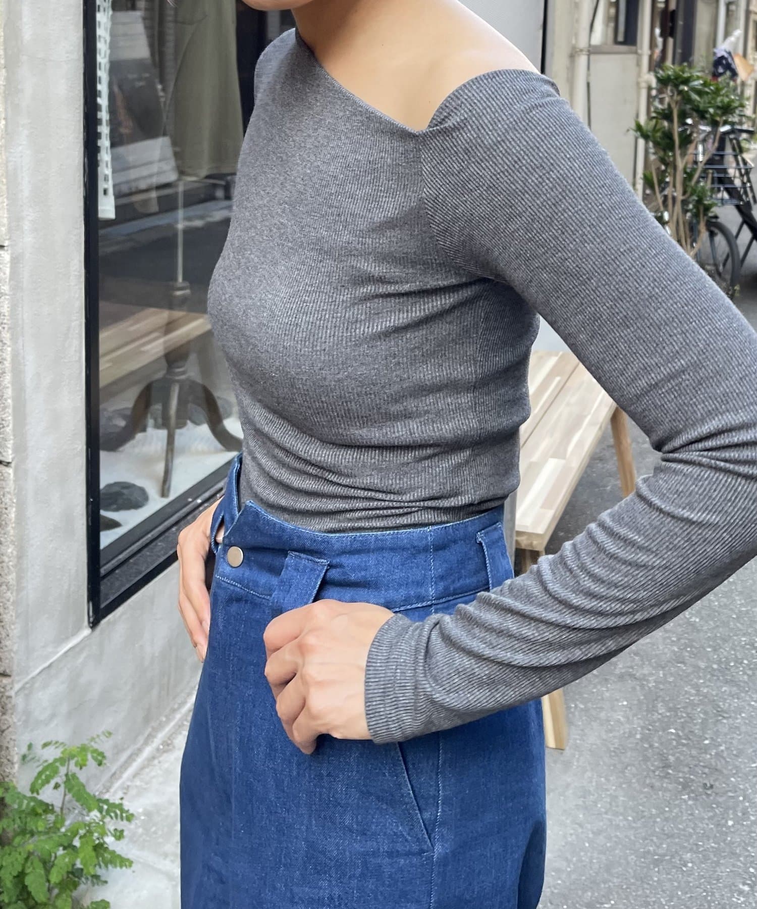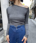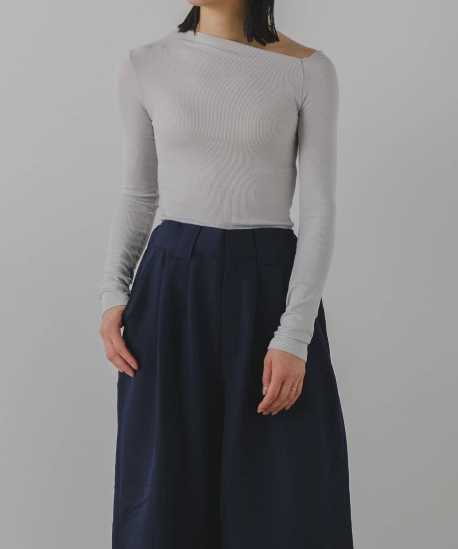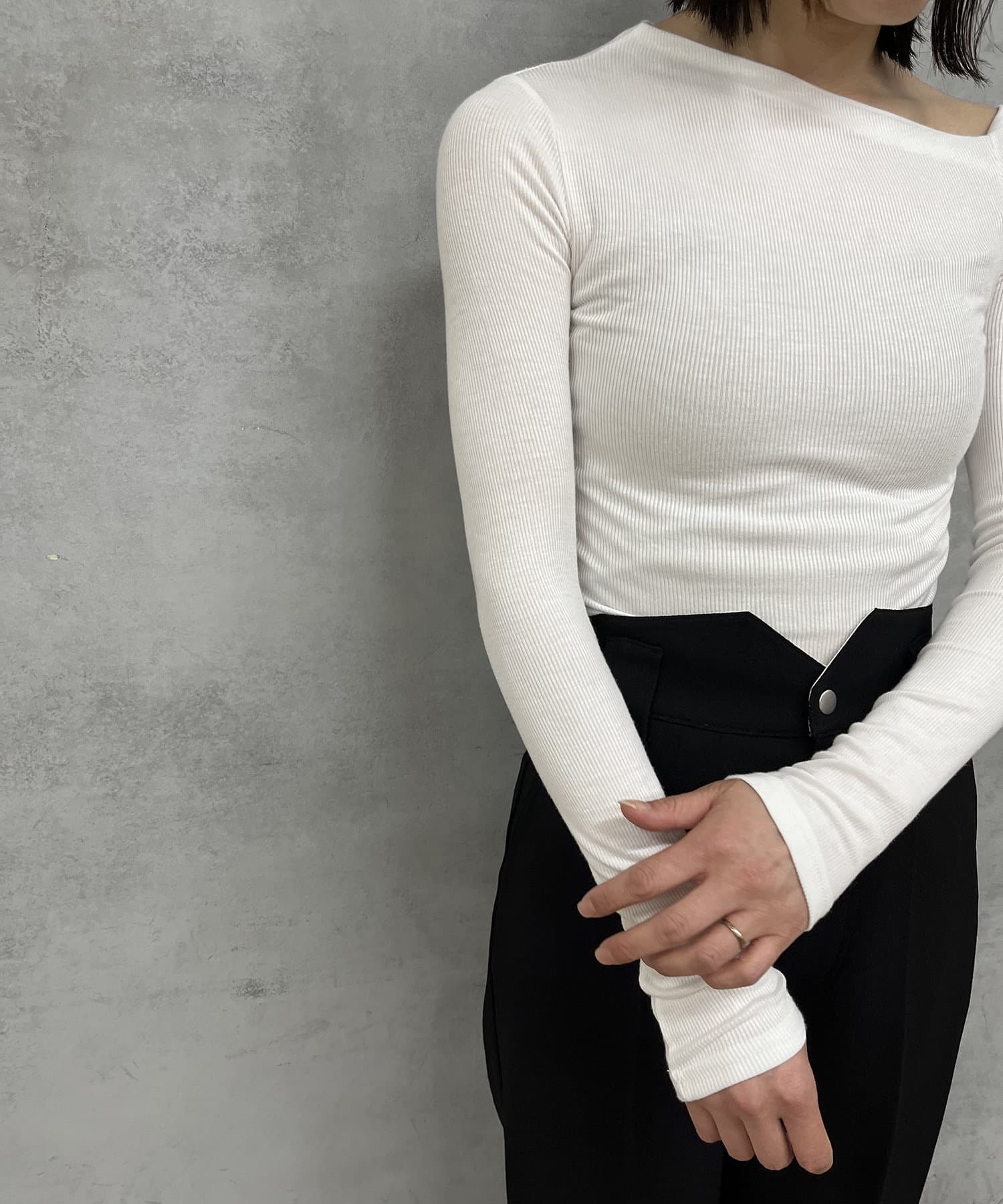 ボディラインを美しく見せてくれる、程よいフィット感のあるワンショルダー型のリブTシャツ。