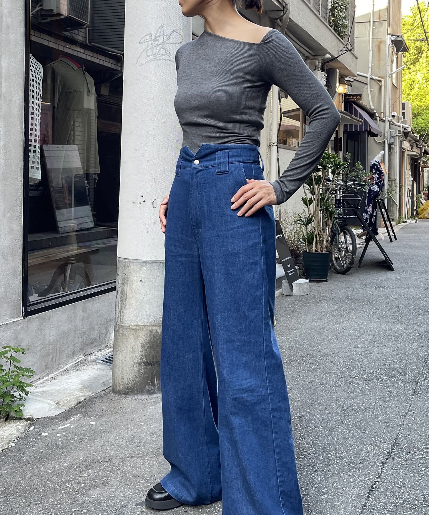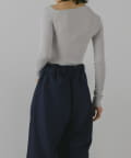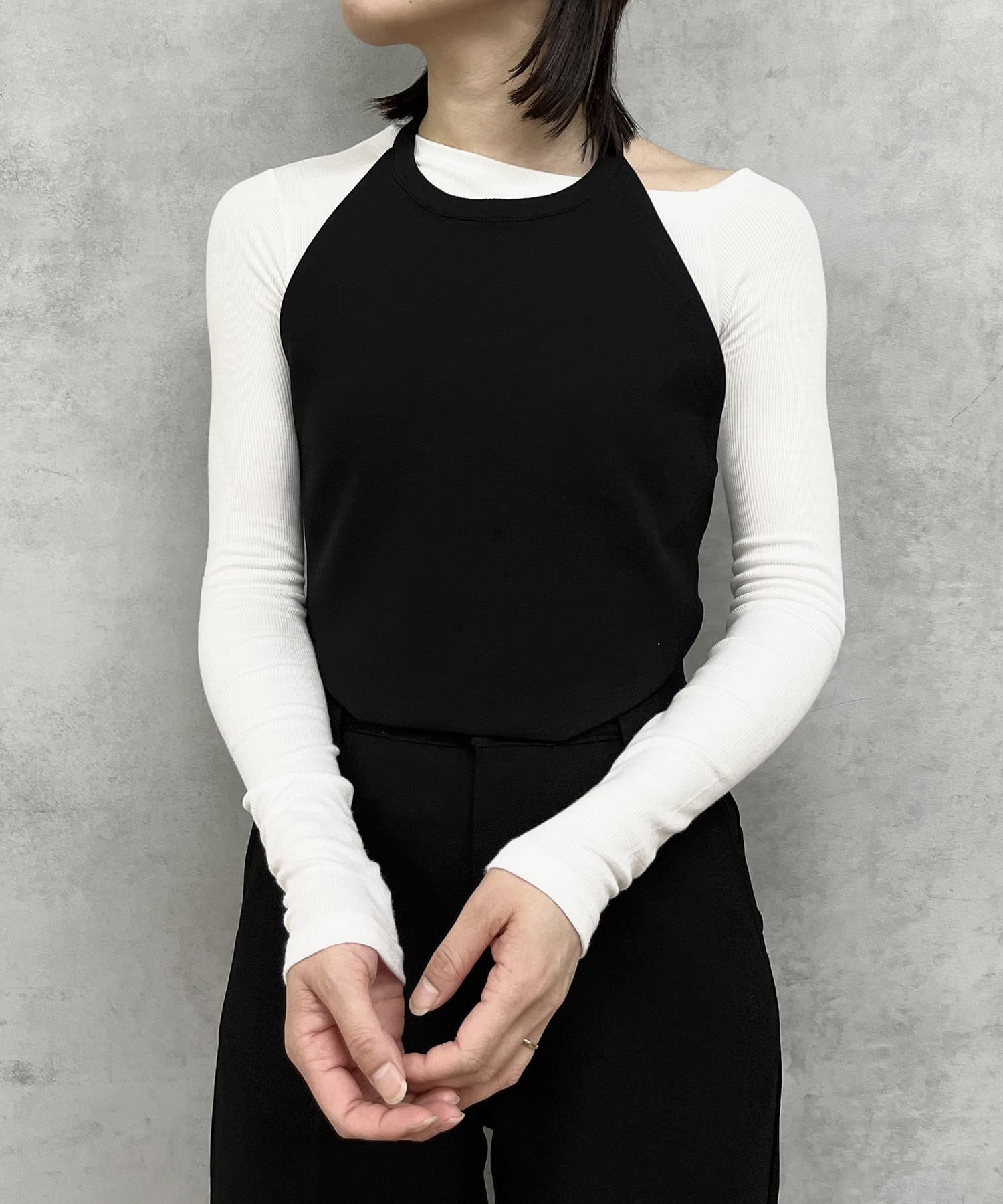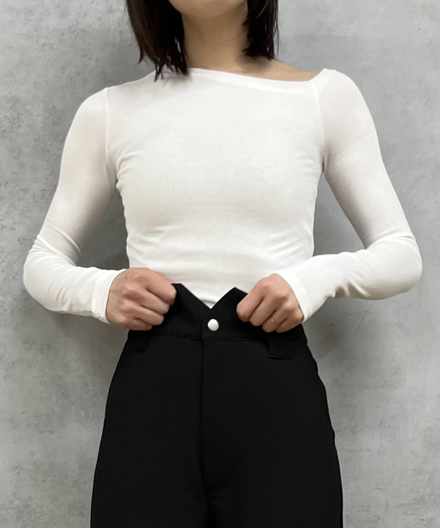 スタイリングは、ジャケットや羽織物のインナー着用がお勧め。定番インナーもアシンメトリーなネックラインになるだけで、さりげなくスタイリングに差が付けられます。