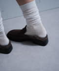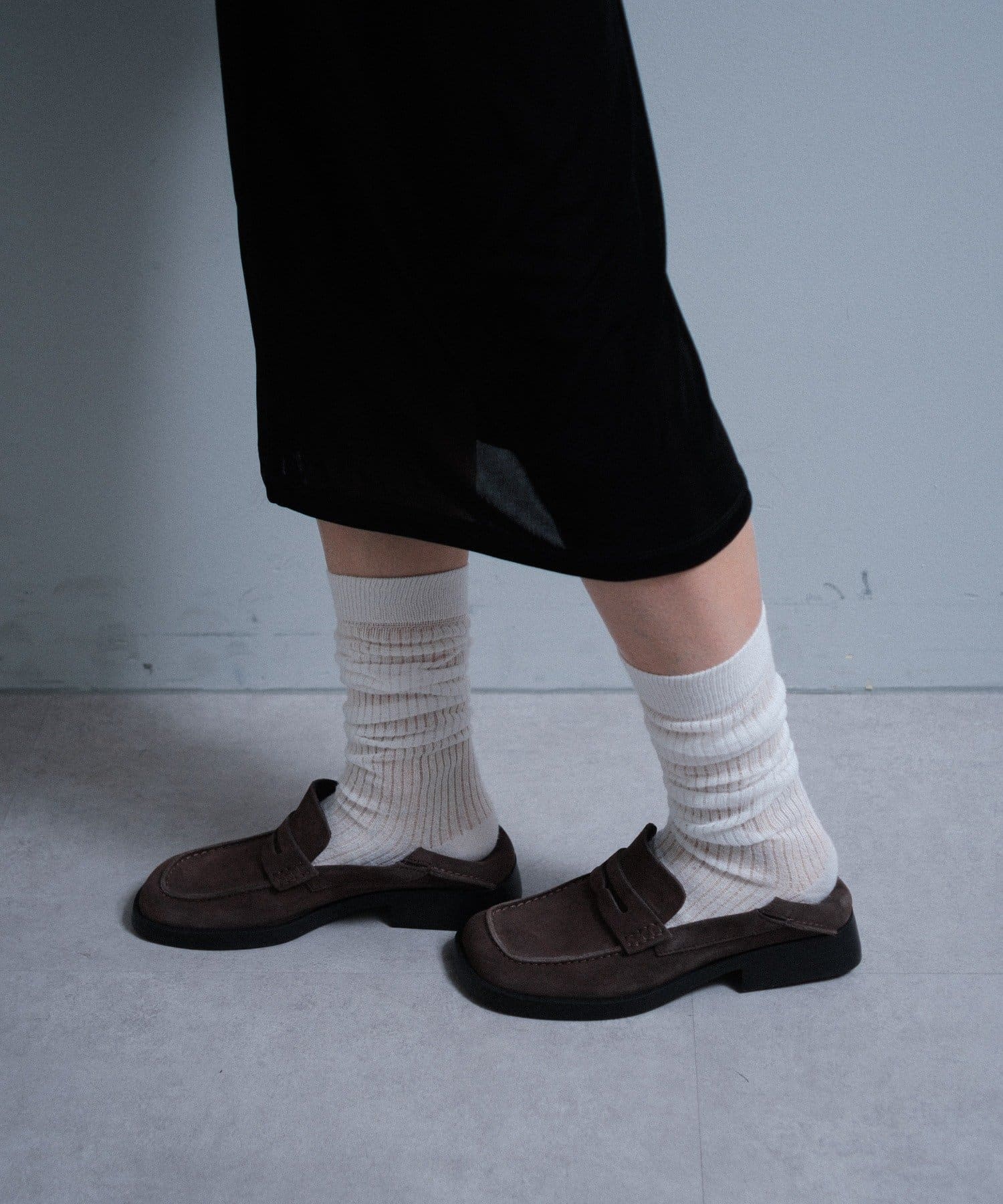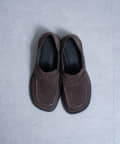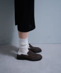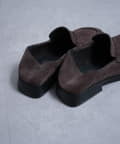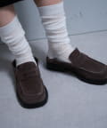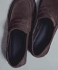 万能なナチュラルトーンの柔らかいスェードレザーを使用したローファーは、リラックスした雰囲気のルックスに夏の快適さを併せ持ち、シューズとしても踵を踏んでスリッポンとしても履ける万能な一足に仕上がっています。