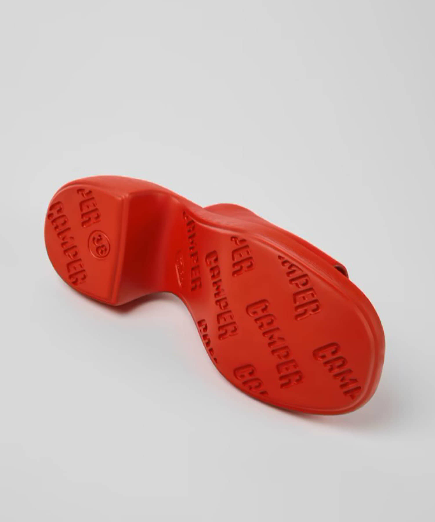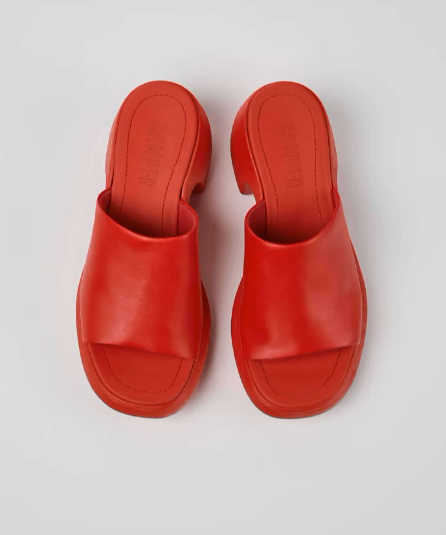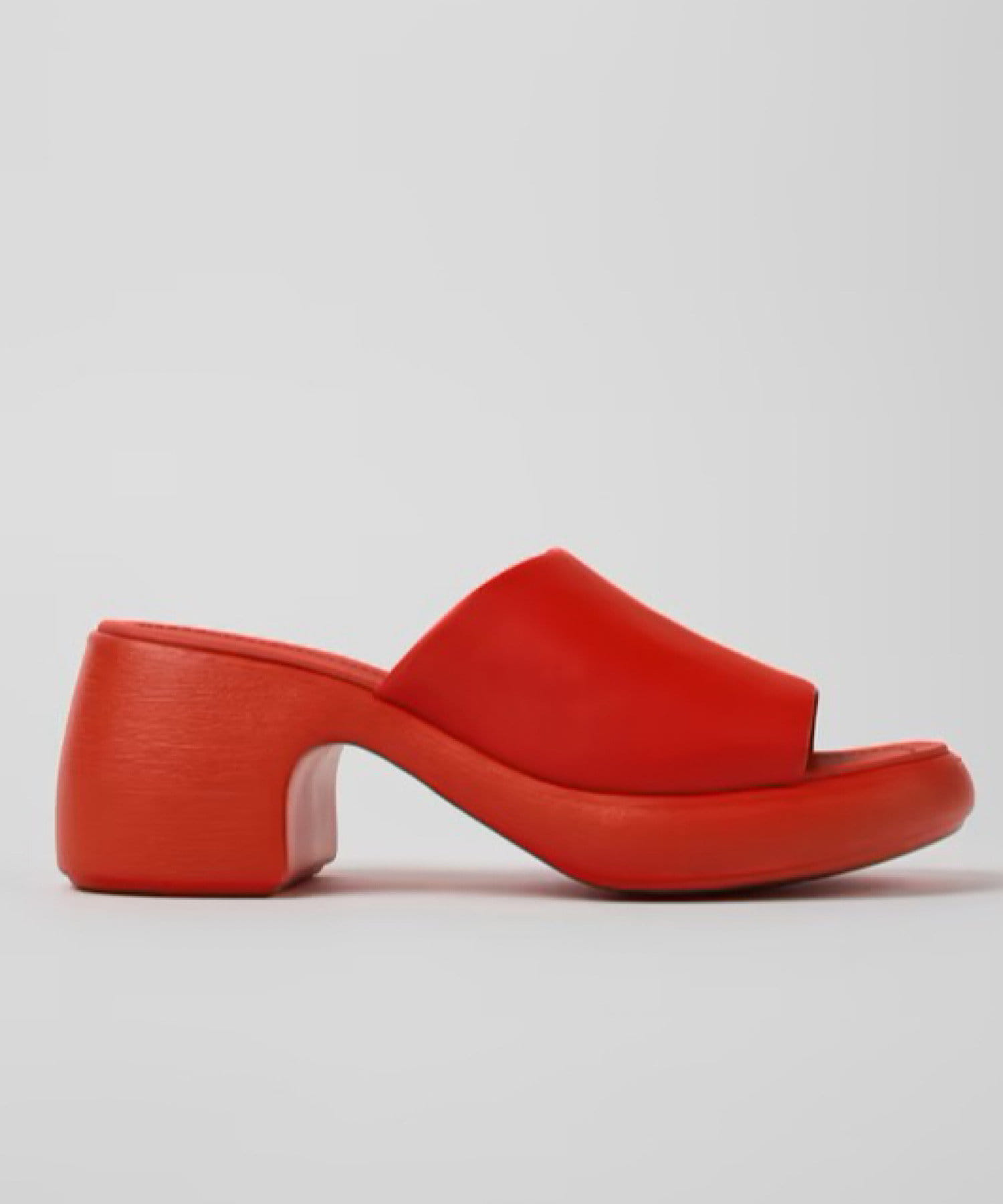 履きやすいプラットフォームのスライドデザインは足長効果があり、カンペールの50周年アニバーサリー記念に連動したシグネチャーレッドが鮮やかに足元を演出します。