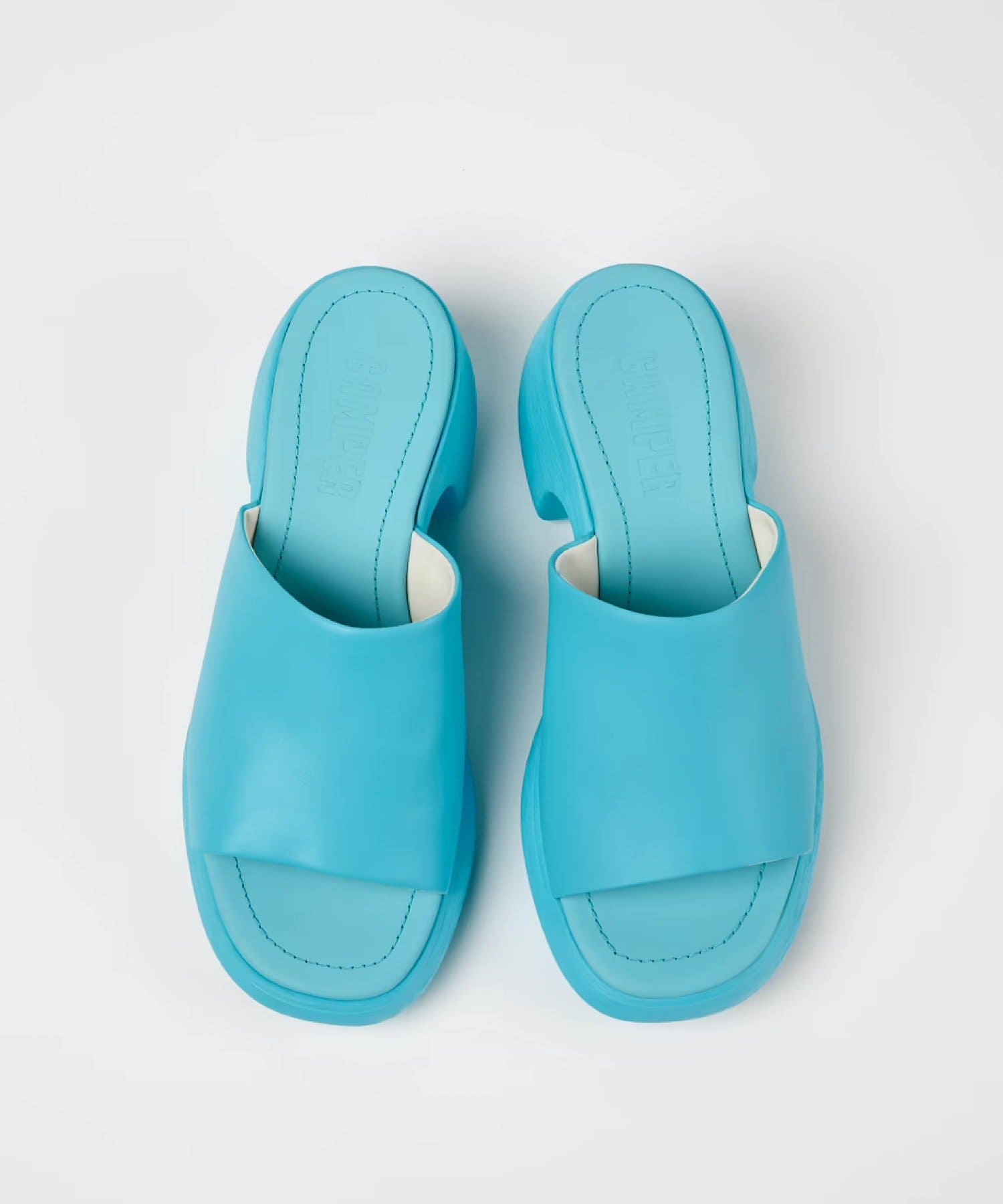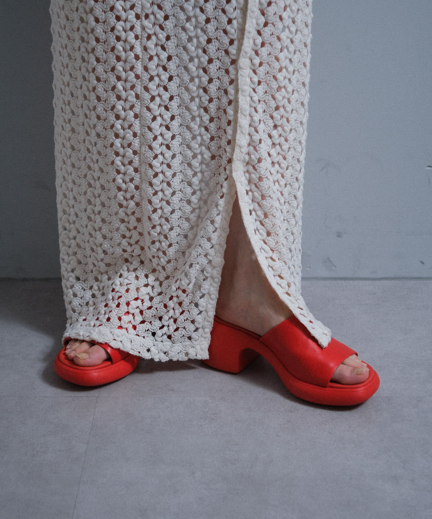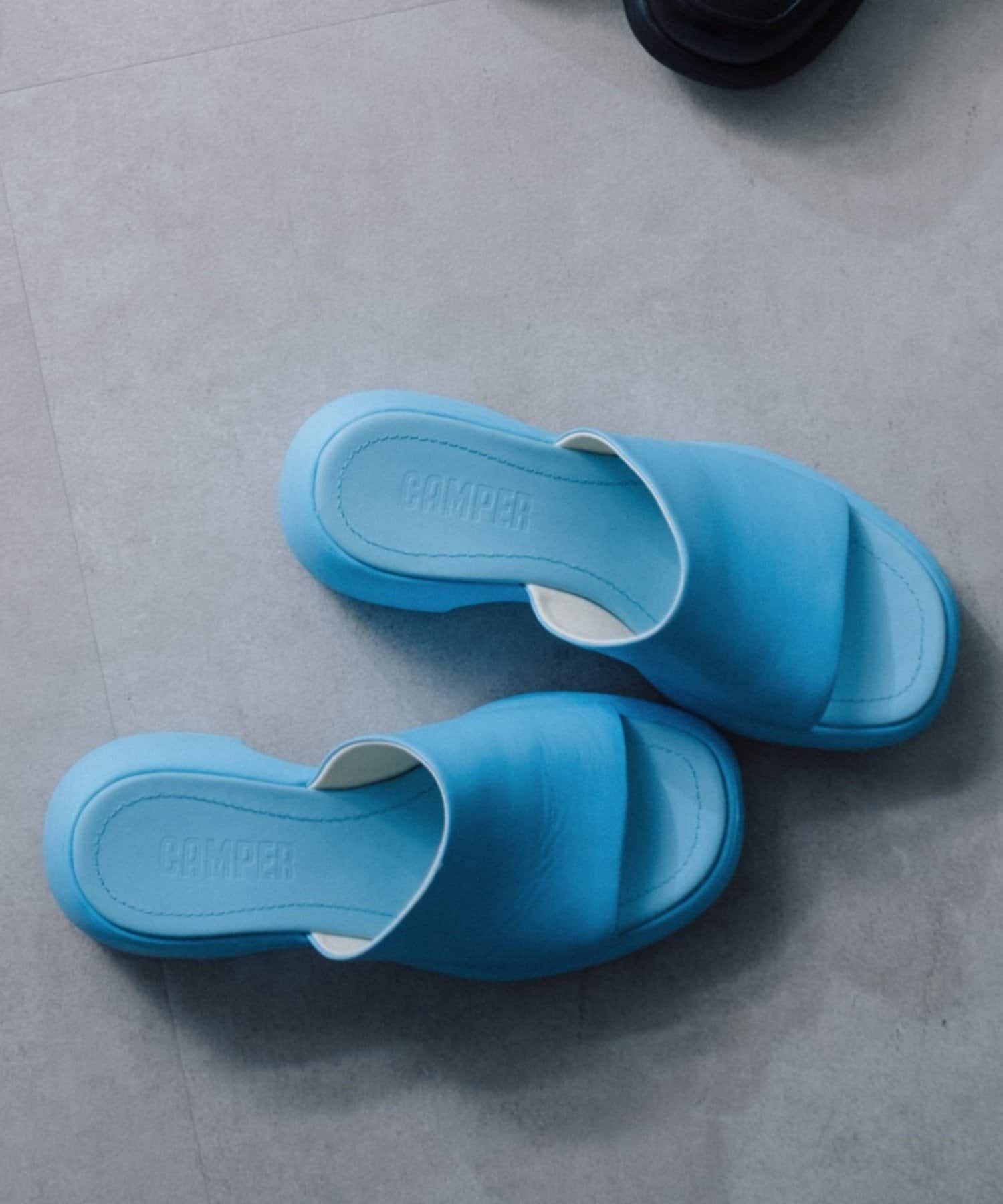 履きやすいプラットフォームのスライドデザインは足長効果があり、カンペールの50周年アニバーサリー記念に連動したシグネチャーレッドが鮮やかに足元を演出します。