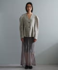 首元はノーカラーで深めのVあきデザイン。首が長く綺麗にすっきりと見せられます。ウエストにはタックを入れており、今年気分なペプラムシルエットに。視覚効果で脚が真っ直ぐに見えることと、肩のボリュームとのギャップでウエストが細く見えます。上半身のスタイルアップが叶う、嬉しい一着。肩幅が広い方にこそ試していただきたいデザインです。