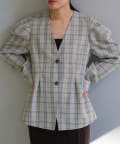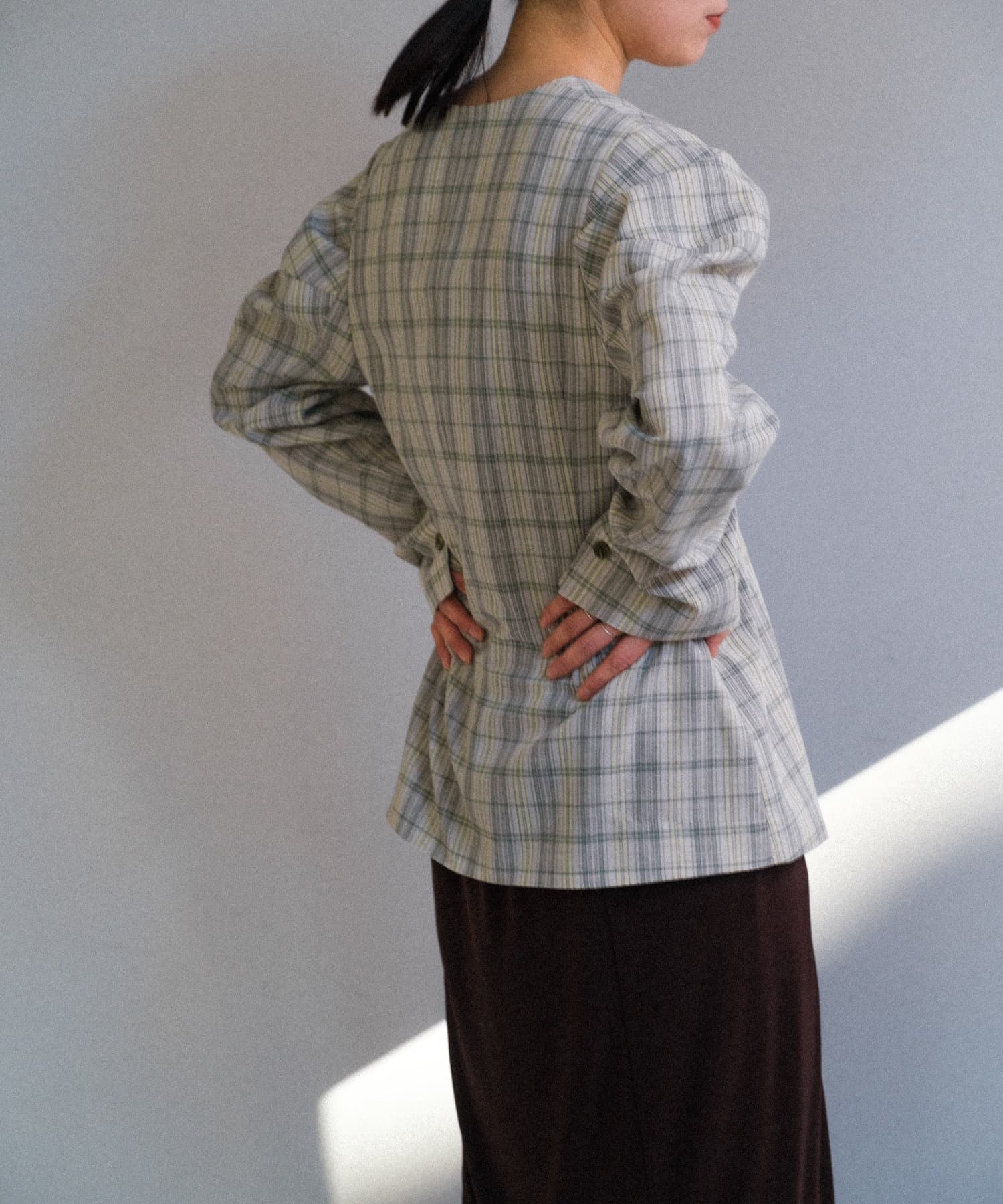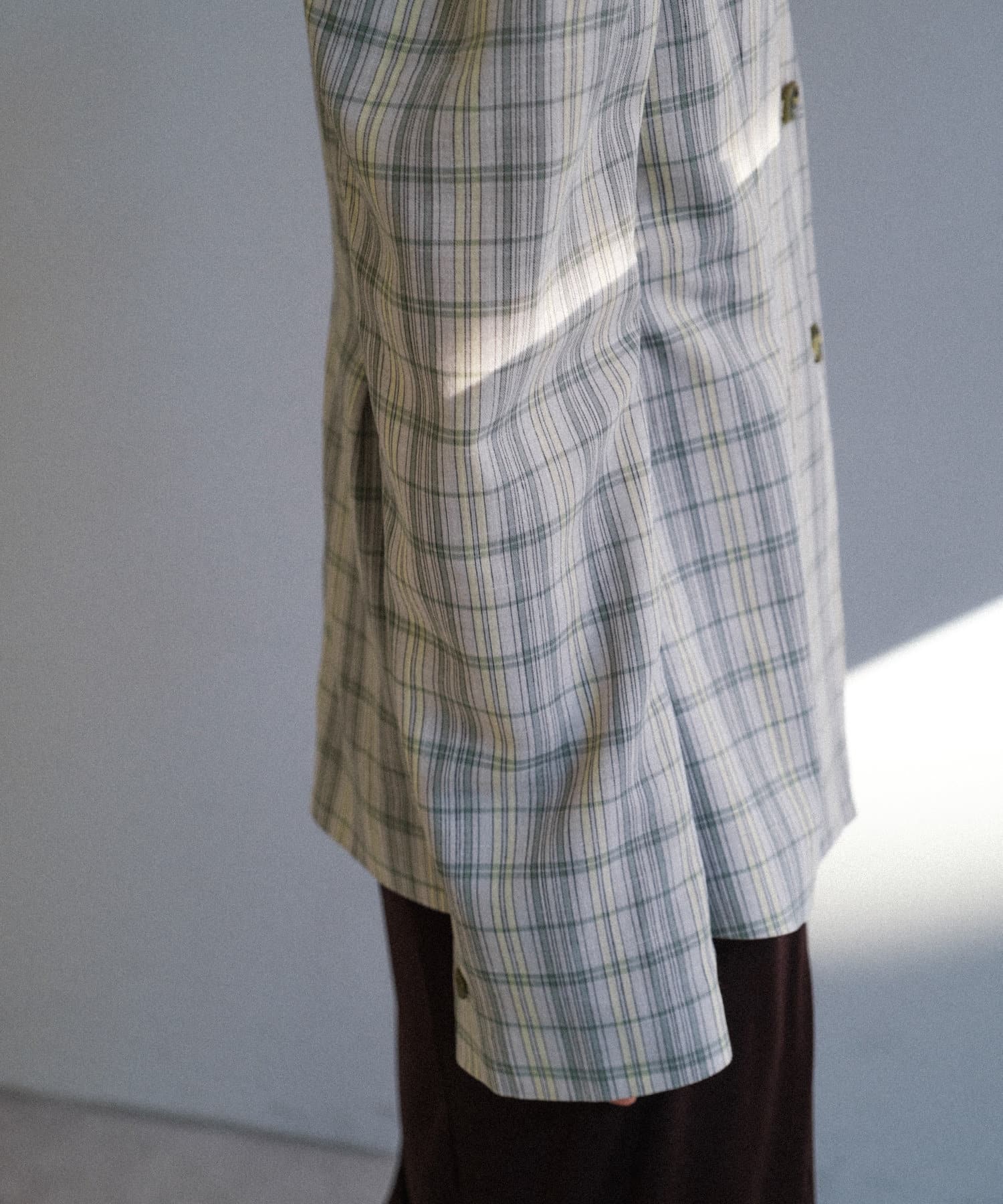 一目で春らしい淡いグレーベースにイエローのチェックジャガード織のシャツ生地に、ライトな裏地をつけてジャケットに仕立てています。