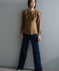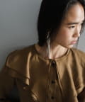 カラーはブロンズとアイボリーの2色展開。デニムなどのカジュアルなボトムスとの相性はもちろん、ジャンプスーツの中に仕込んだり、オケージョンシーンにも活躍しそう。一見ありそうでなかなか出会えない、個人的にとってもお気に入りなアイテムです。